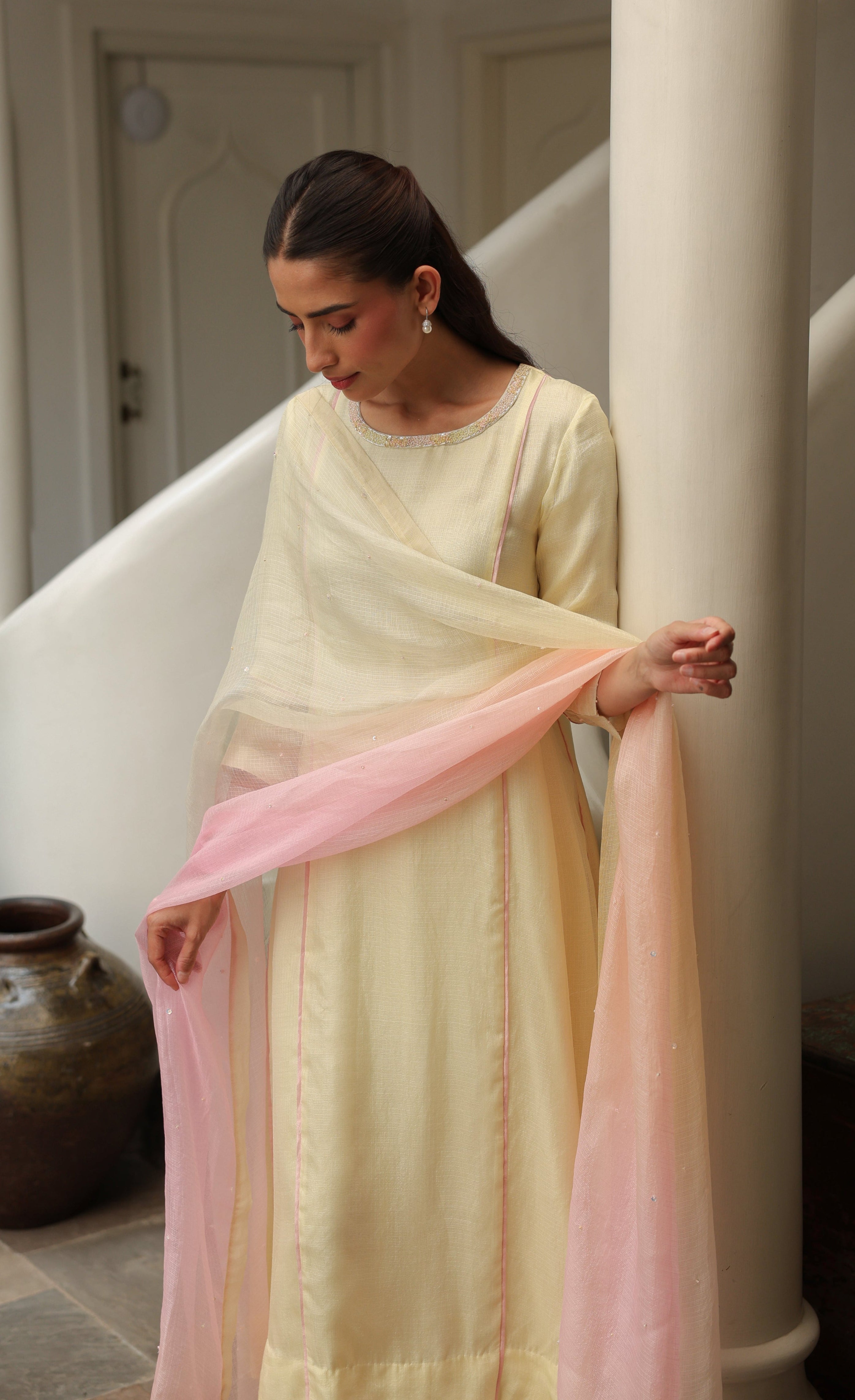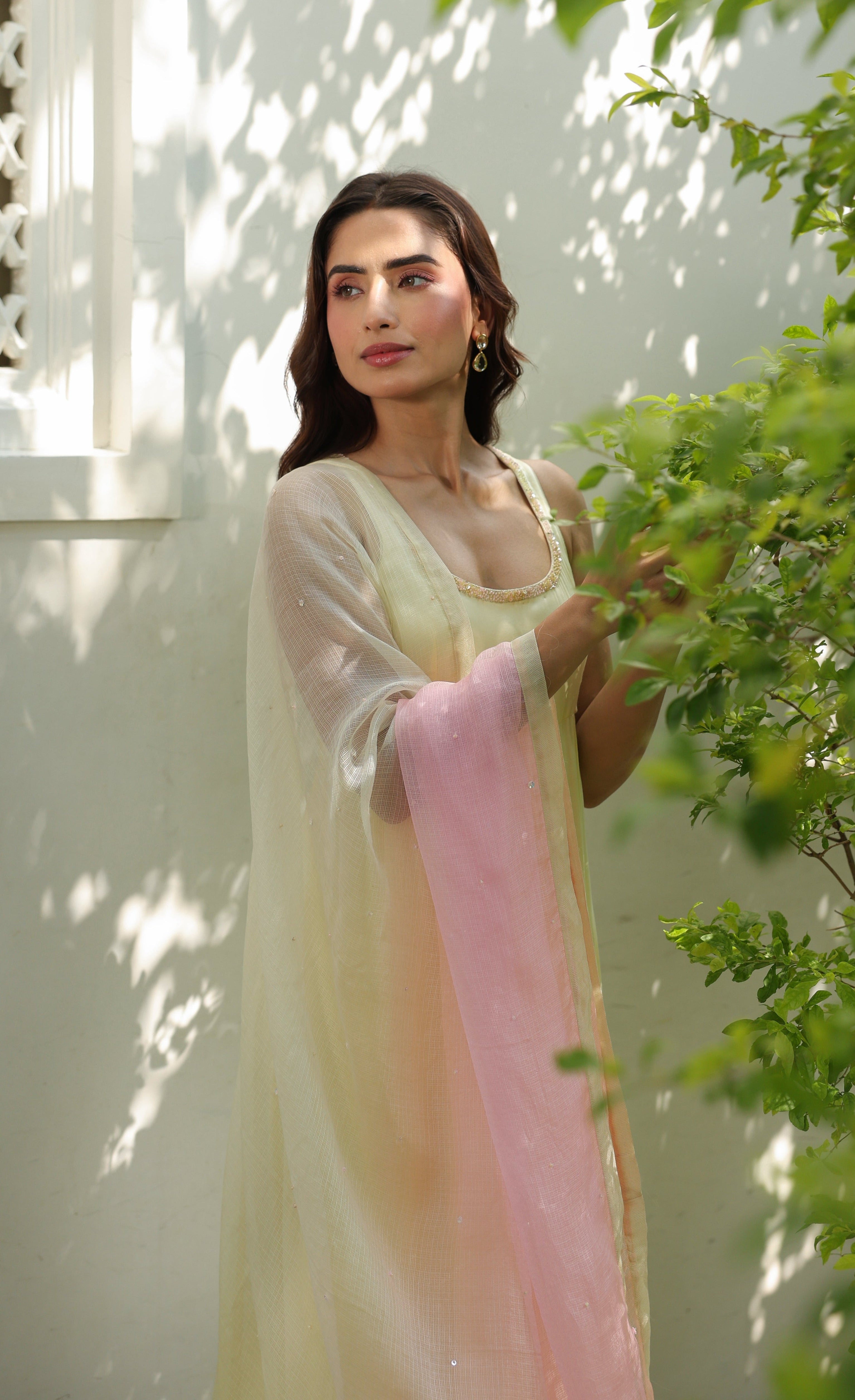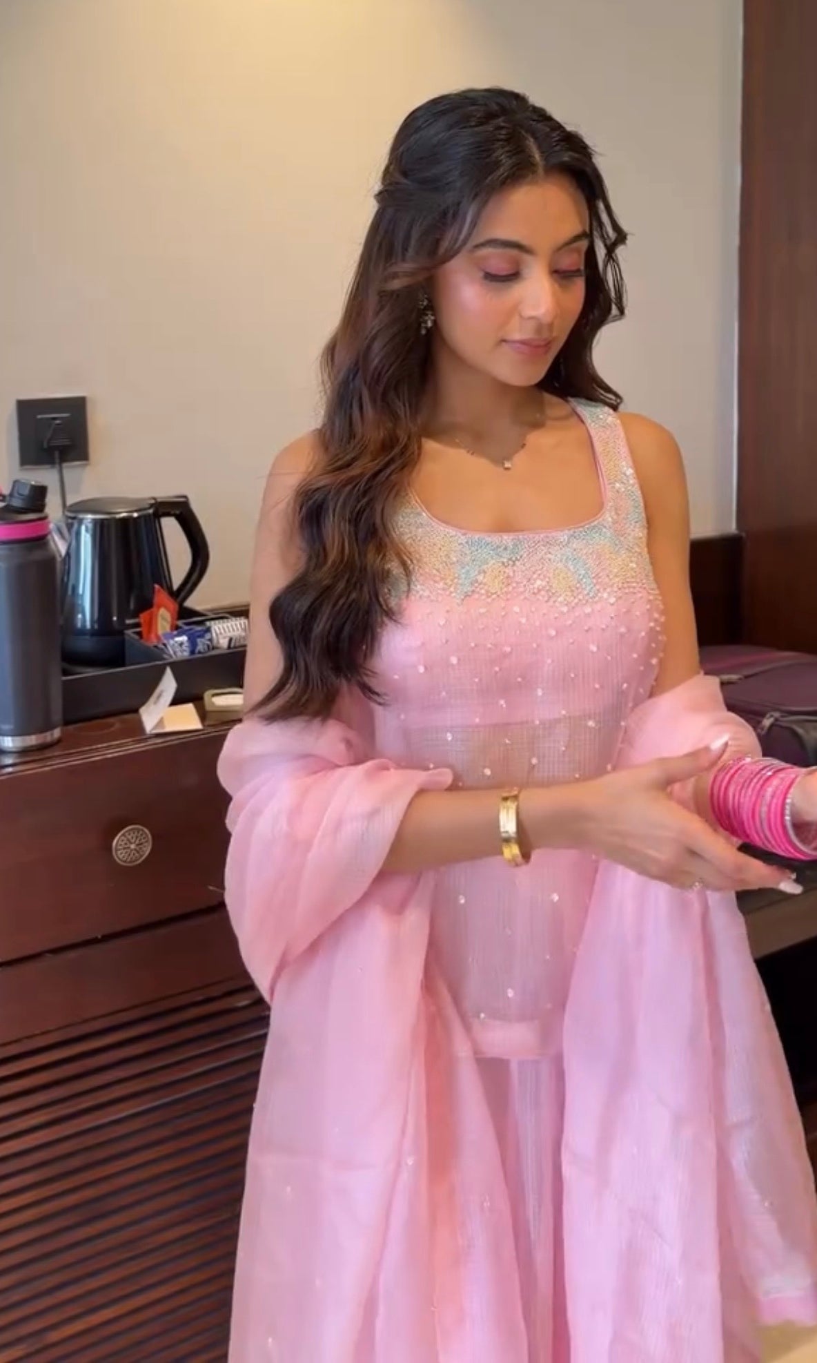 Radhika Bhardwaj in Sleeveless Suit Set with Doriya Dupatta