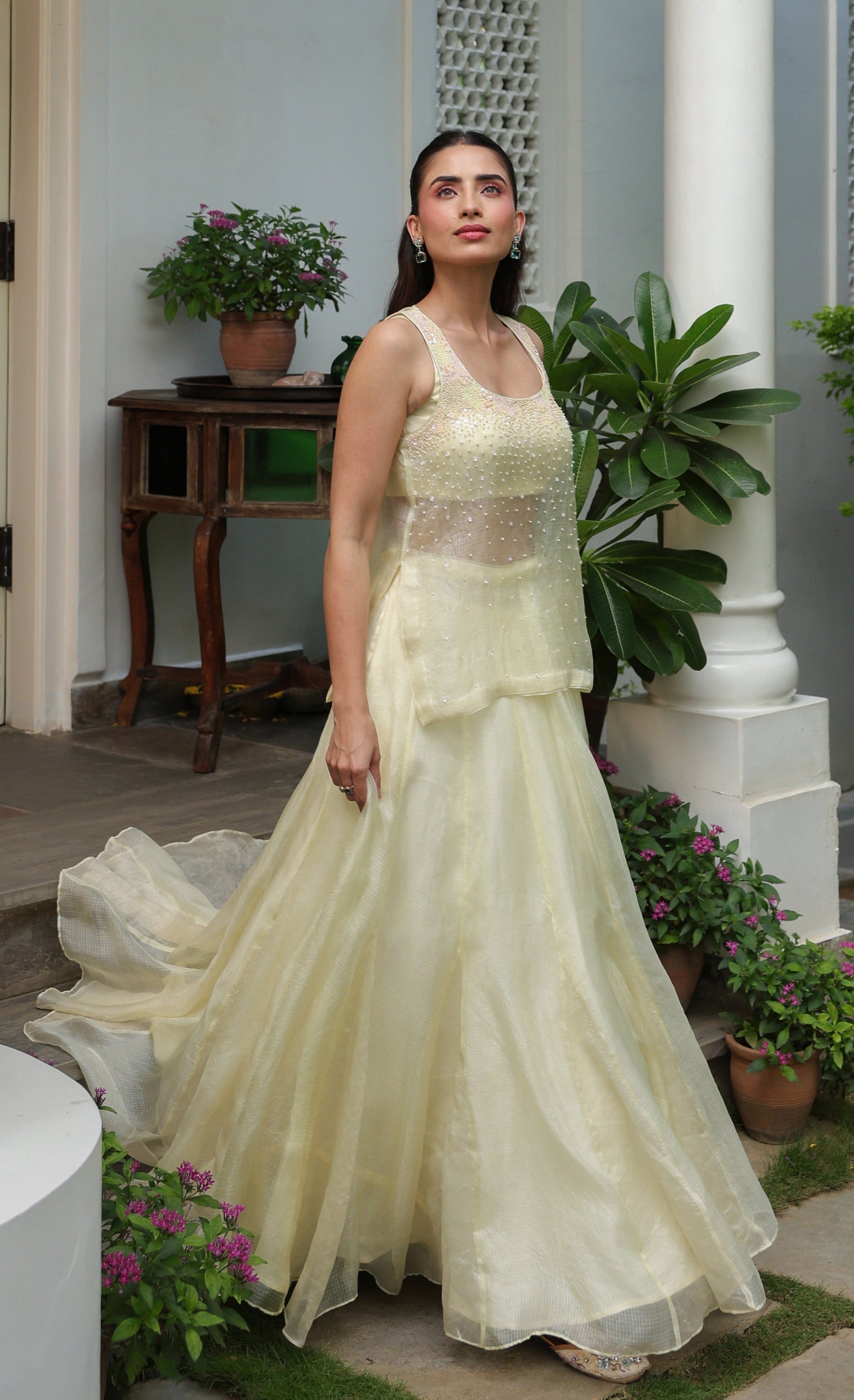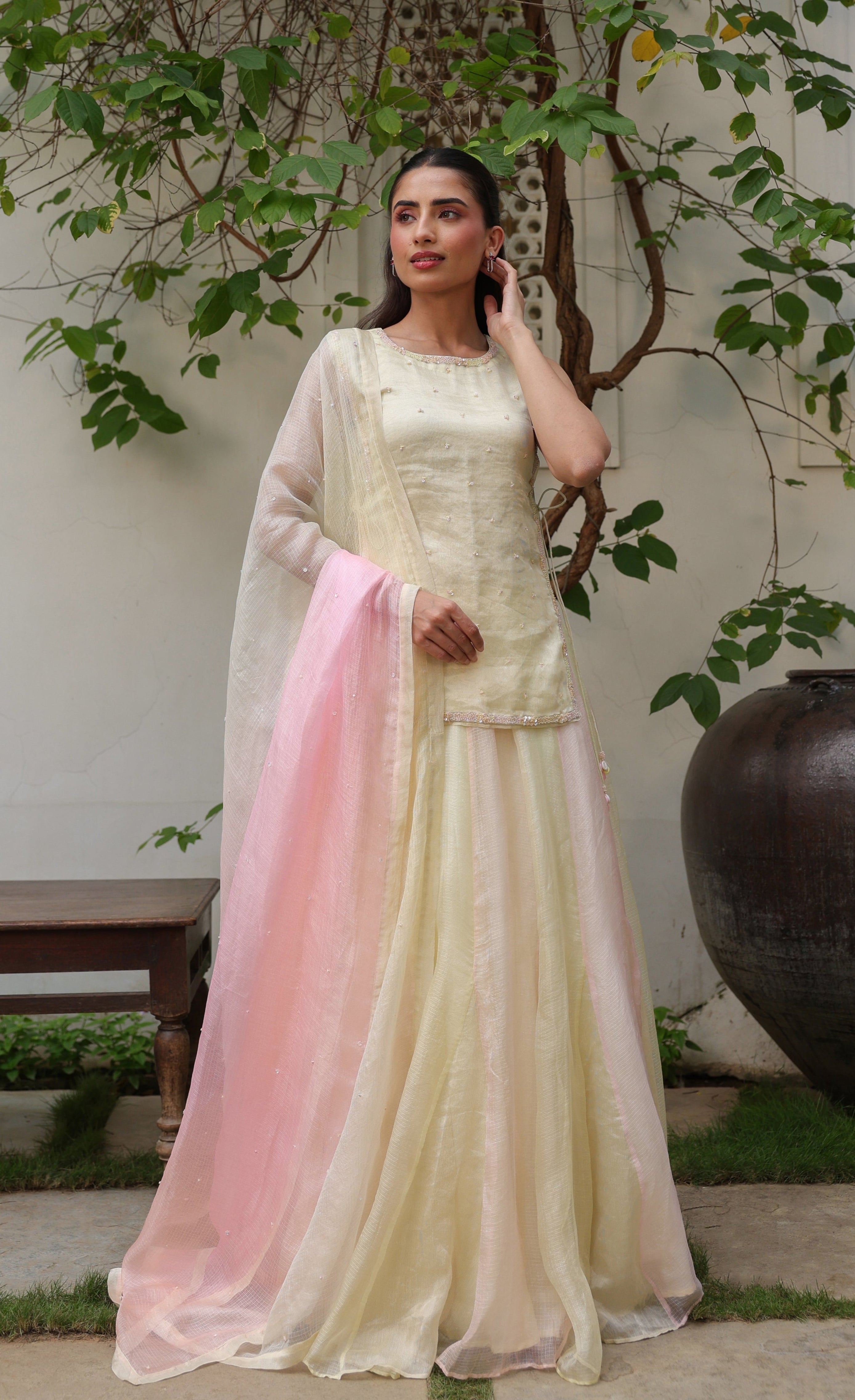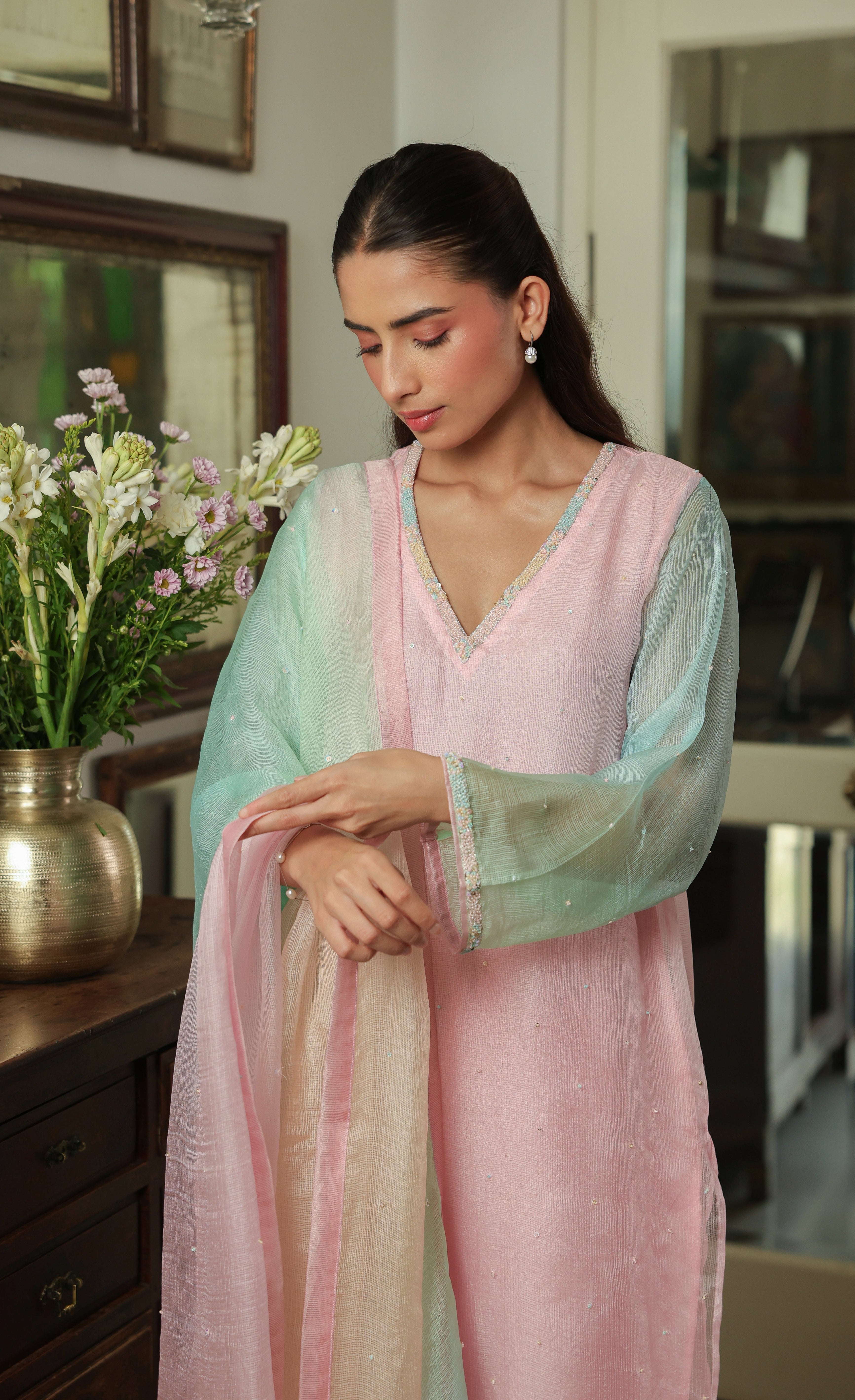 Radhika Bhardwaj in Sleeveless Suit Set with Doriya Dupatta