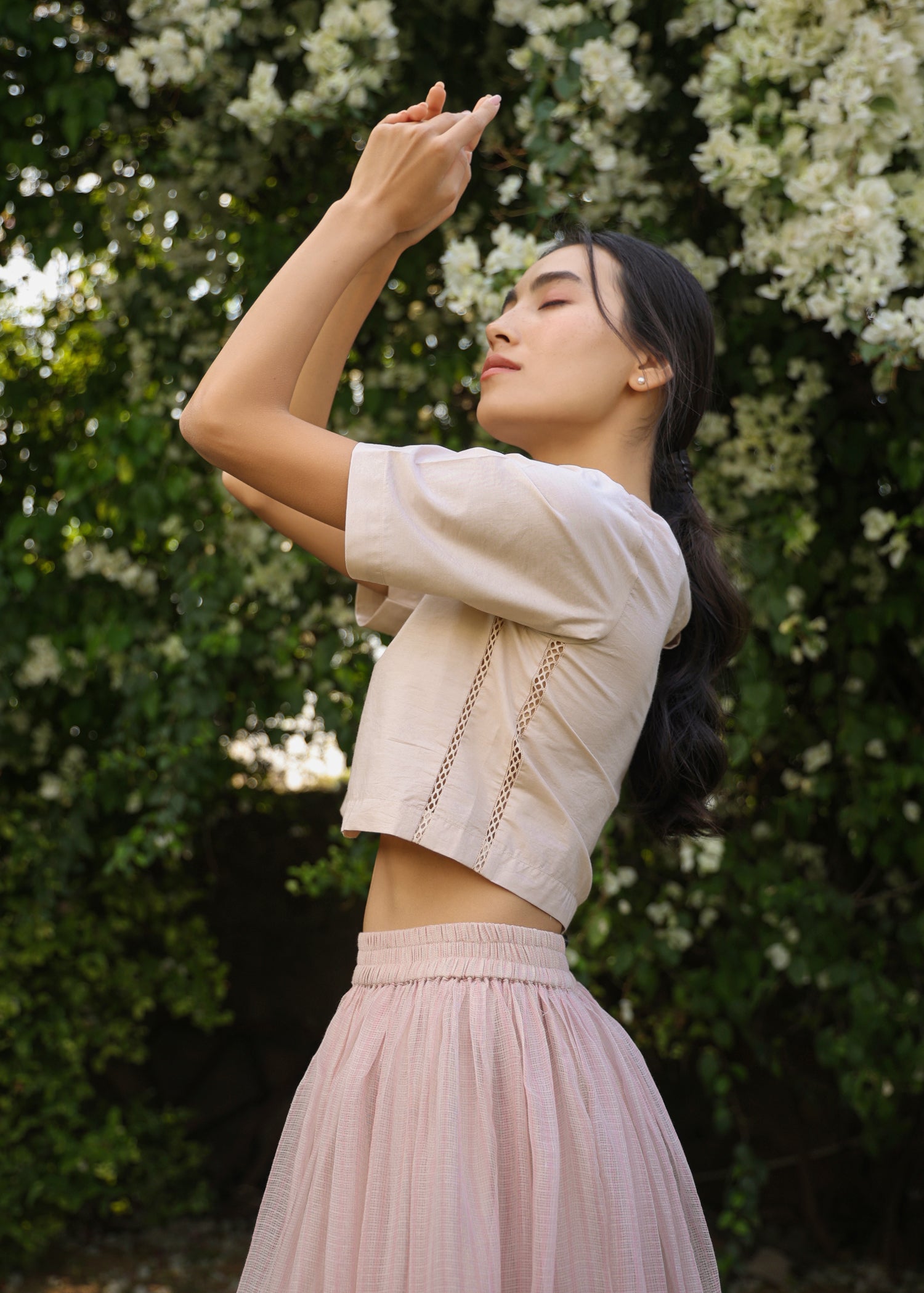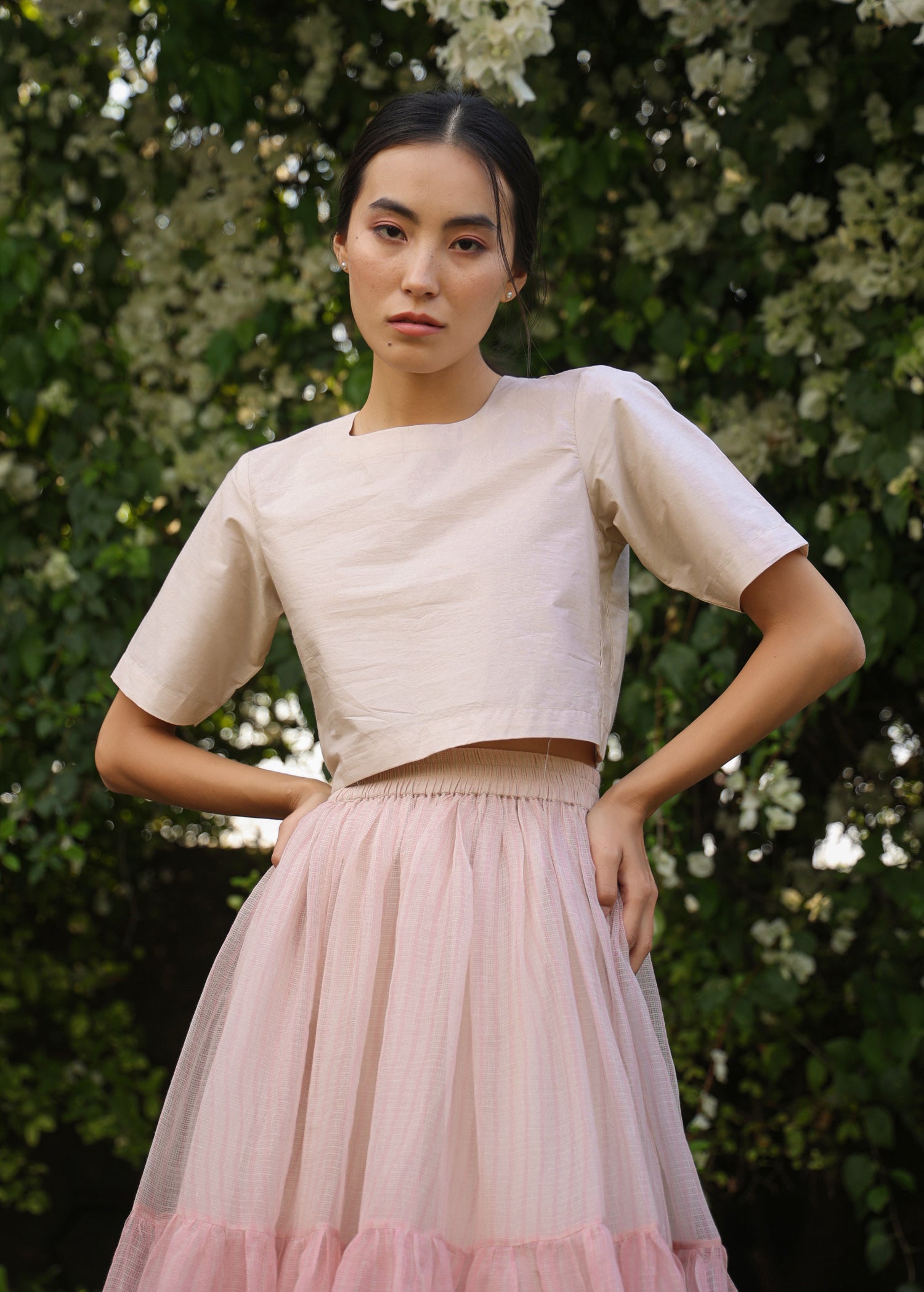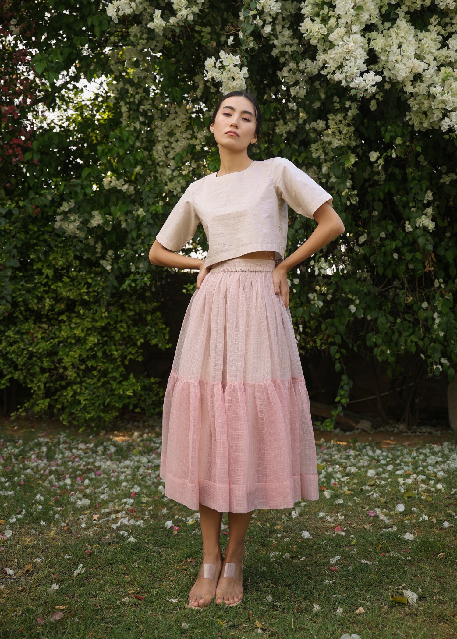 - Striped Doriya Panelled Skirt with elasticated waistline