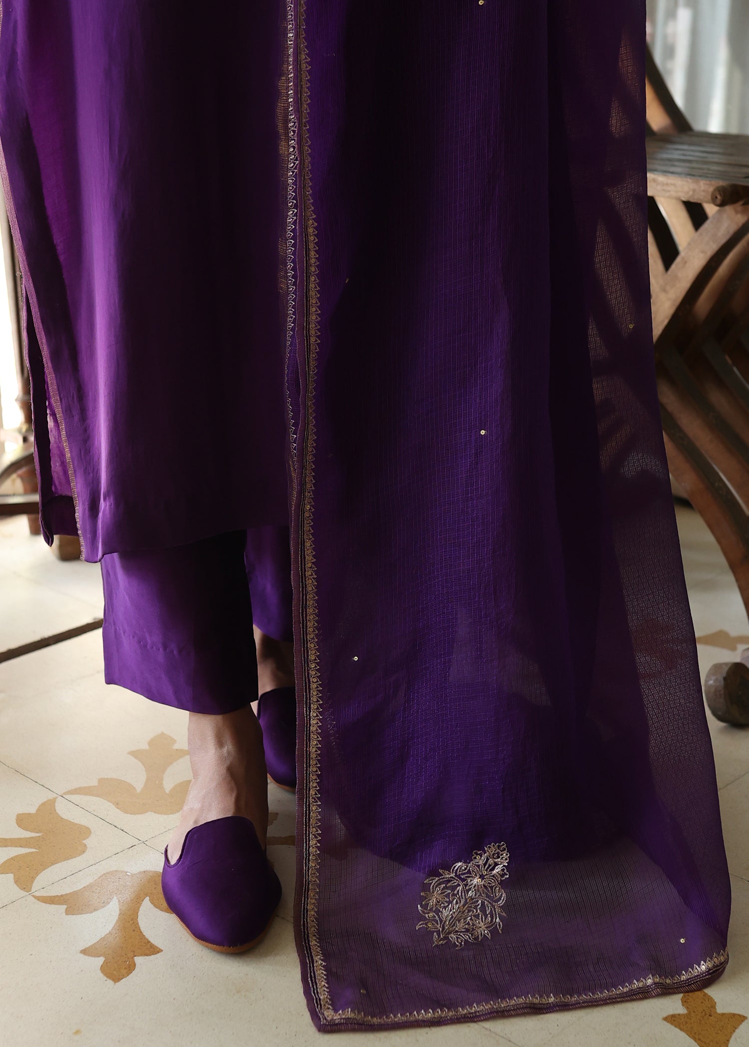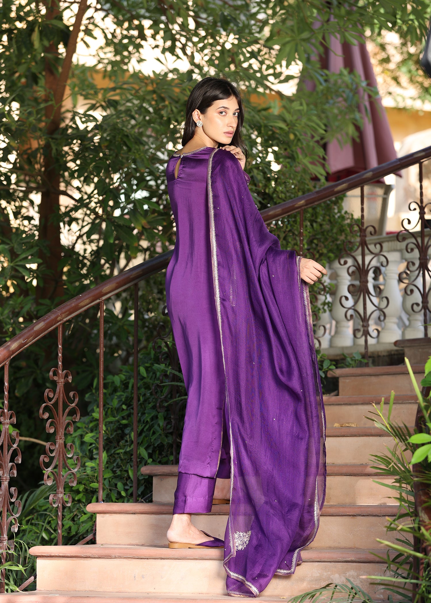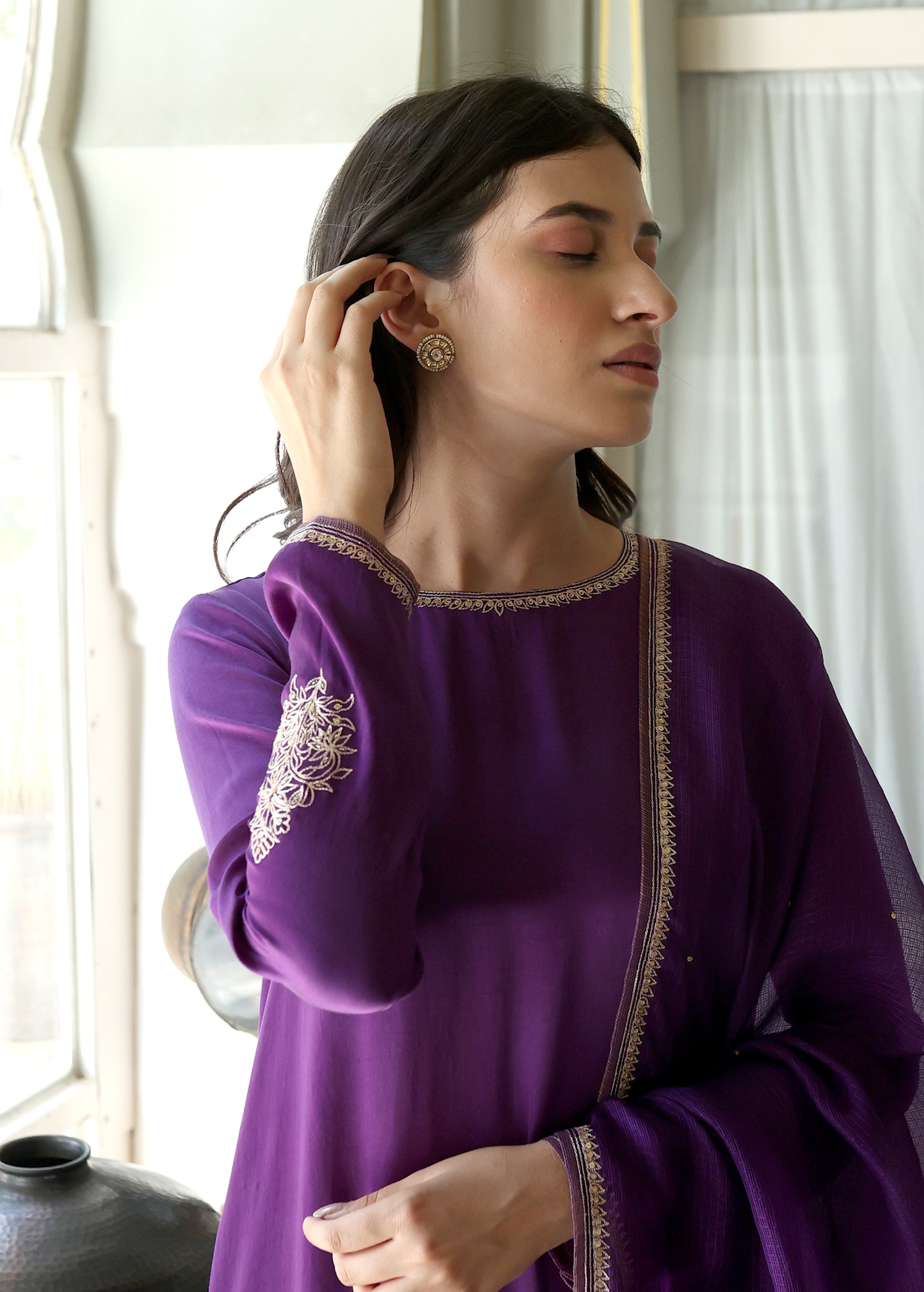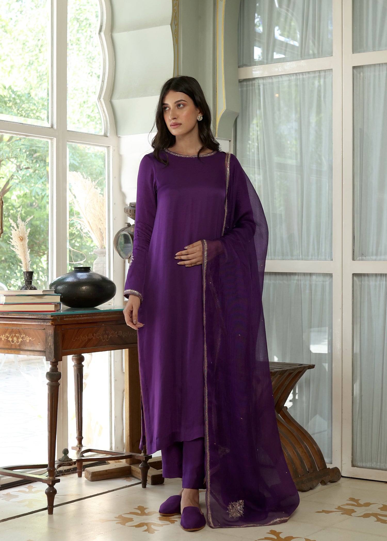 - Straight Cut Full Sleeve Kurta featuring round neckline with exquisite motif detailing on the back and sleeves. The neckline and sleeves are beautifully enhanced with border embellishments.
