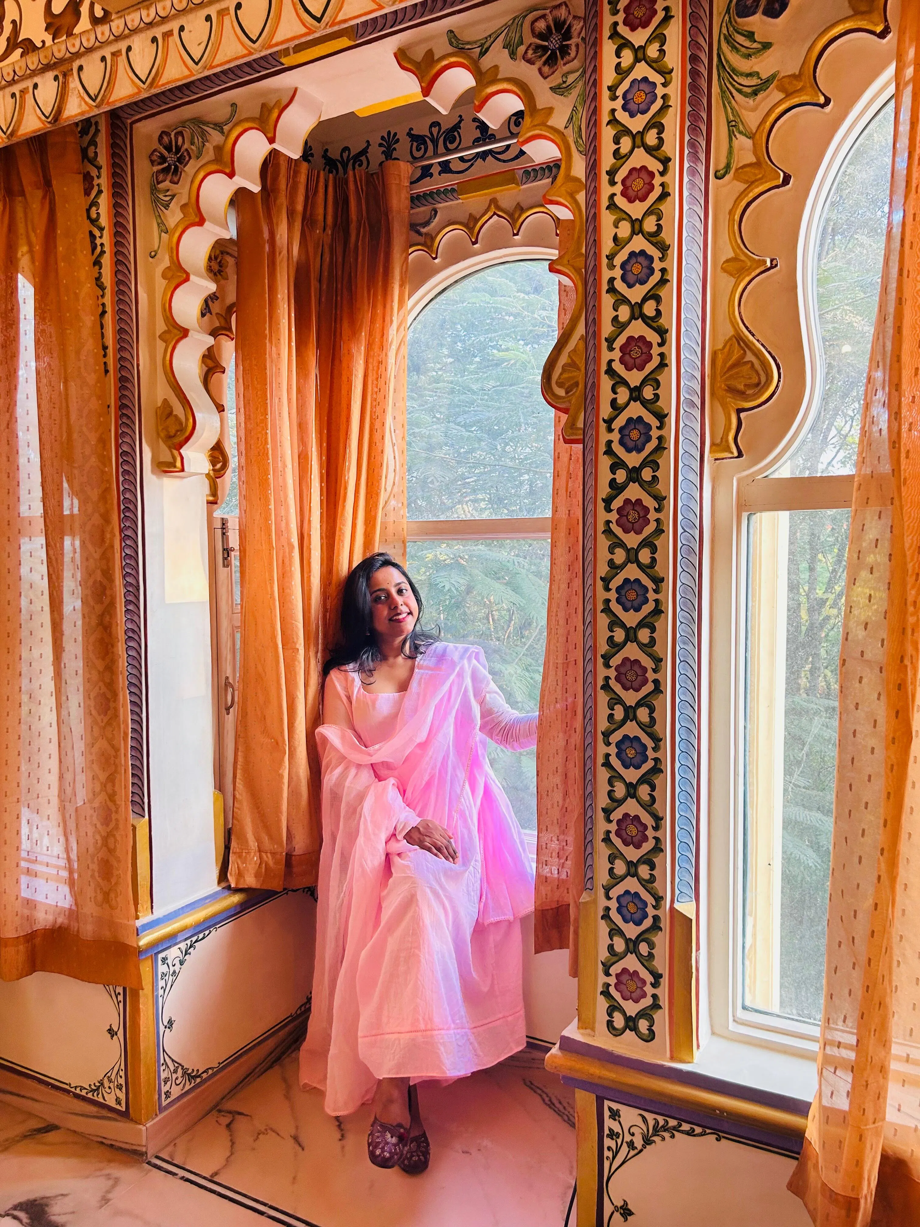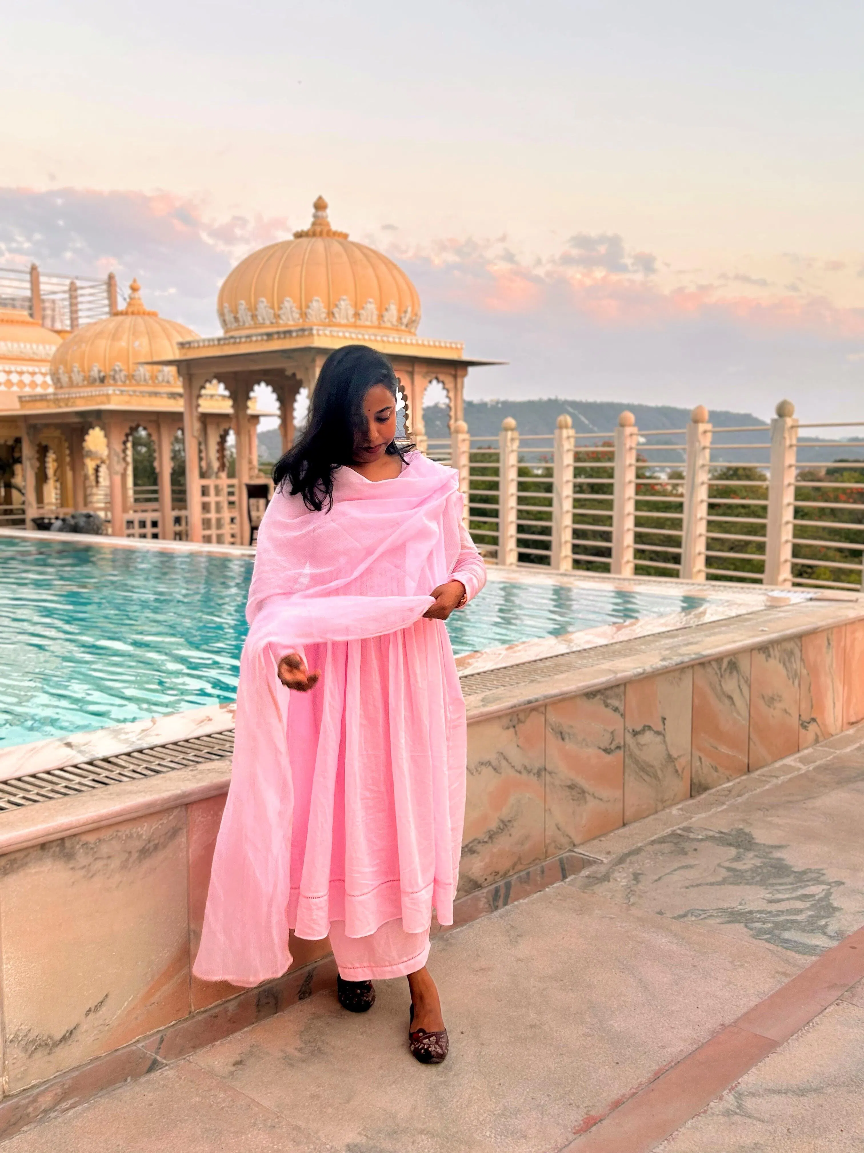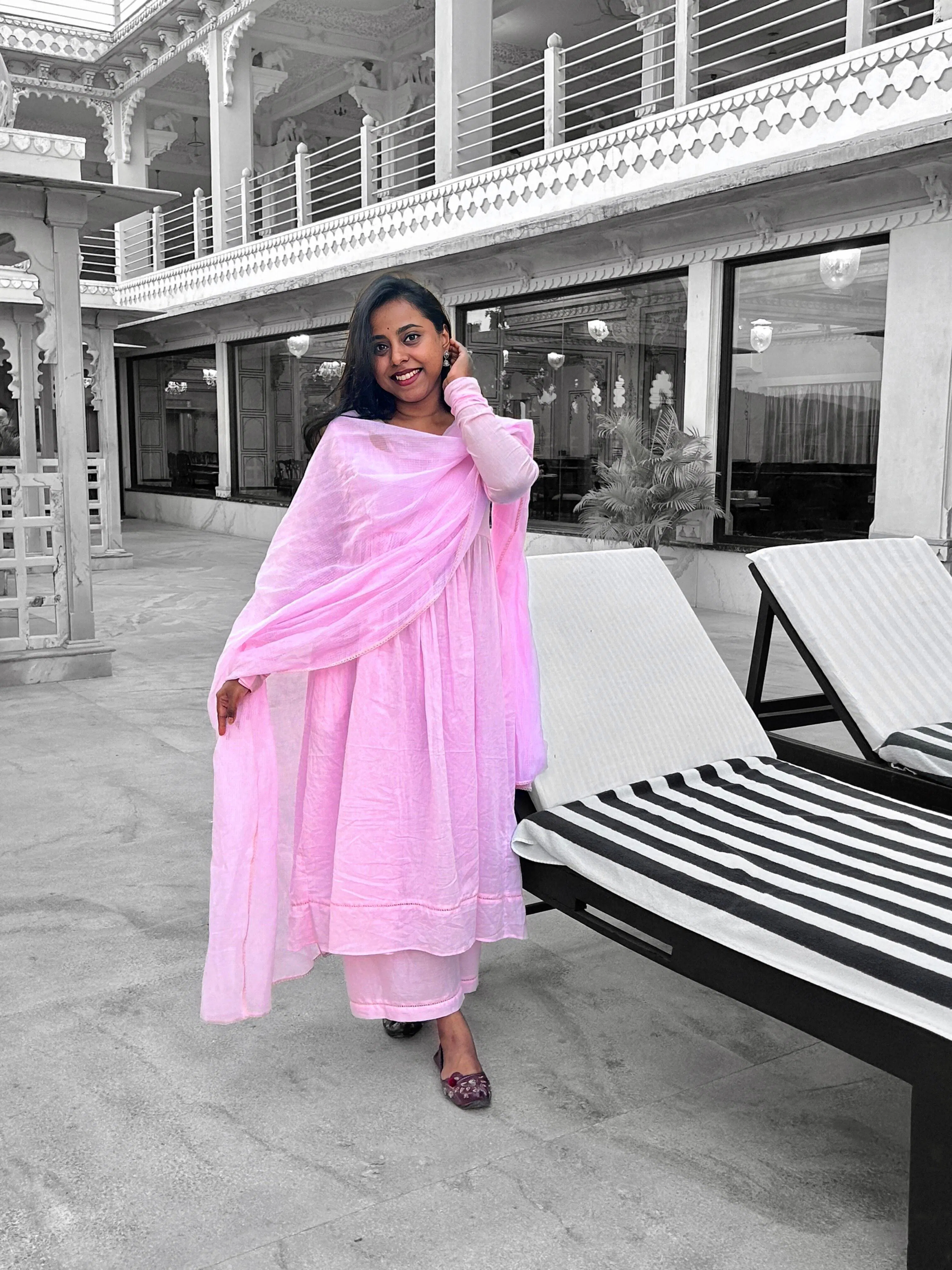 Baby Pink Full Sleeves Suit Set with Doria Dupatta