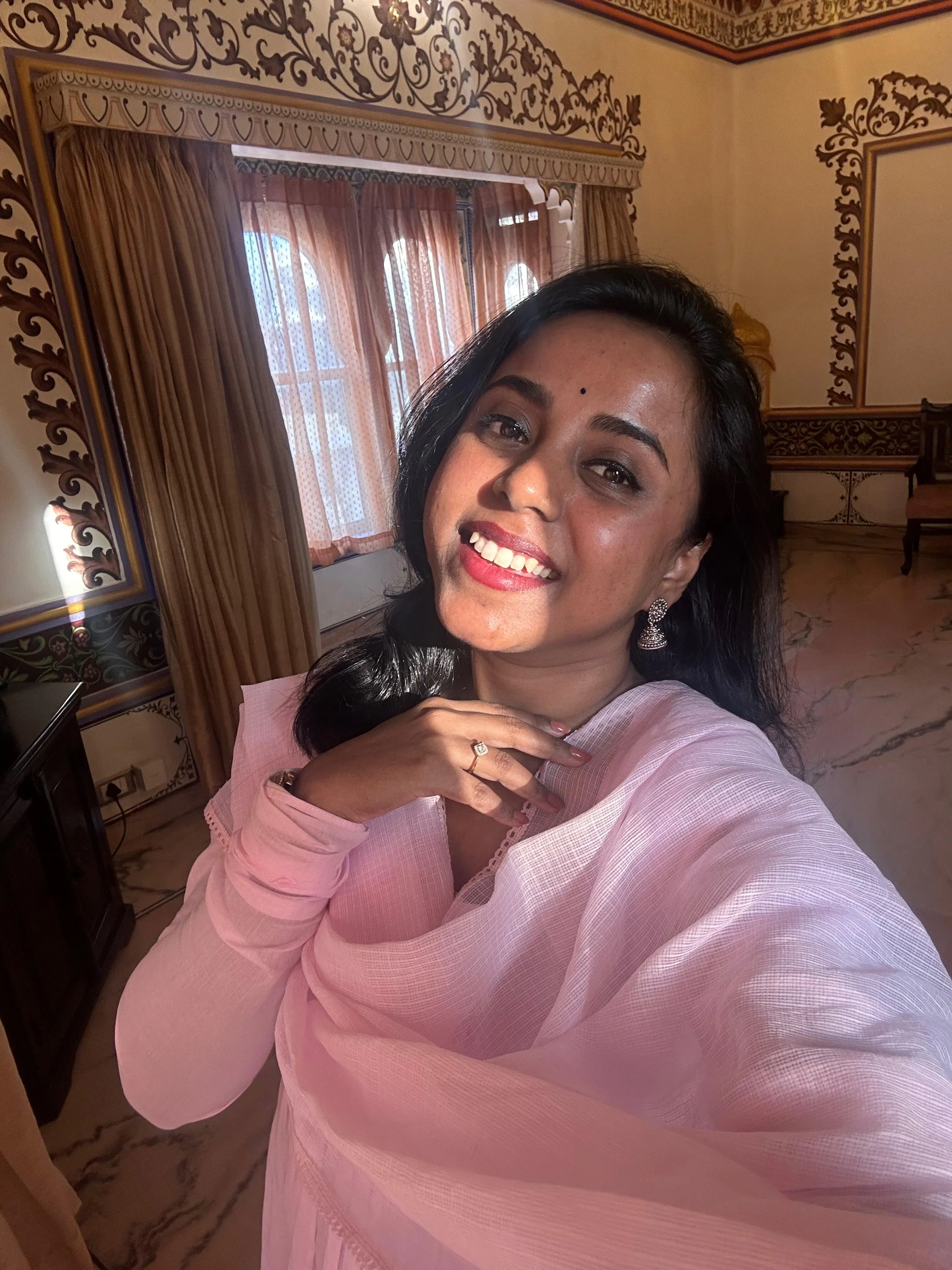 - Long Anarkali Kurta with minimal beads embellishment on the round neckline, full sleeves (with gatherings), pocket on one side and lace detailing on the flare.