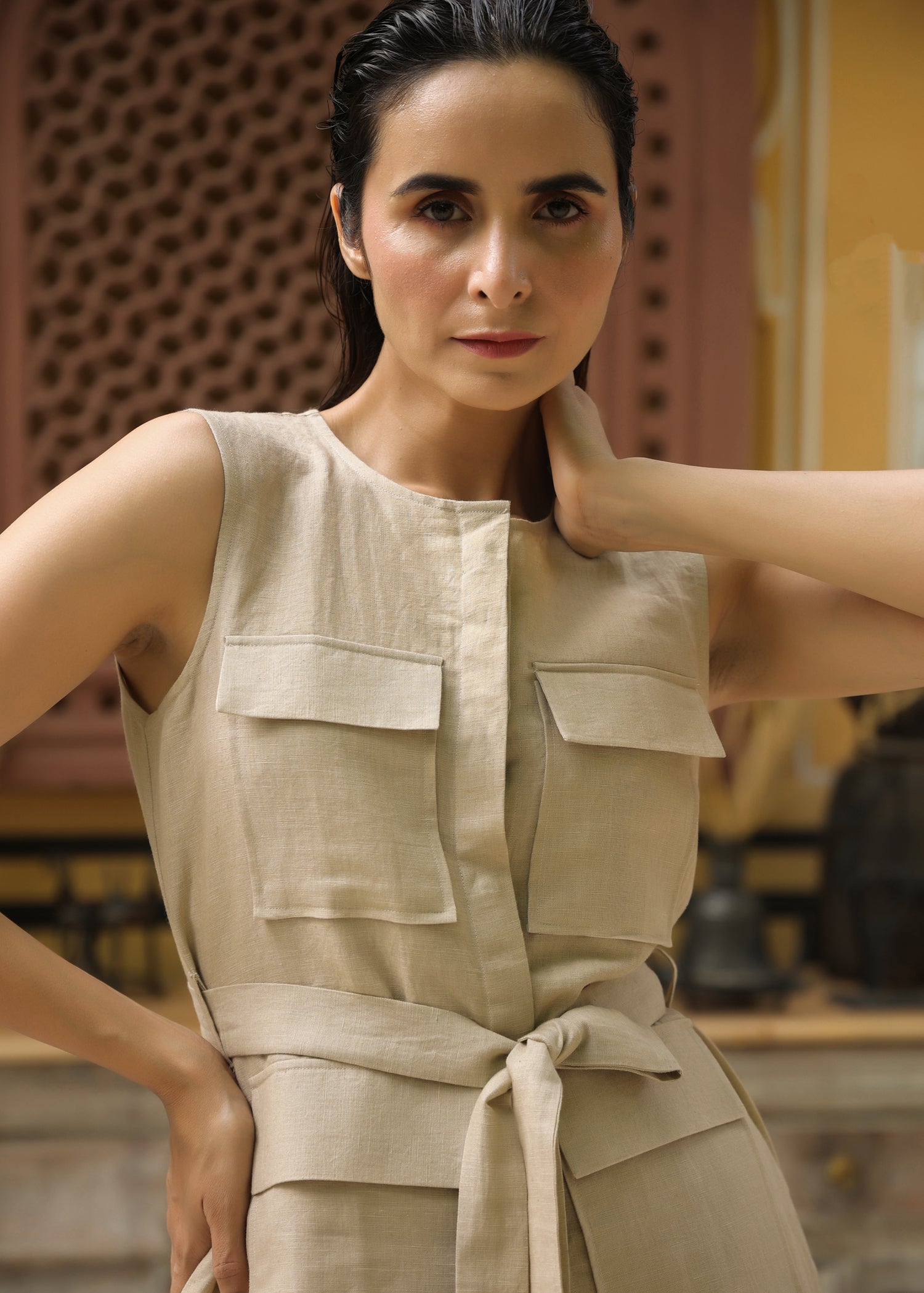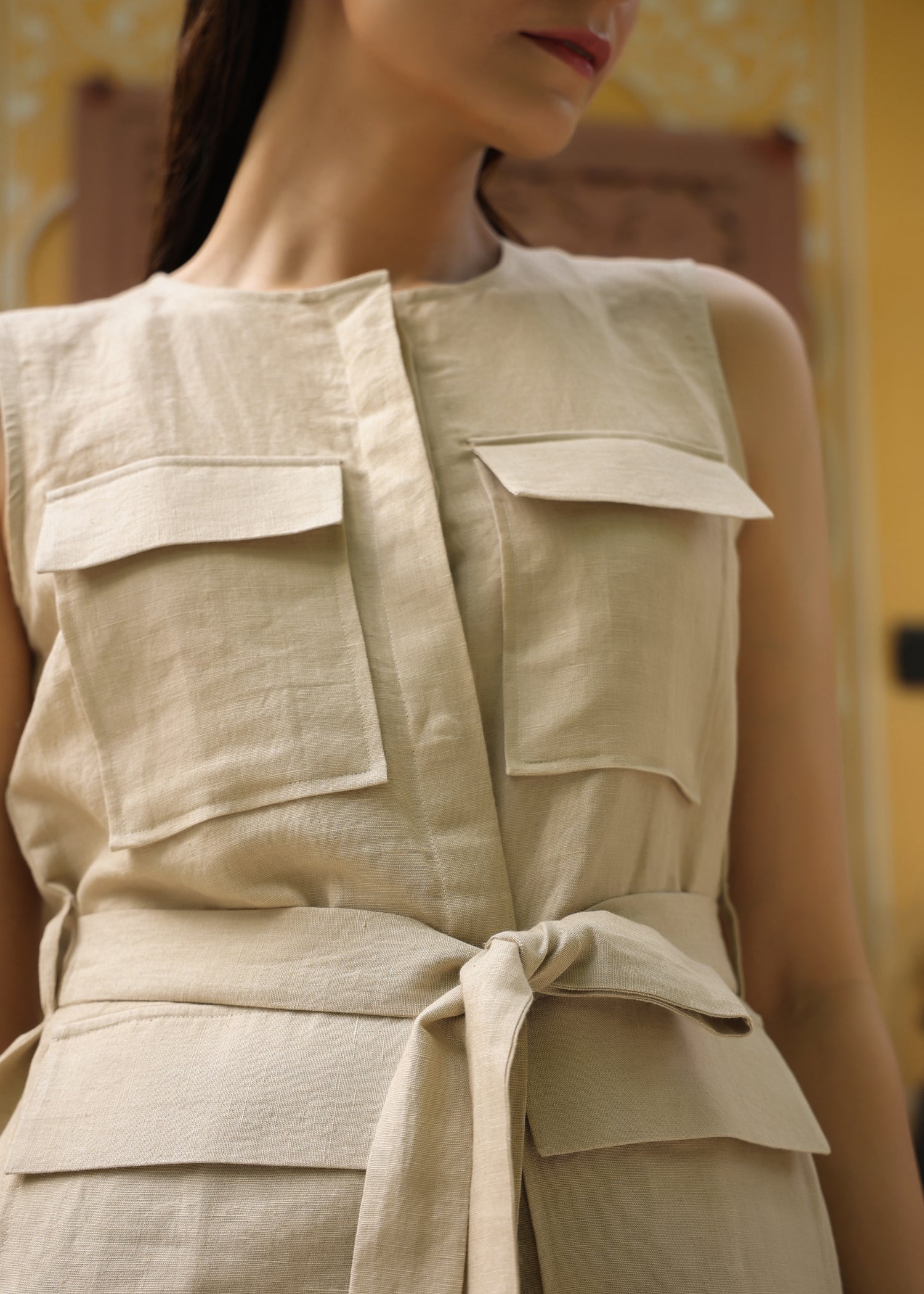 Linen Sleeveless Shirt Co-ord Set