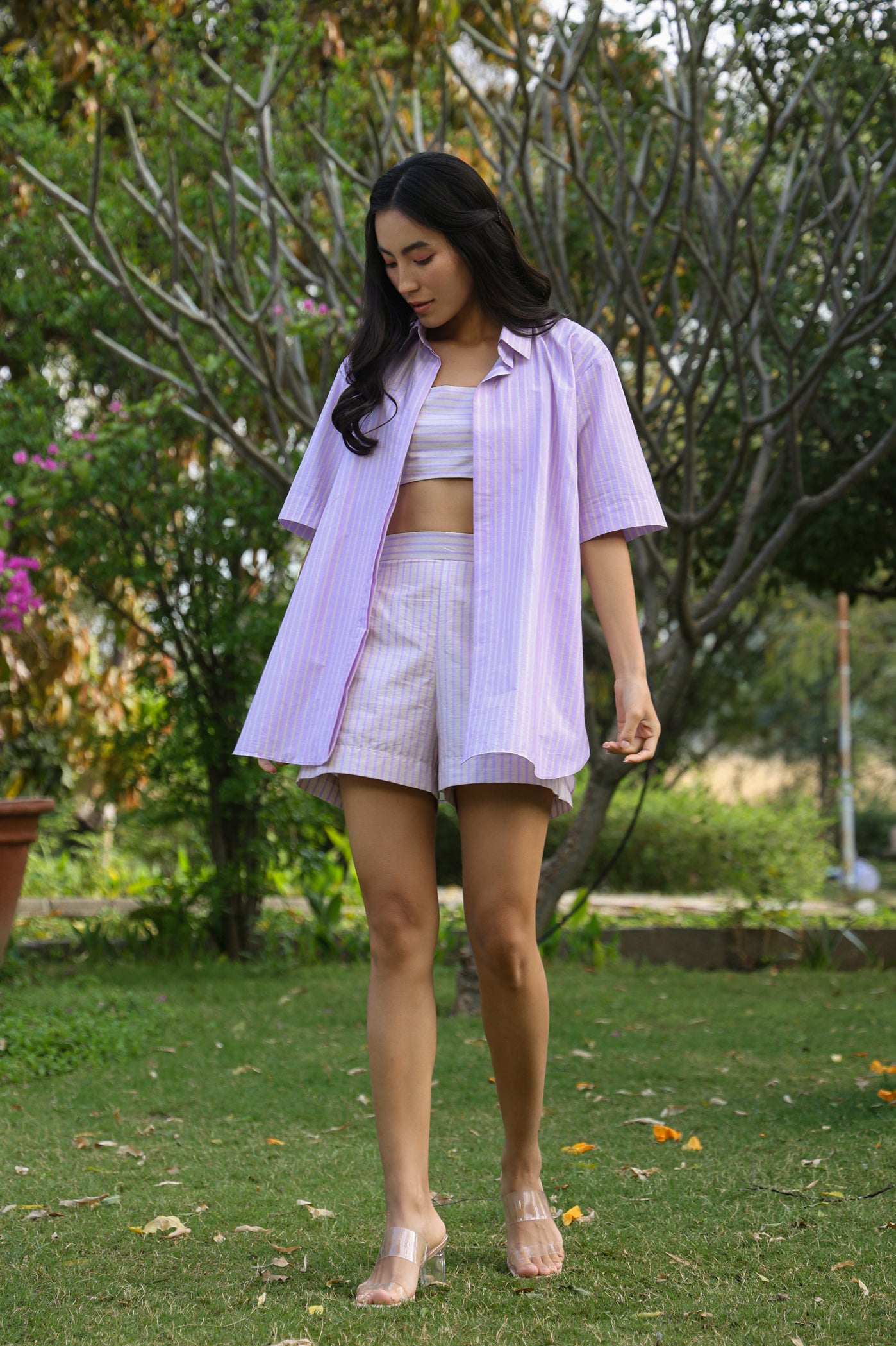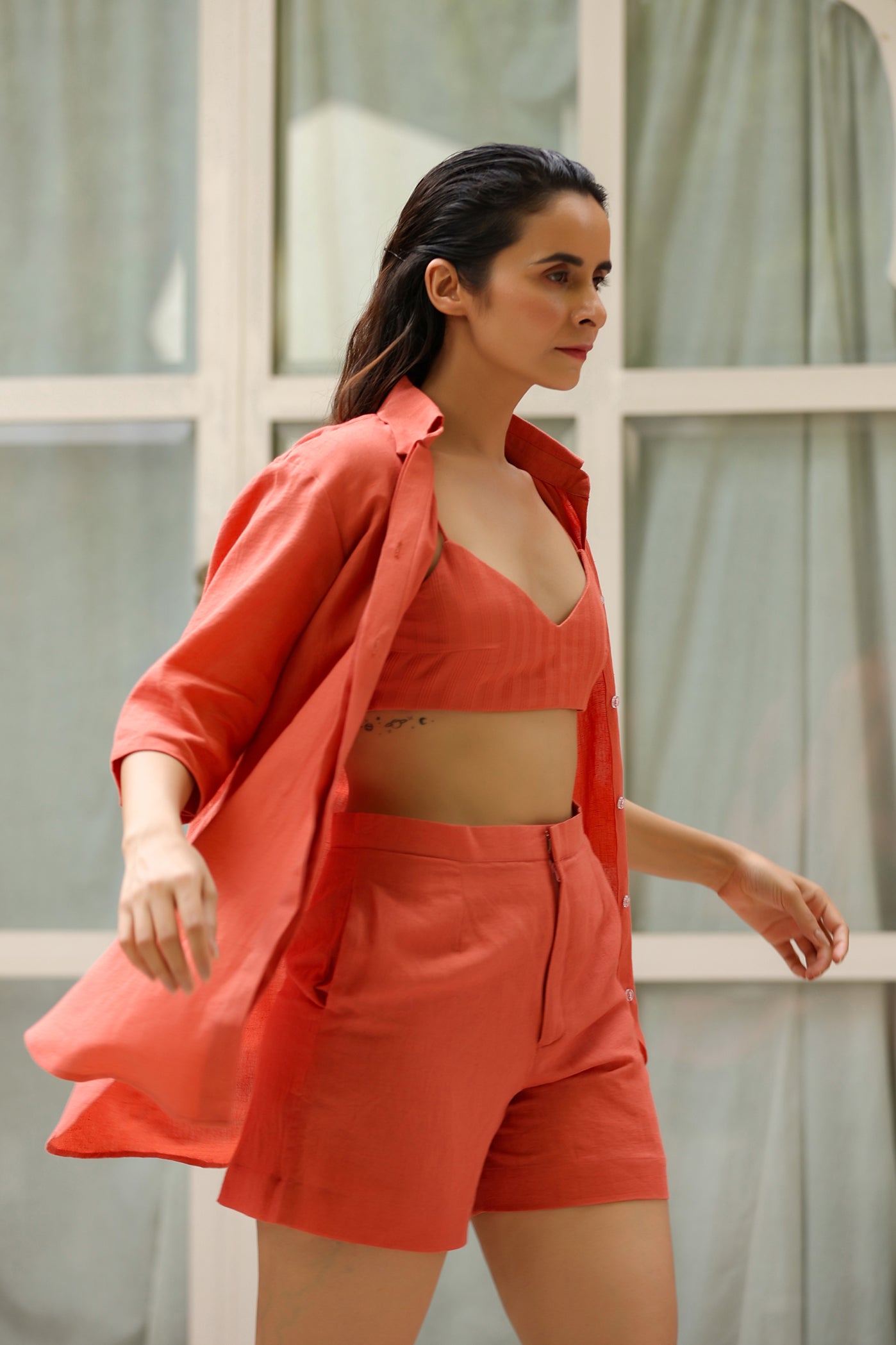 Linen 3 Piece Co-ord Set with Doriya Crop Top