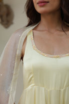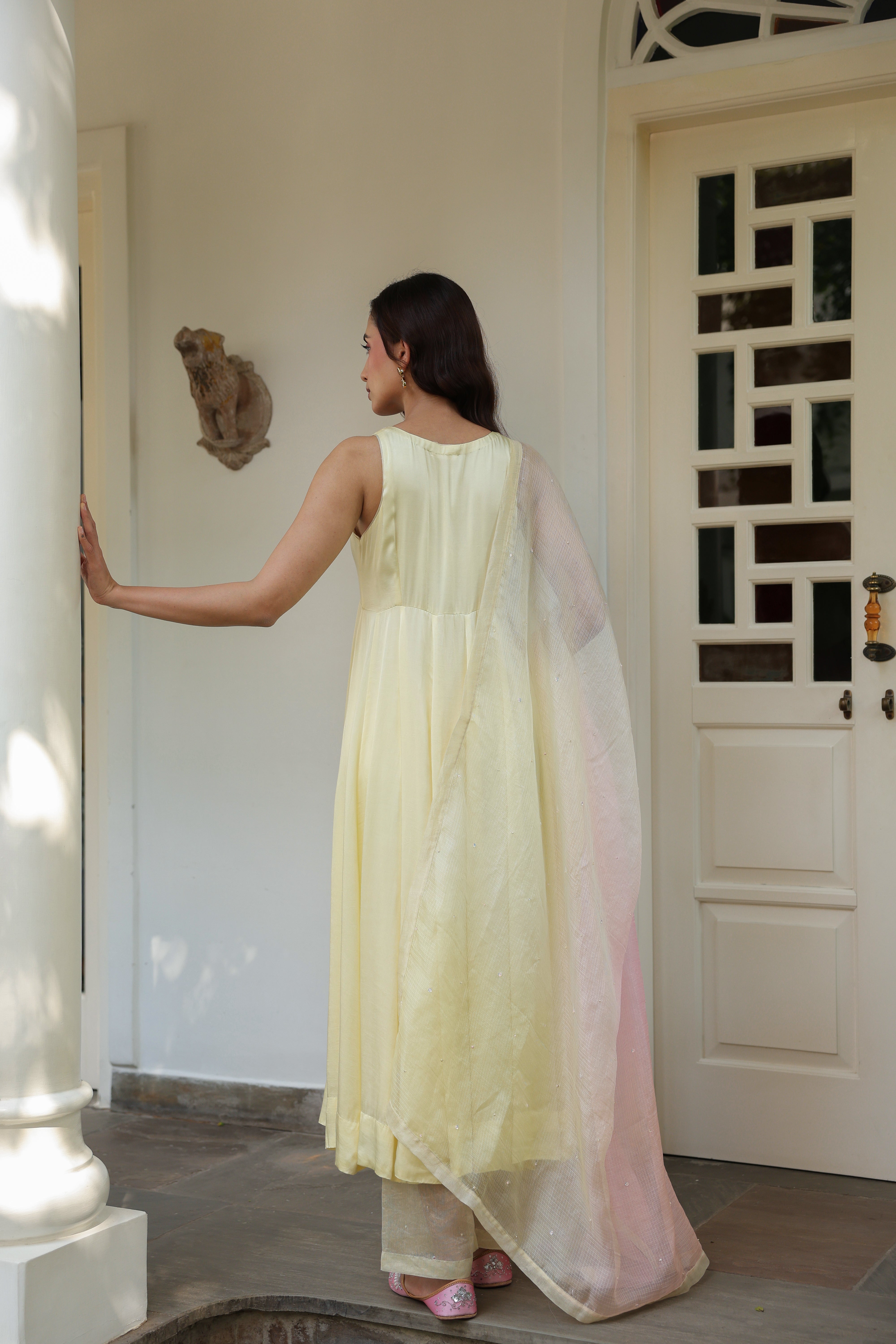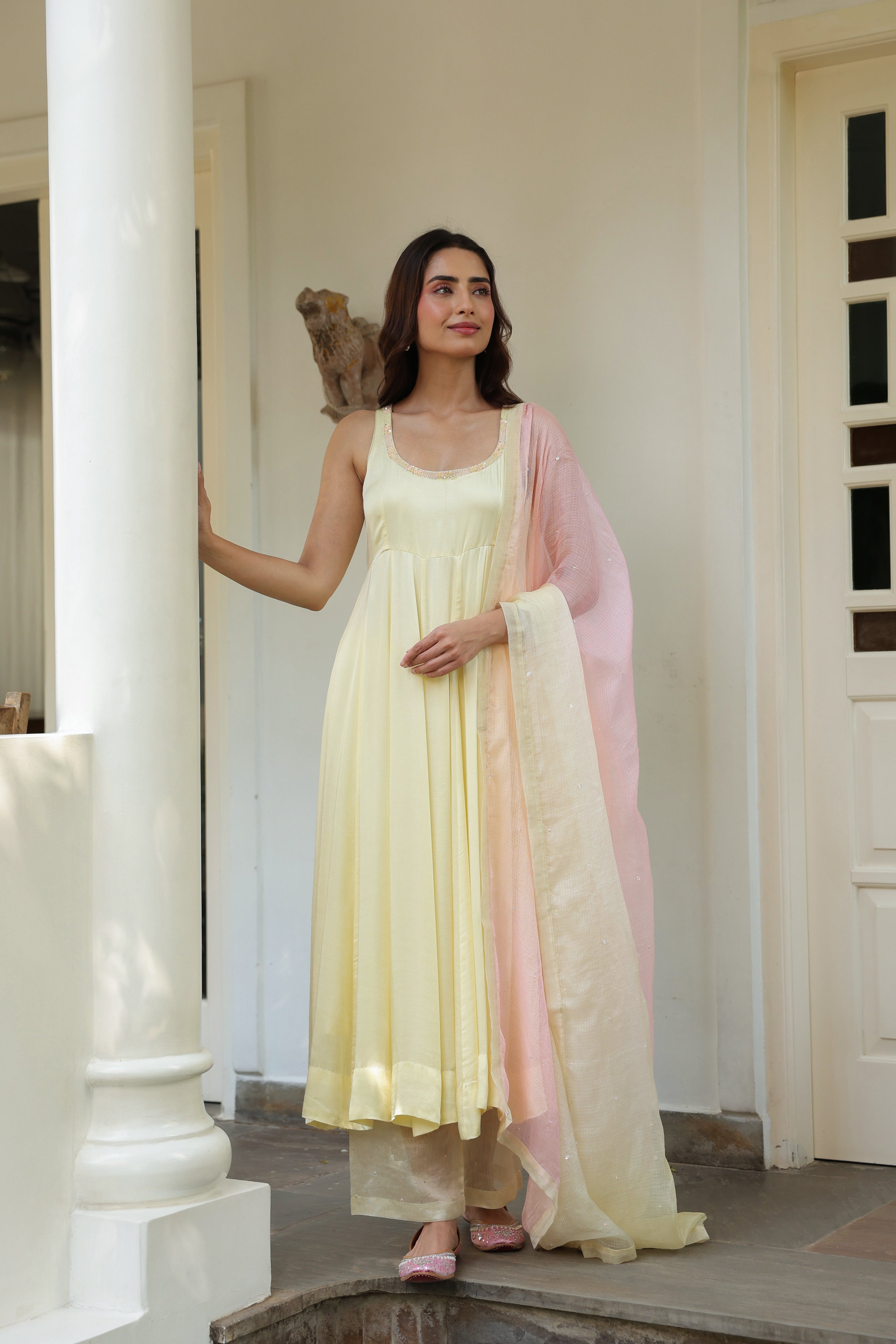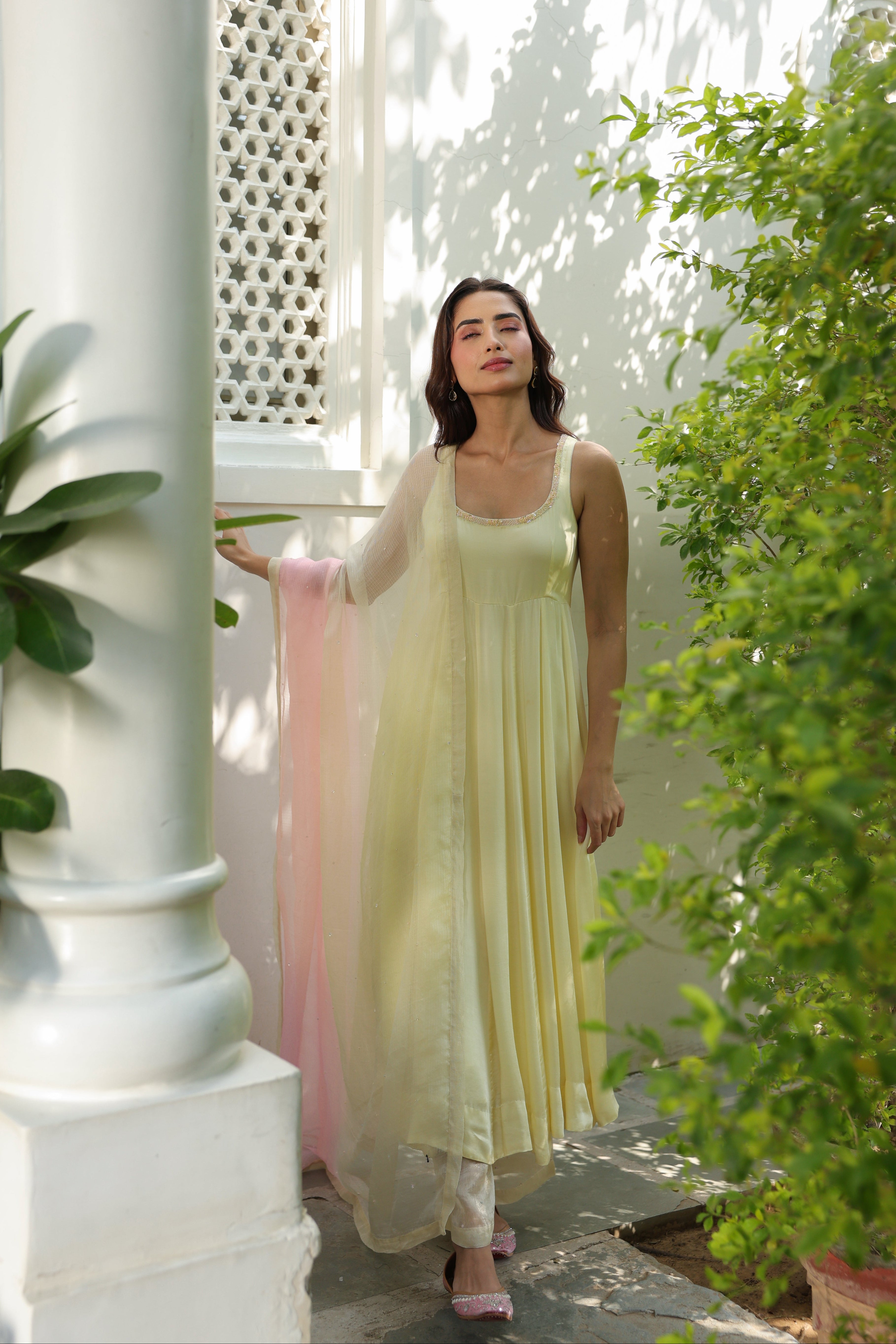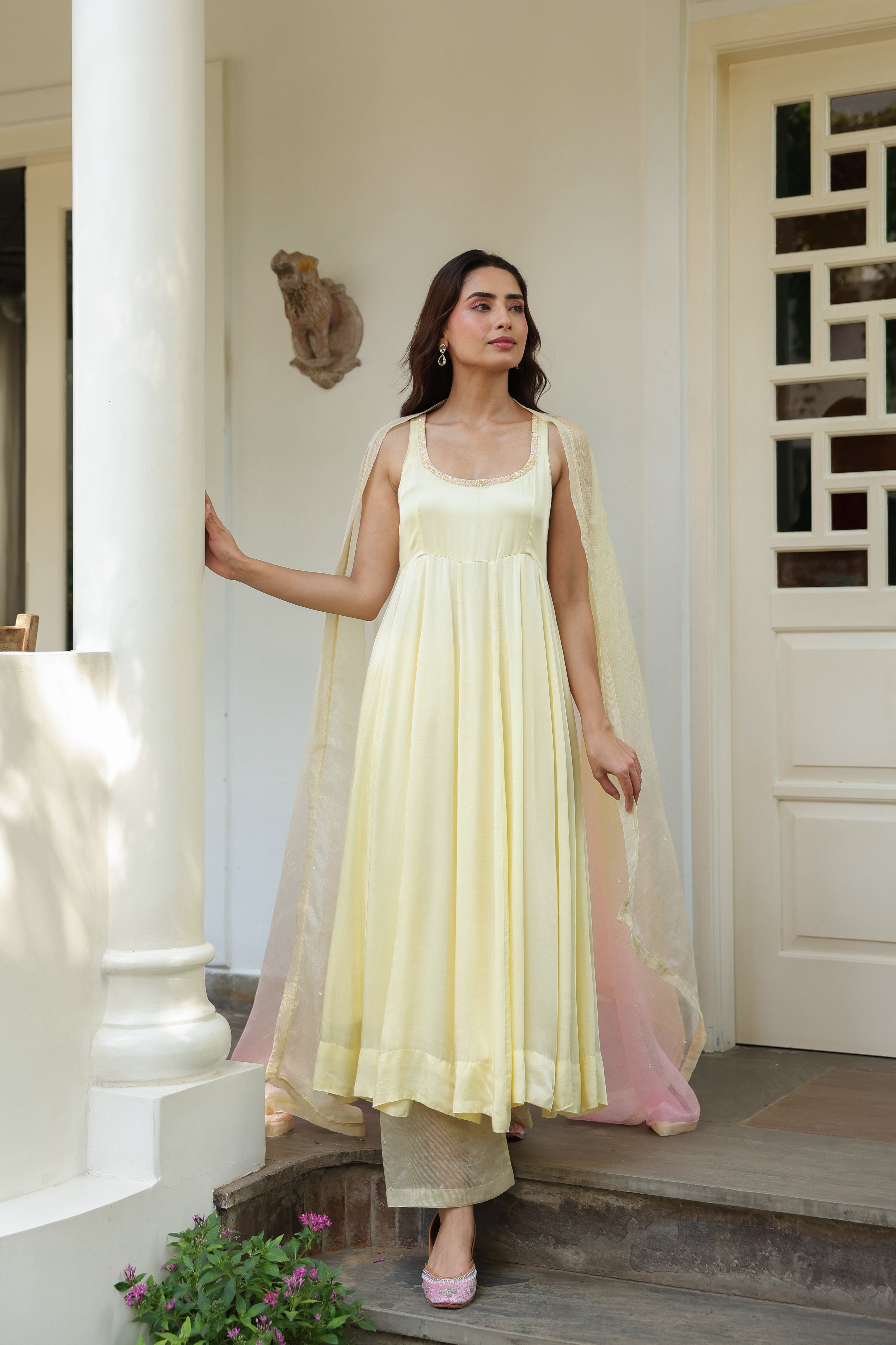 - Sleeveless Anarkali Kurta with round neckline that has border handwork on neckline.