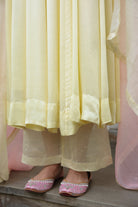- Narrow bottom Pants with chanderi panel around leg opening.