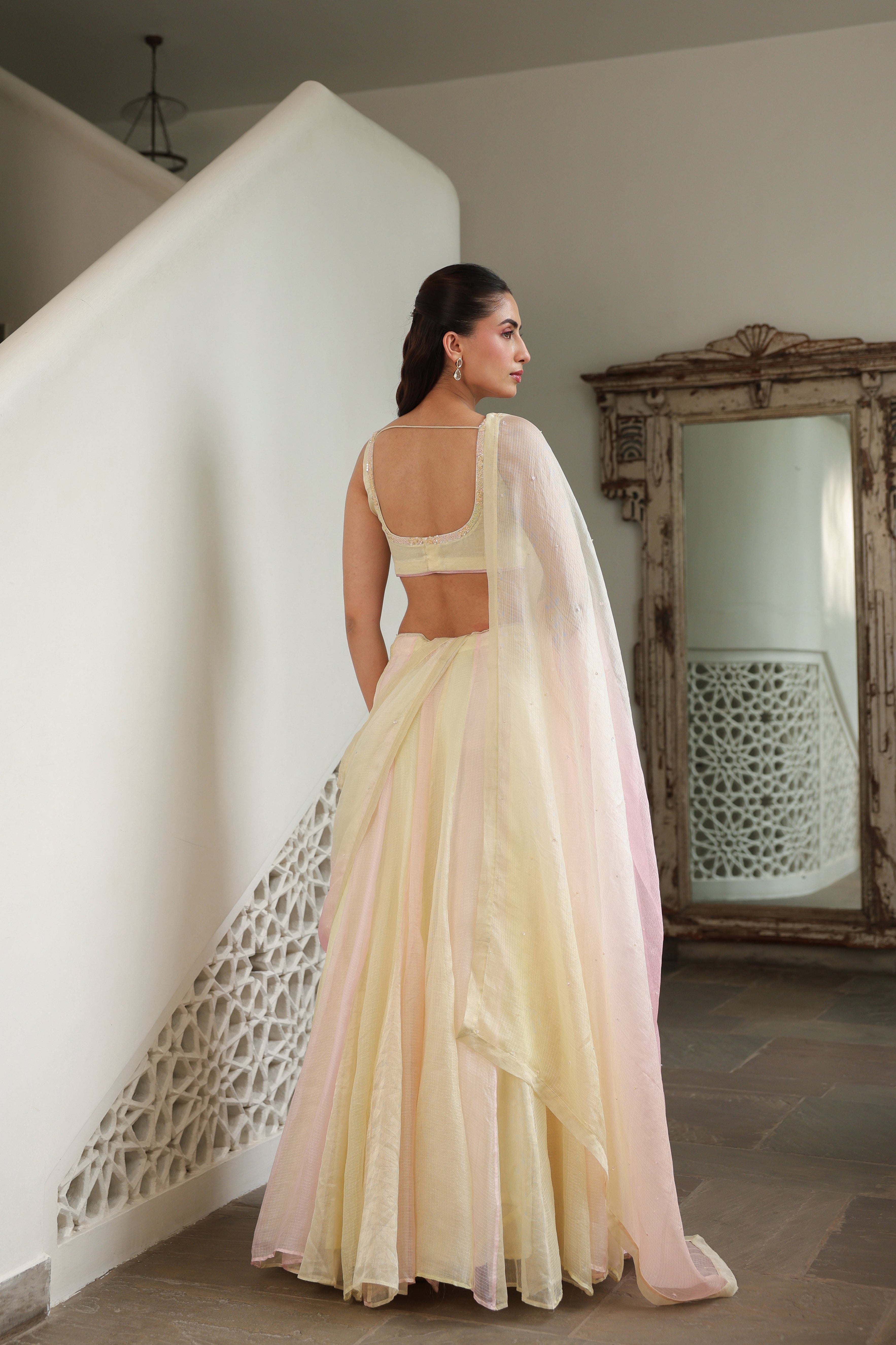 - Blouse tailoring: If you opt for blouse tailoring, your blouse will be custom-stitched to your measurements. Once the order is confirmed, our team will reach out to you via email for your detailed body measurements.