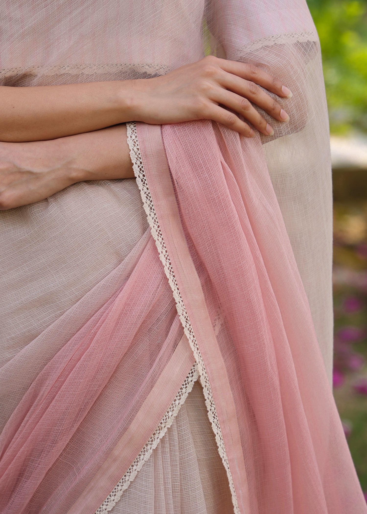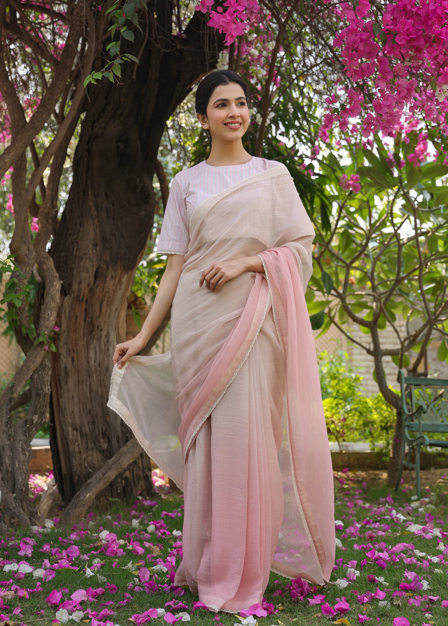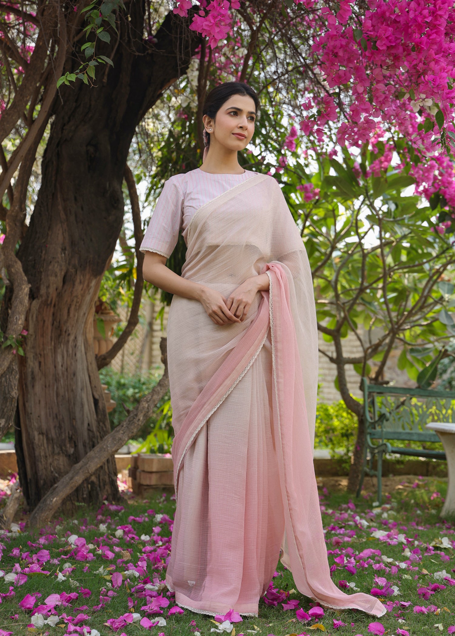 - Kota Doriya Ombre Saree with with lace and Malmal facing on border.