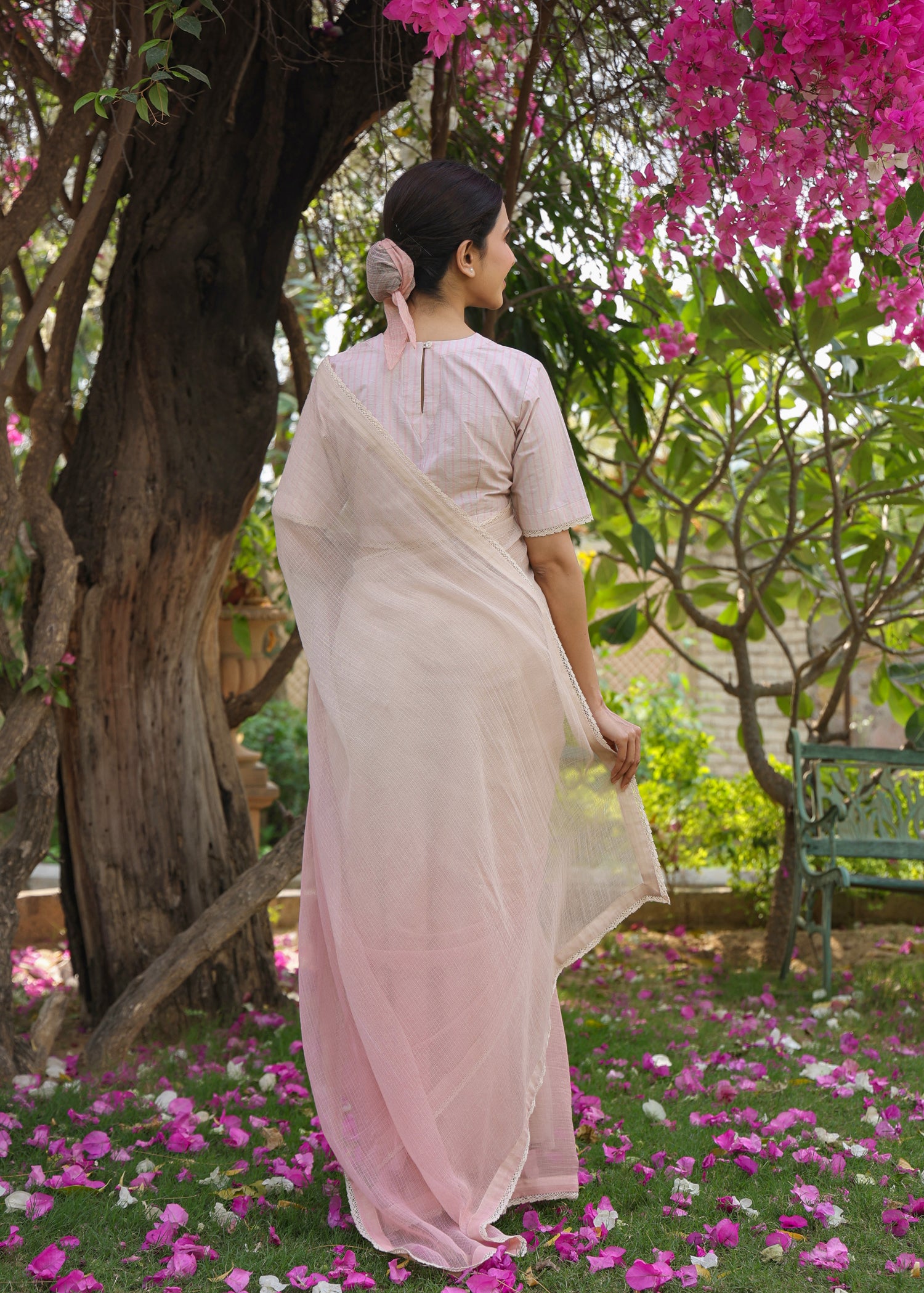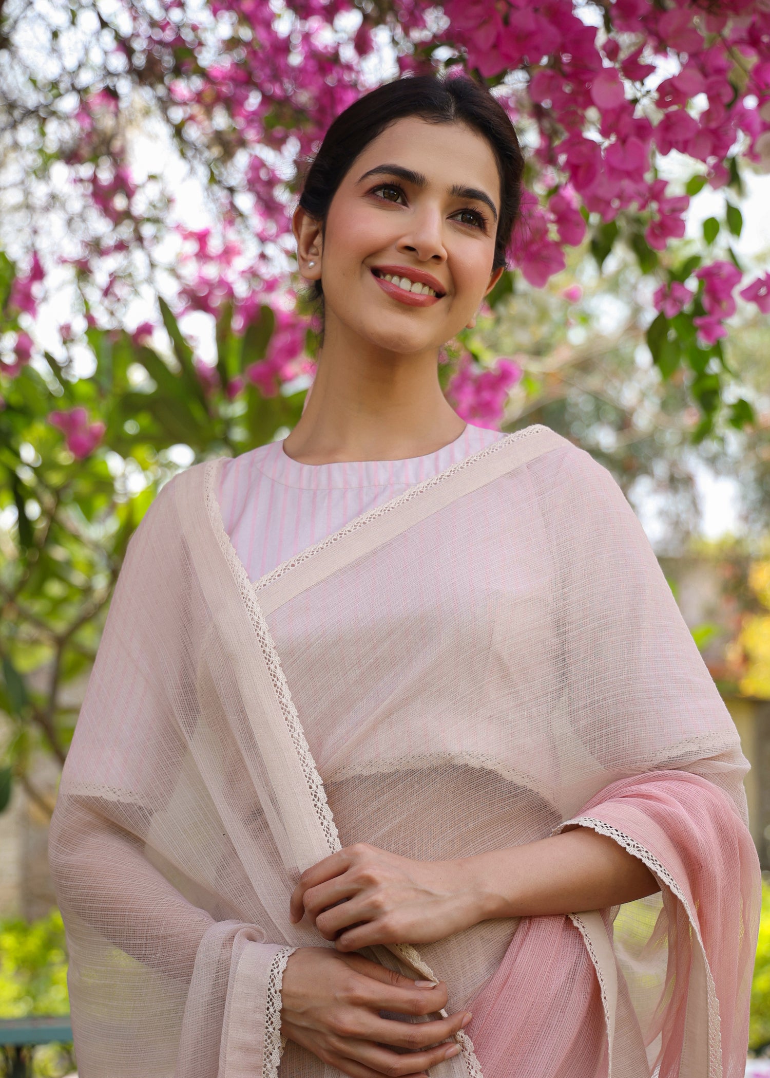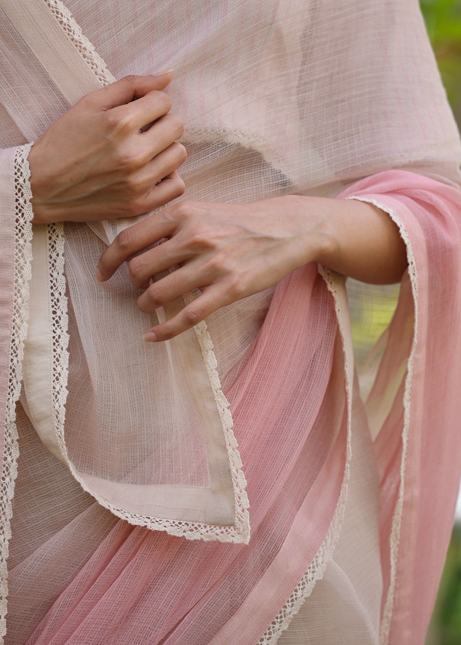- Kota Doriya Ombre Saree with with lace and Malmal facing on border.
