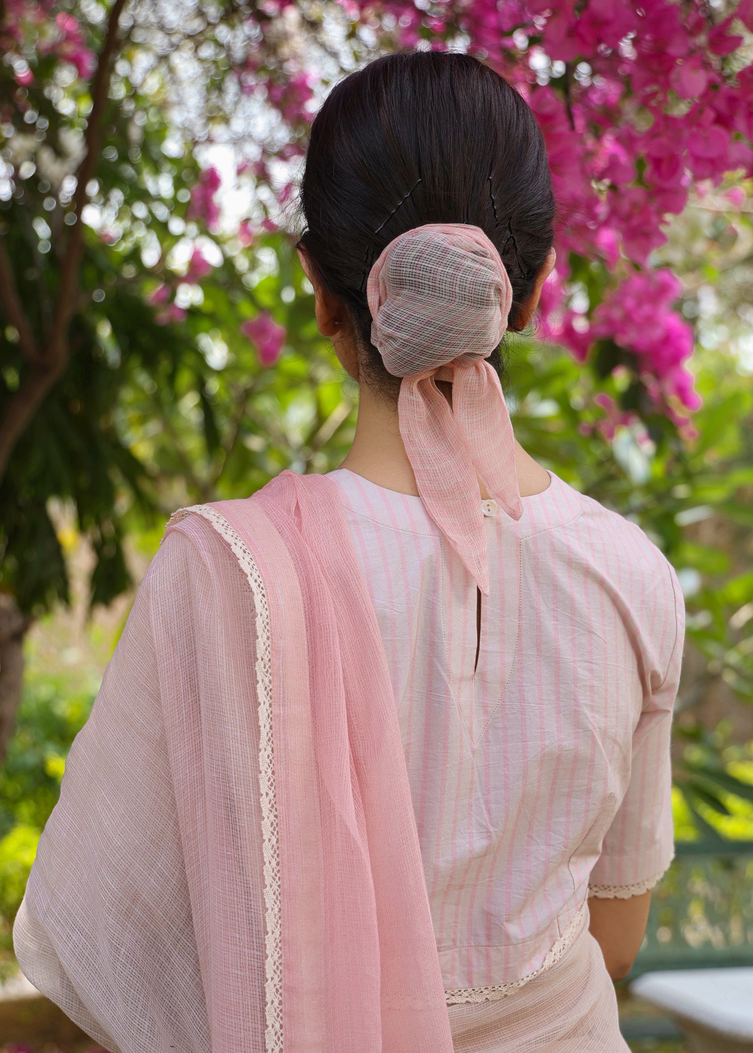 - Poplin Striped Blouse fabric ( 1 Meter ) with lace detailing.