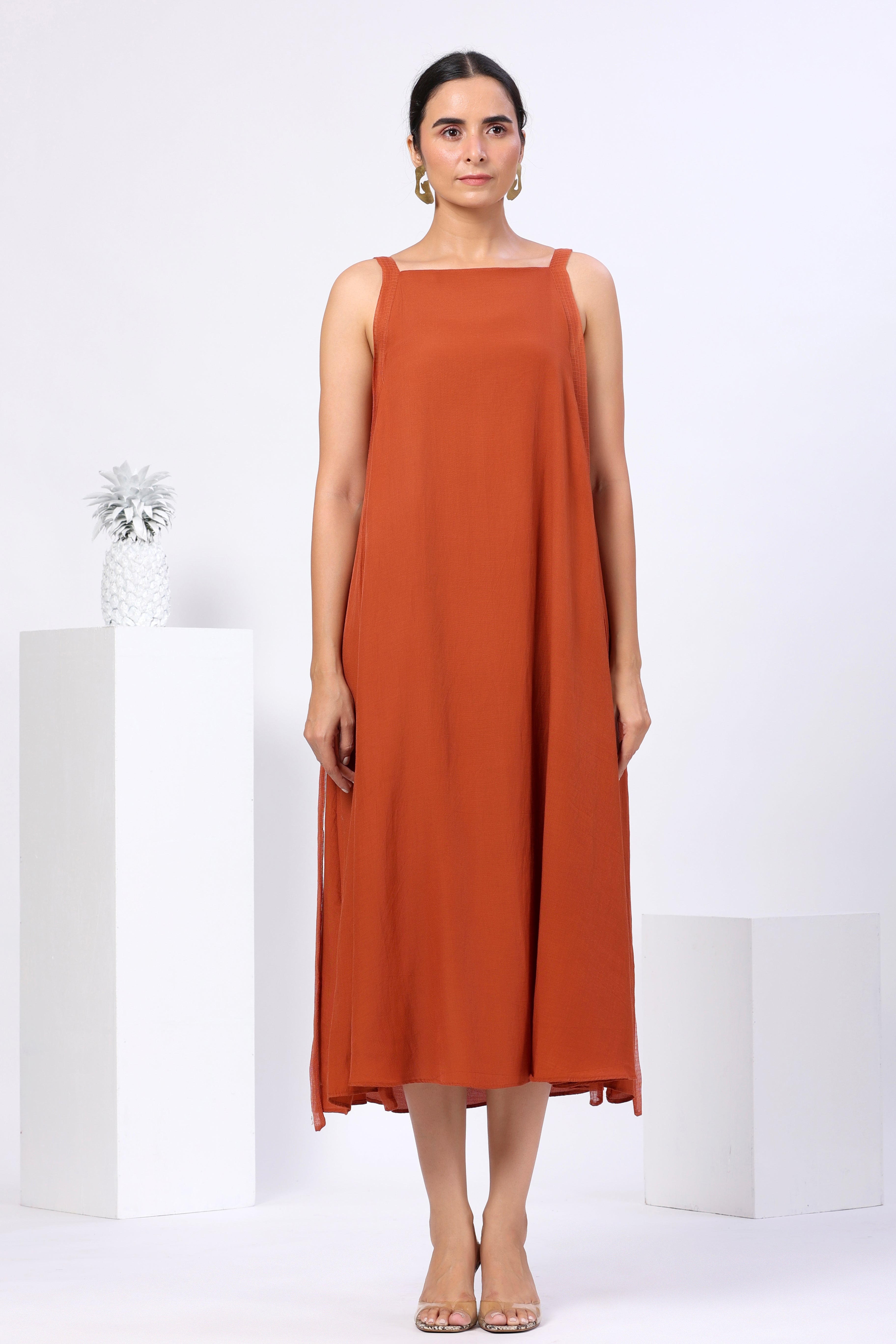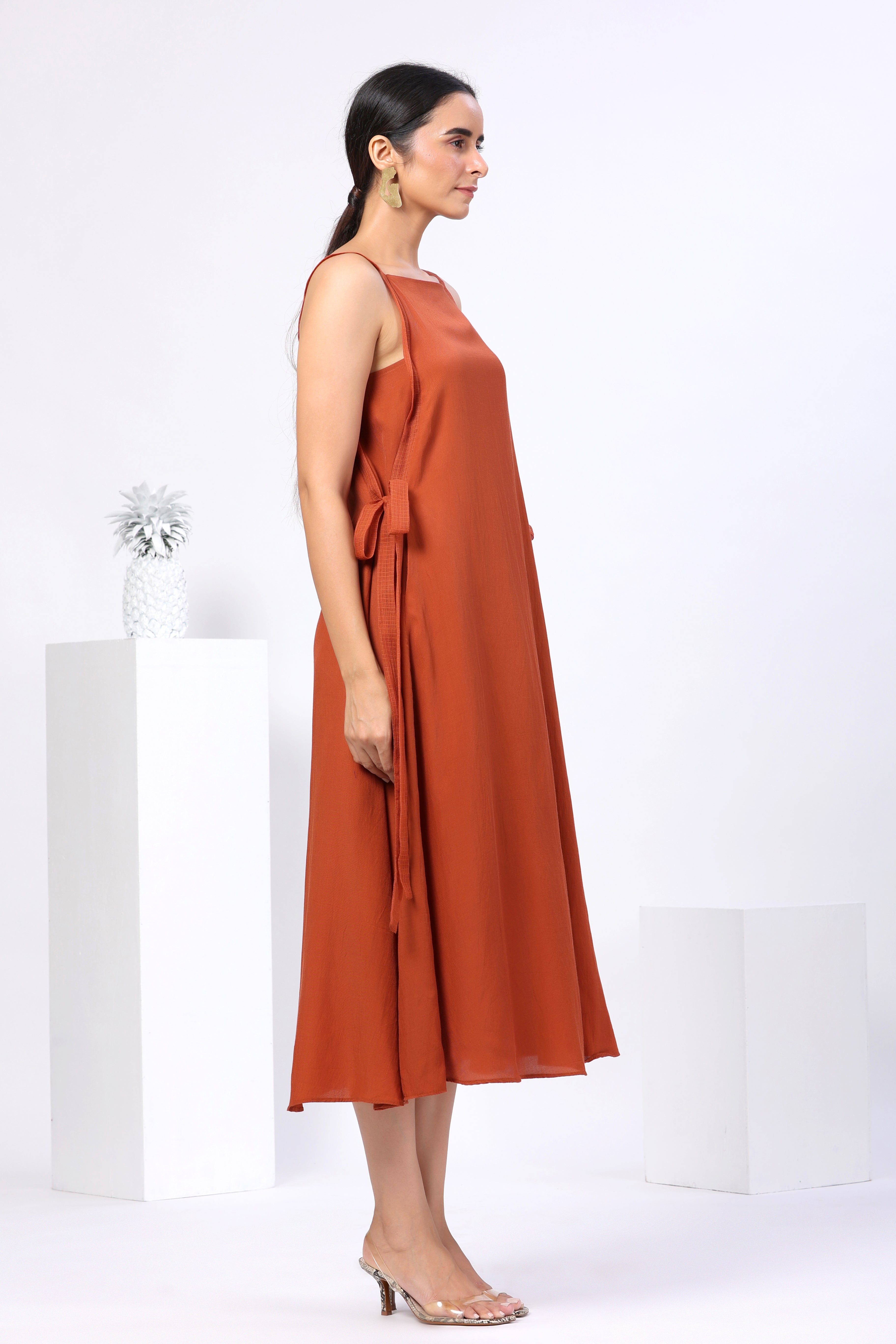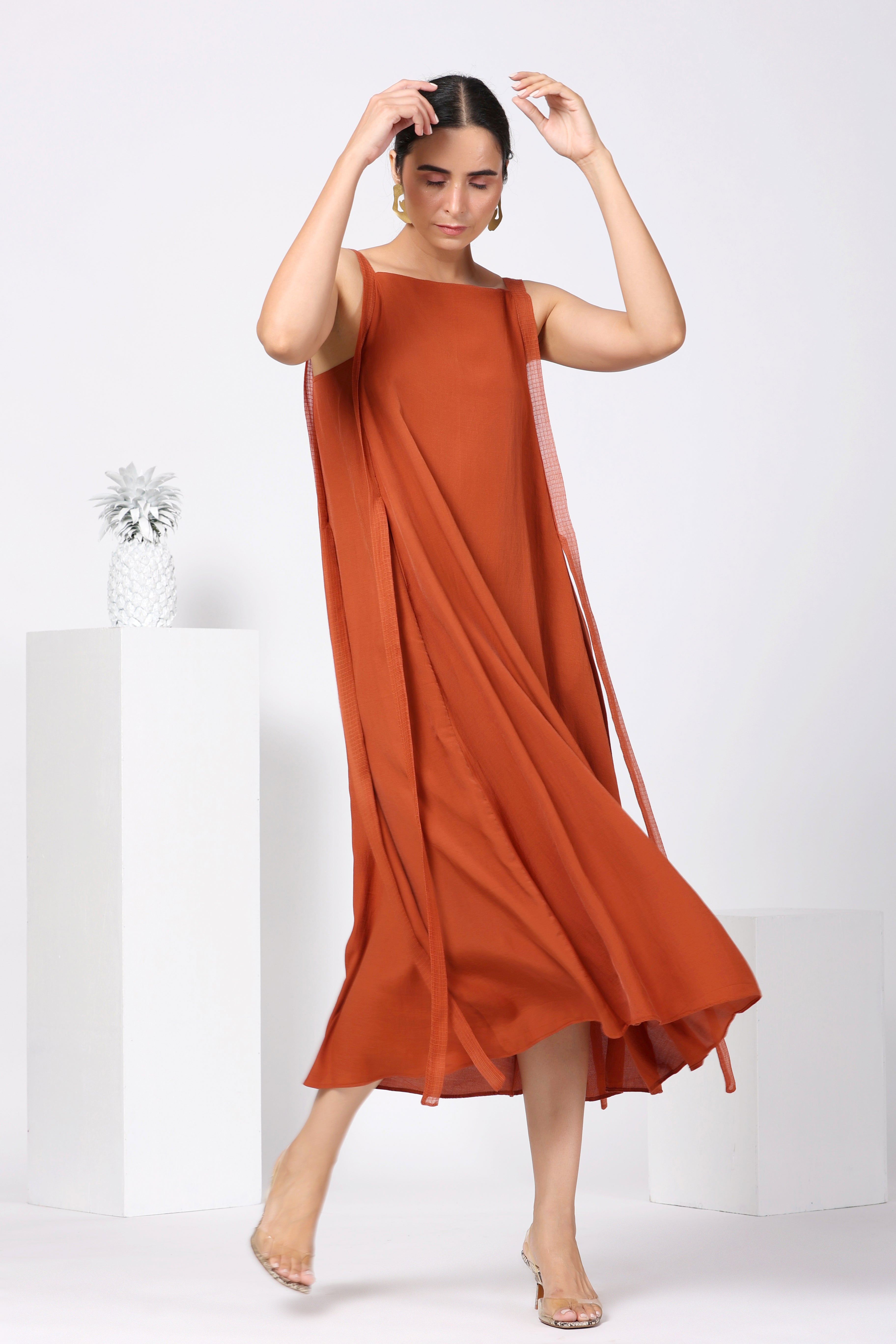 This Mid Calf Length Dress has extended Kota Doriya straps that can be tied up at the waist and has pockets on both sides.