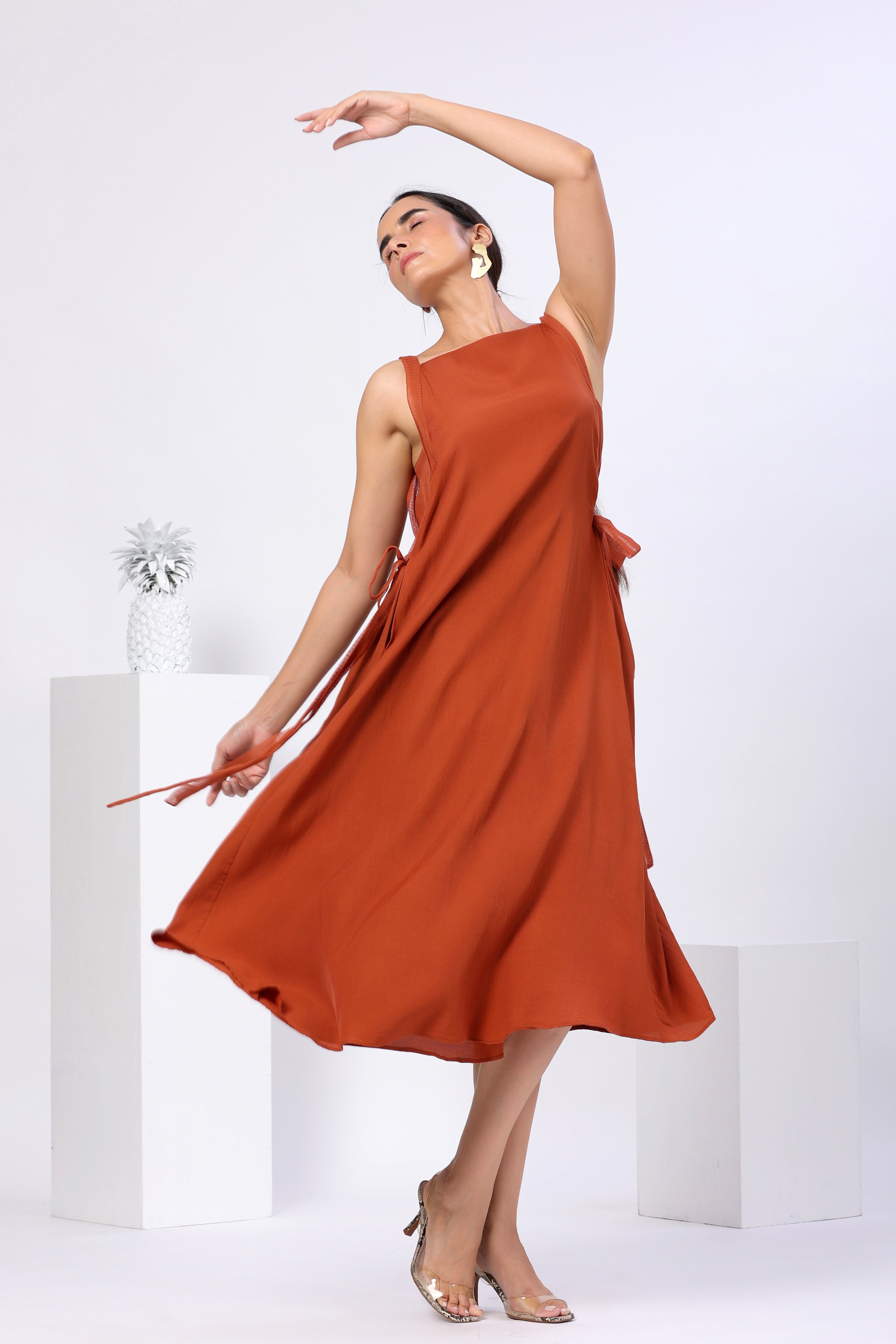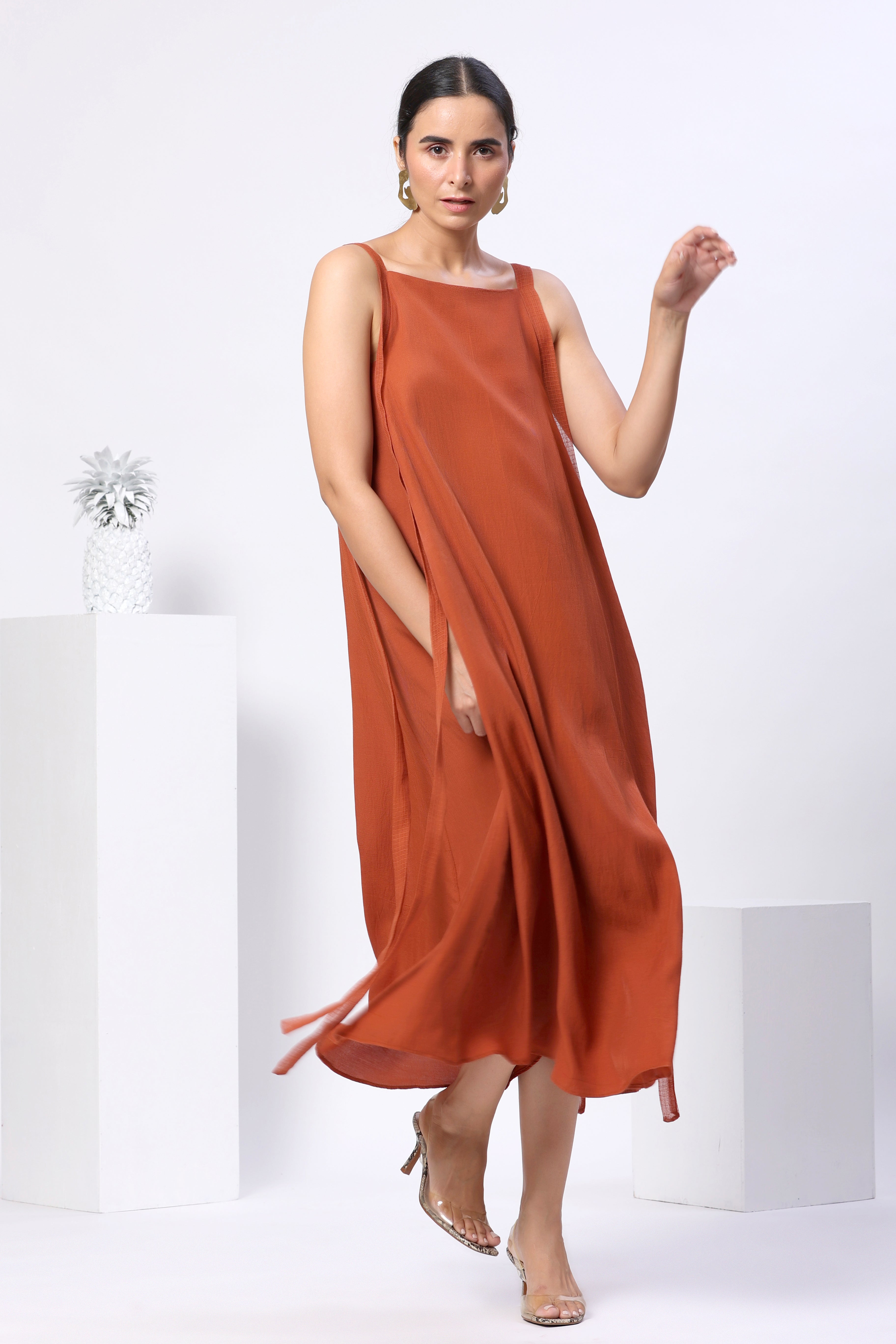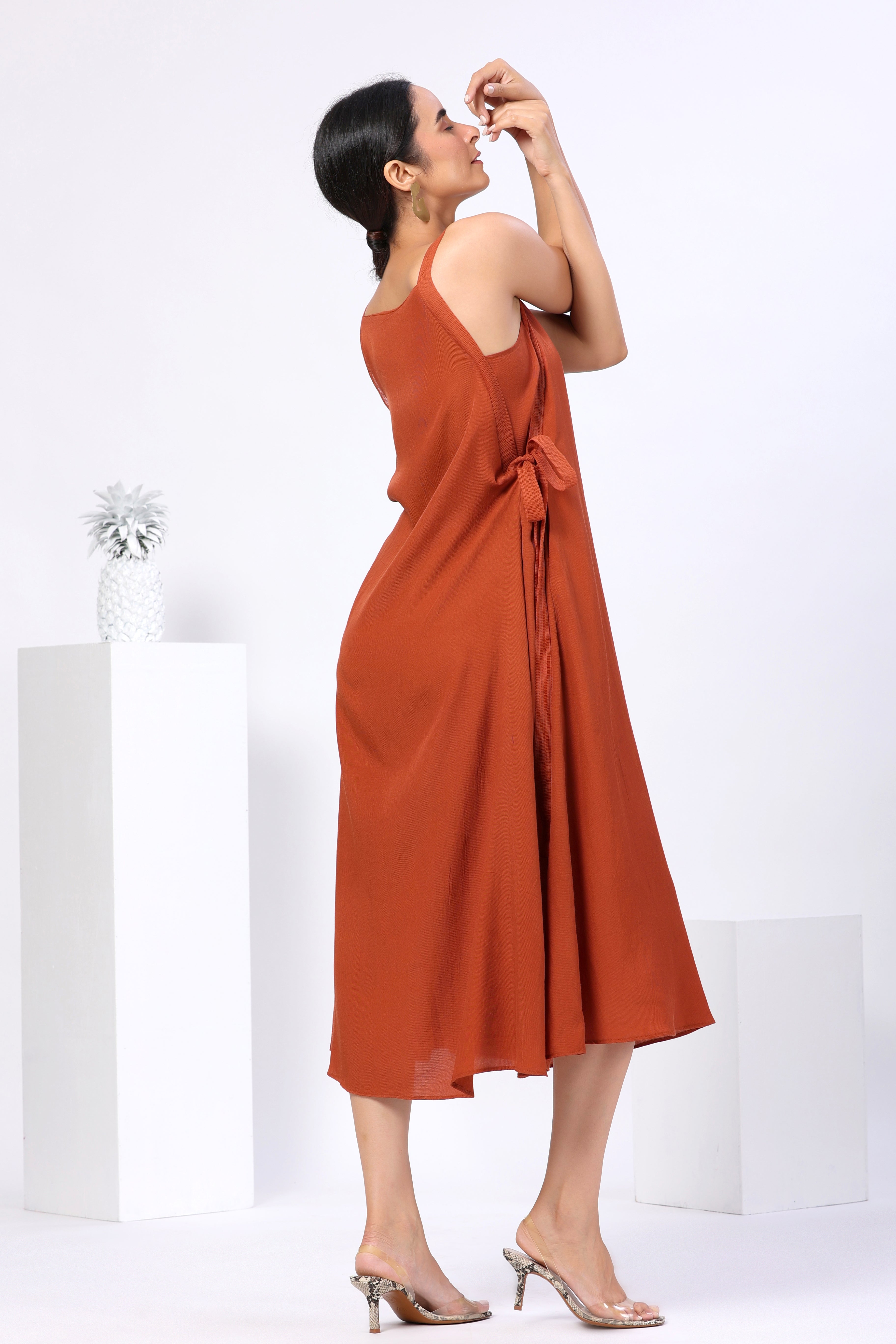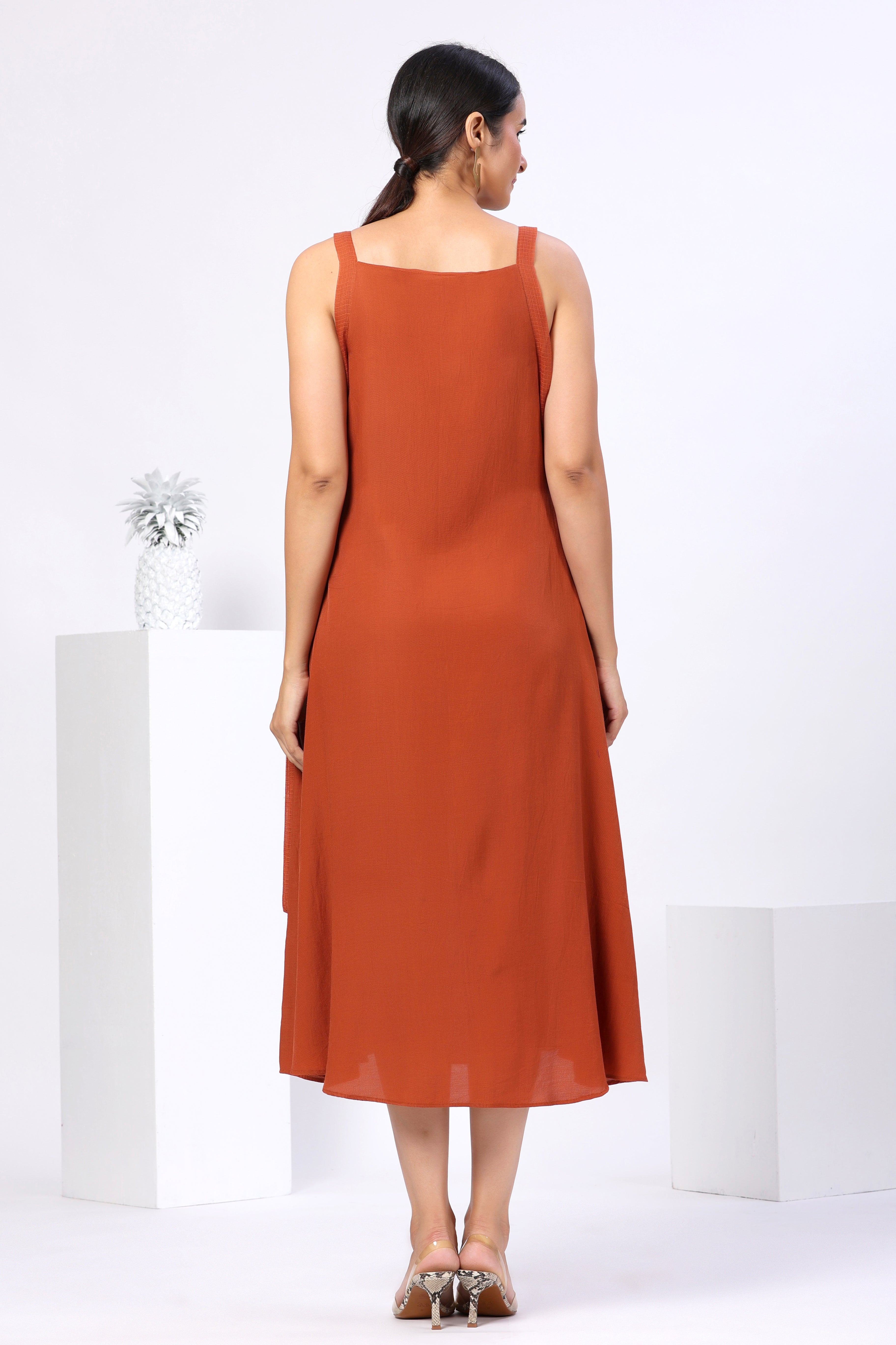This Mid Calf Length Dress has extended Kota Doriya straps that can be tied up at the waist and has pockets on both sides.