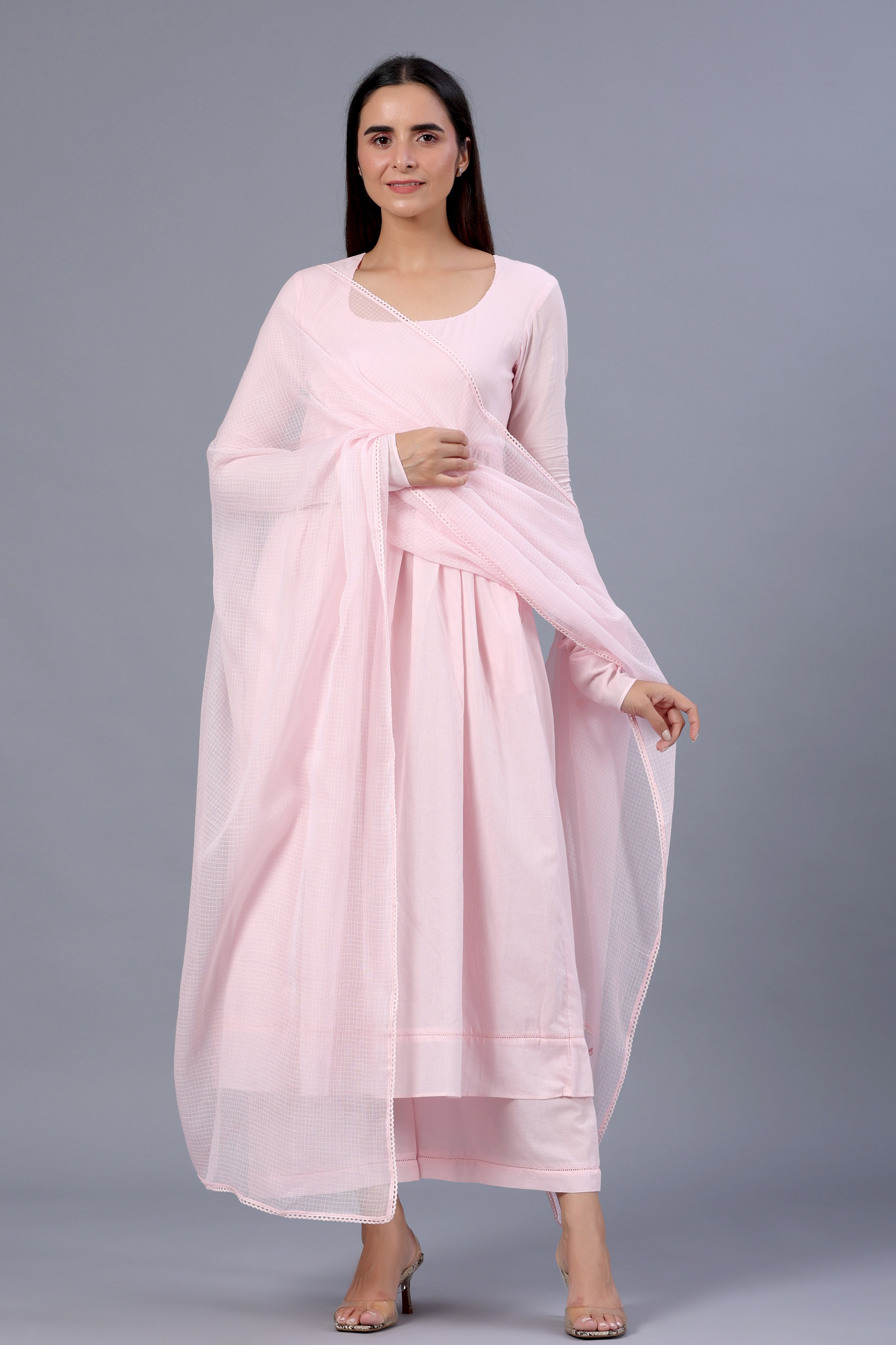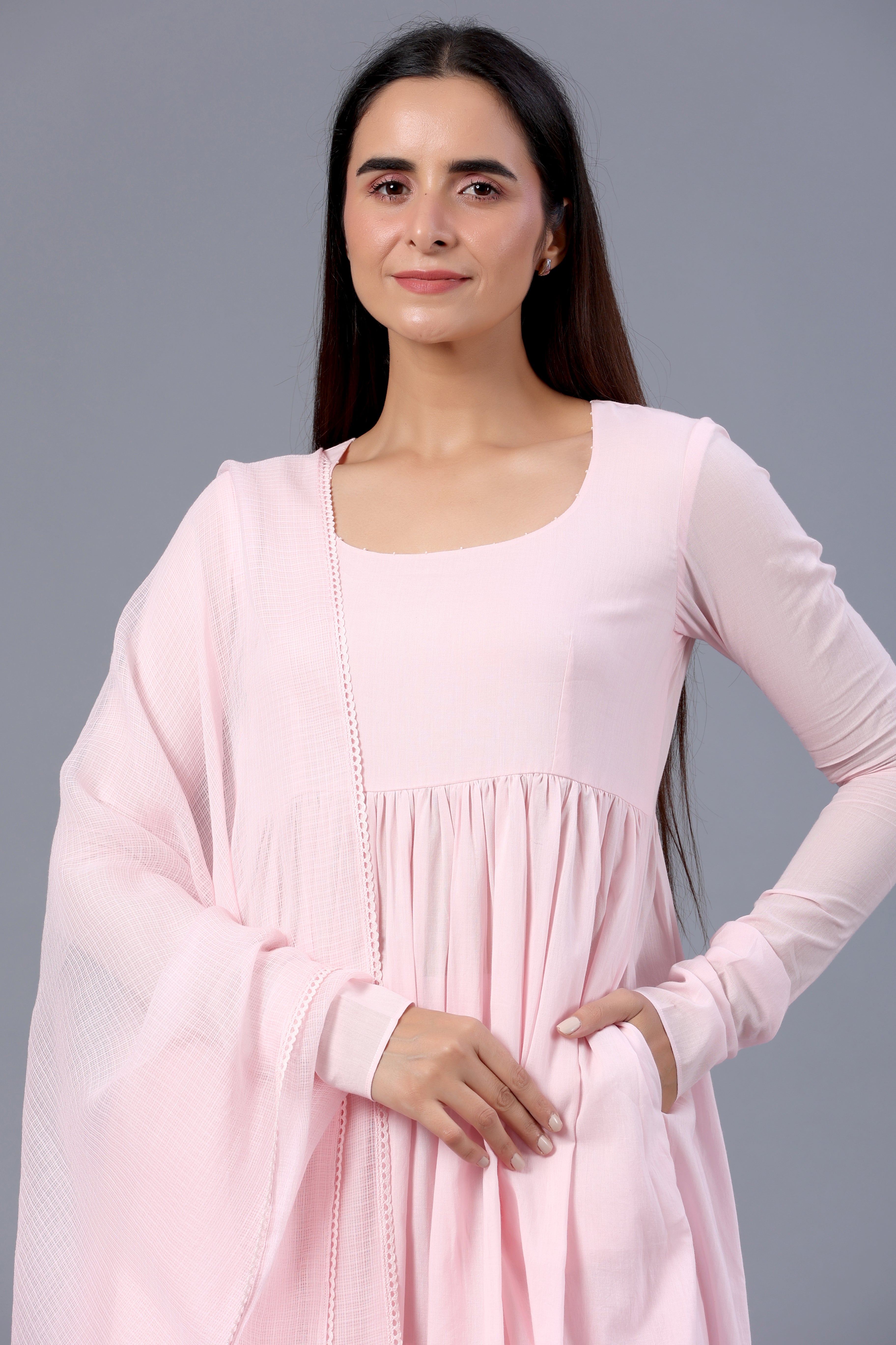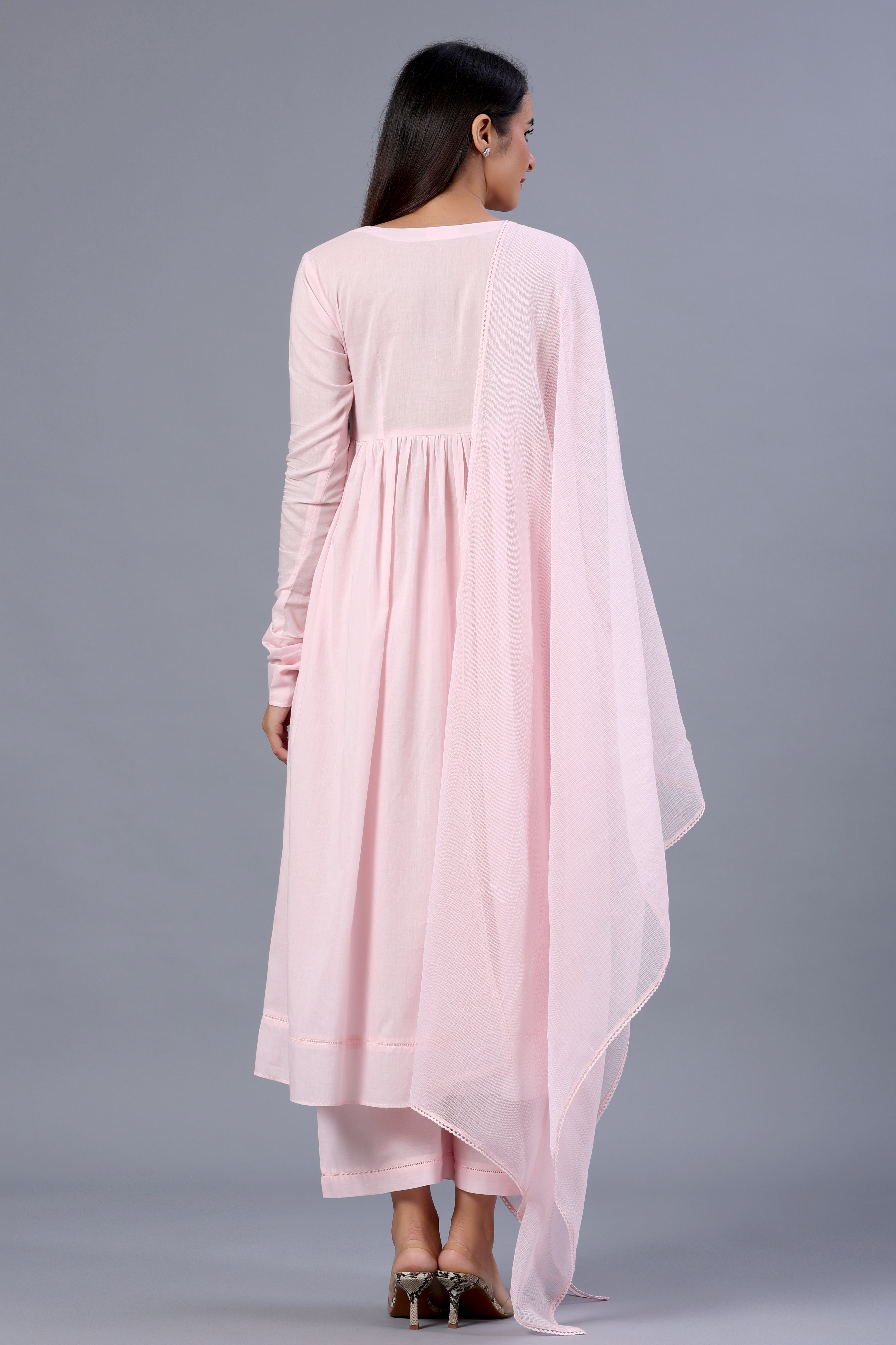 Baby Pink Full Sleeves Suit Set with Doria Dupatta