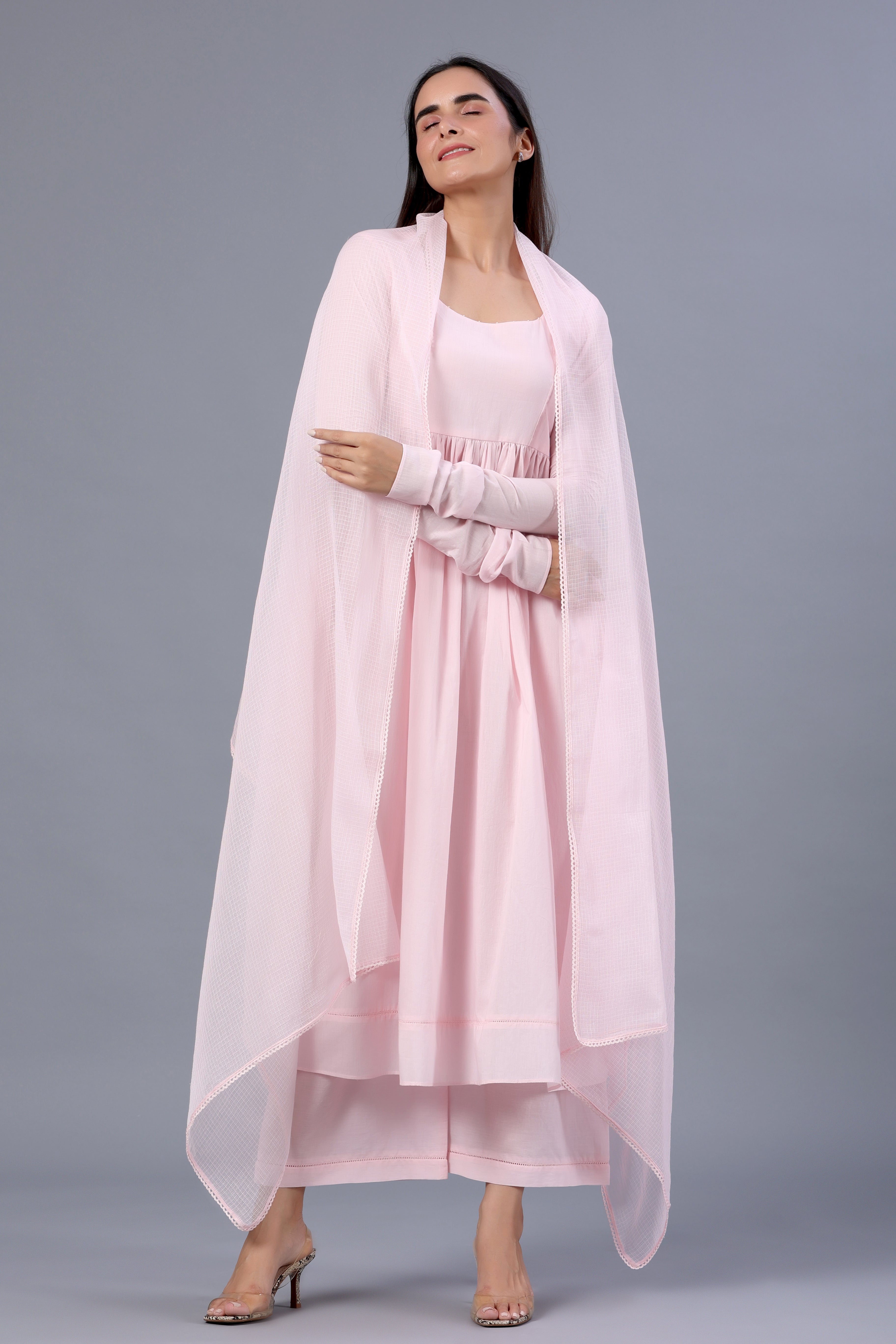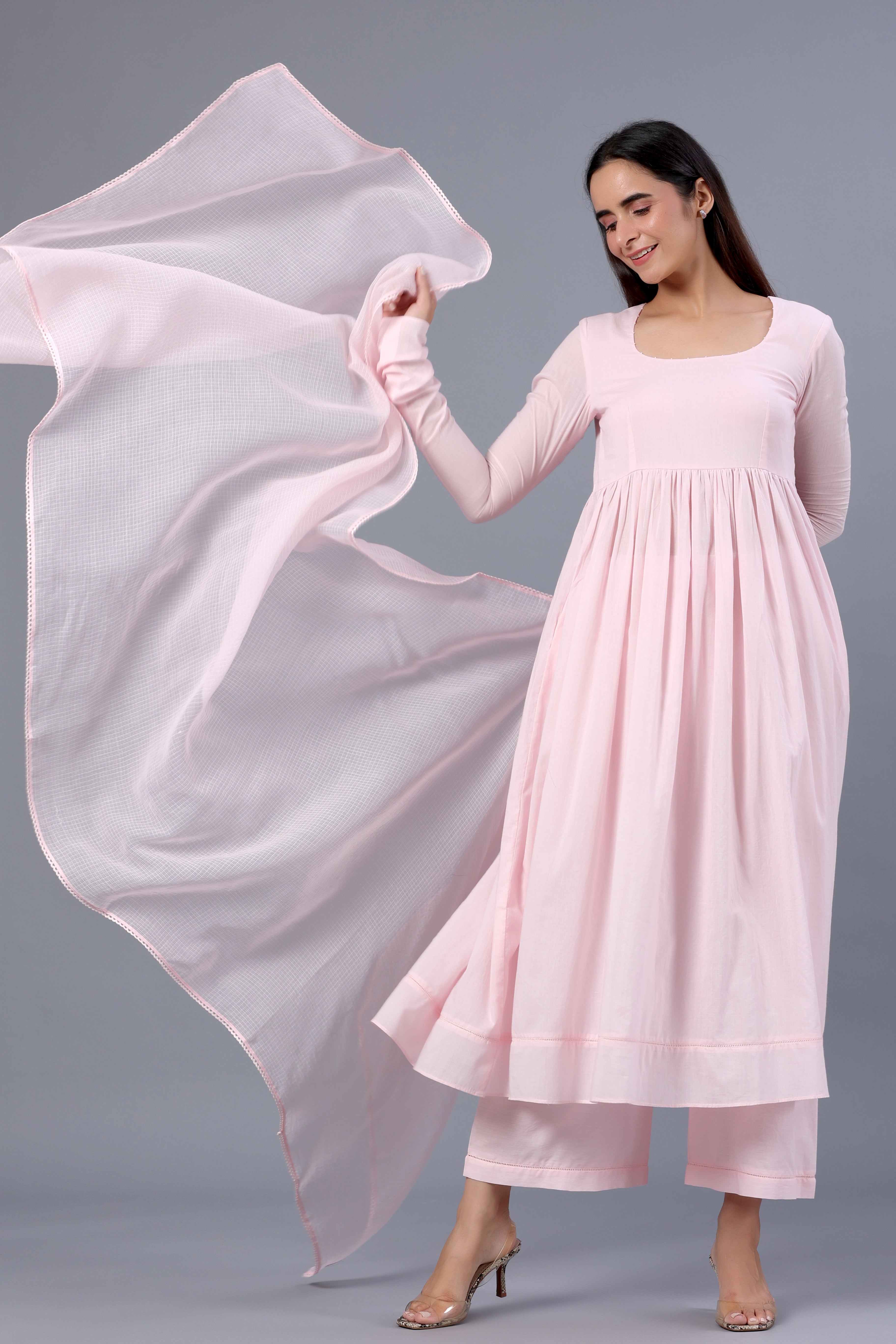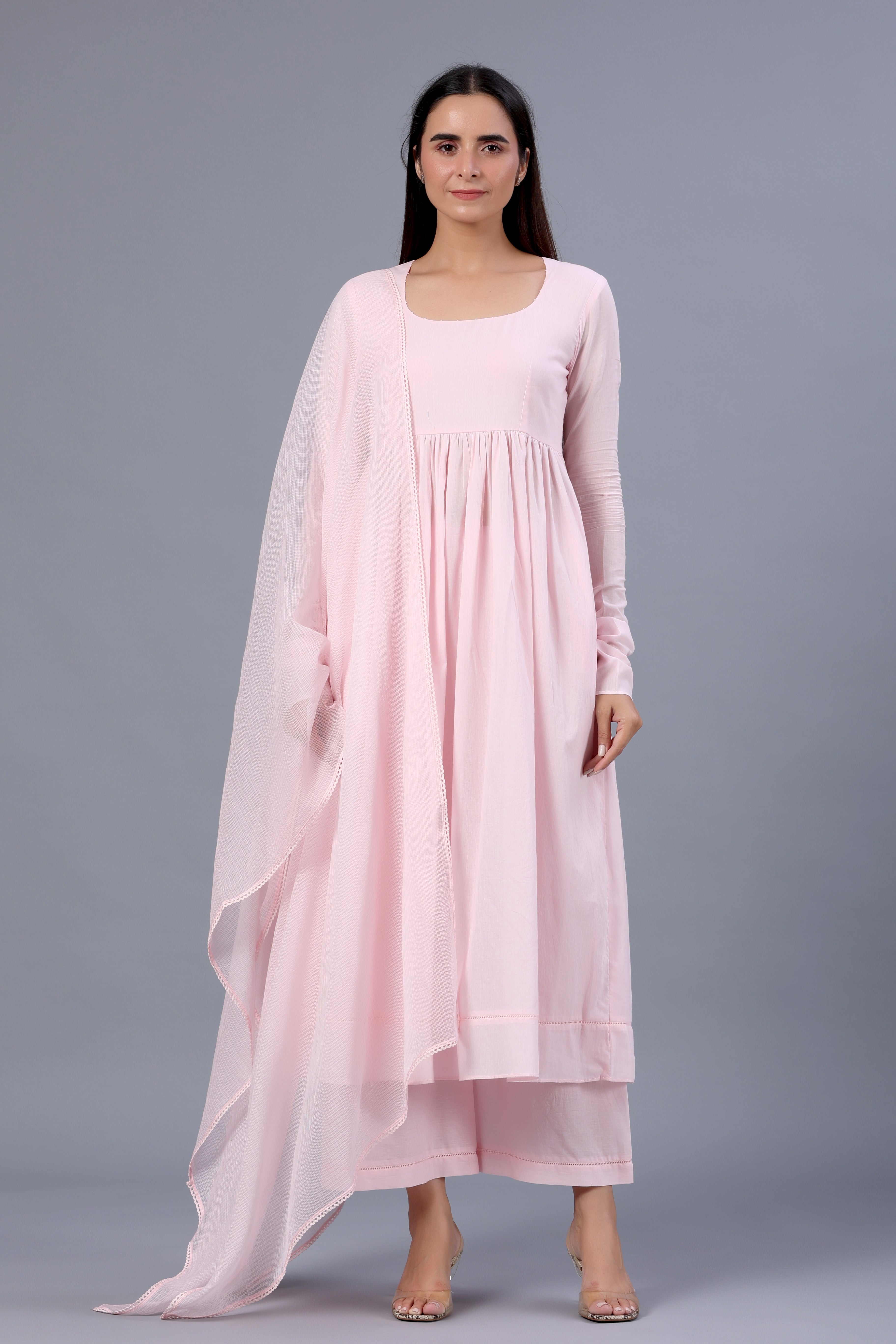 Baby Pink Full Sleeves Suit Set with Doria Dupatta