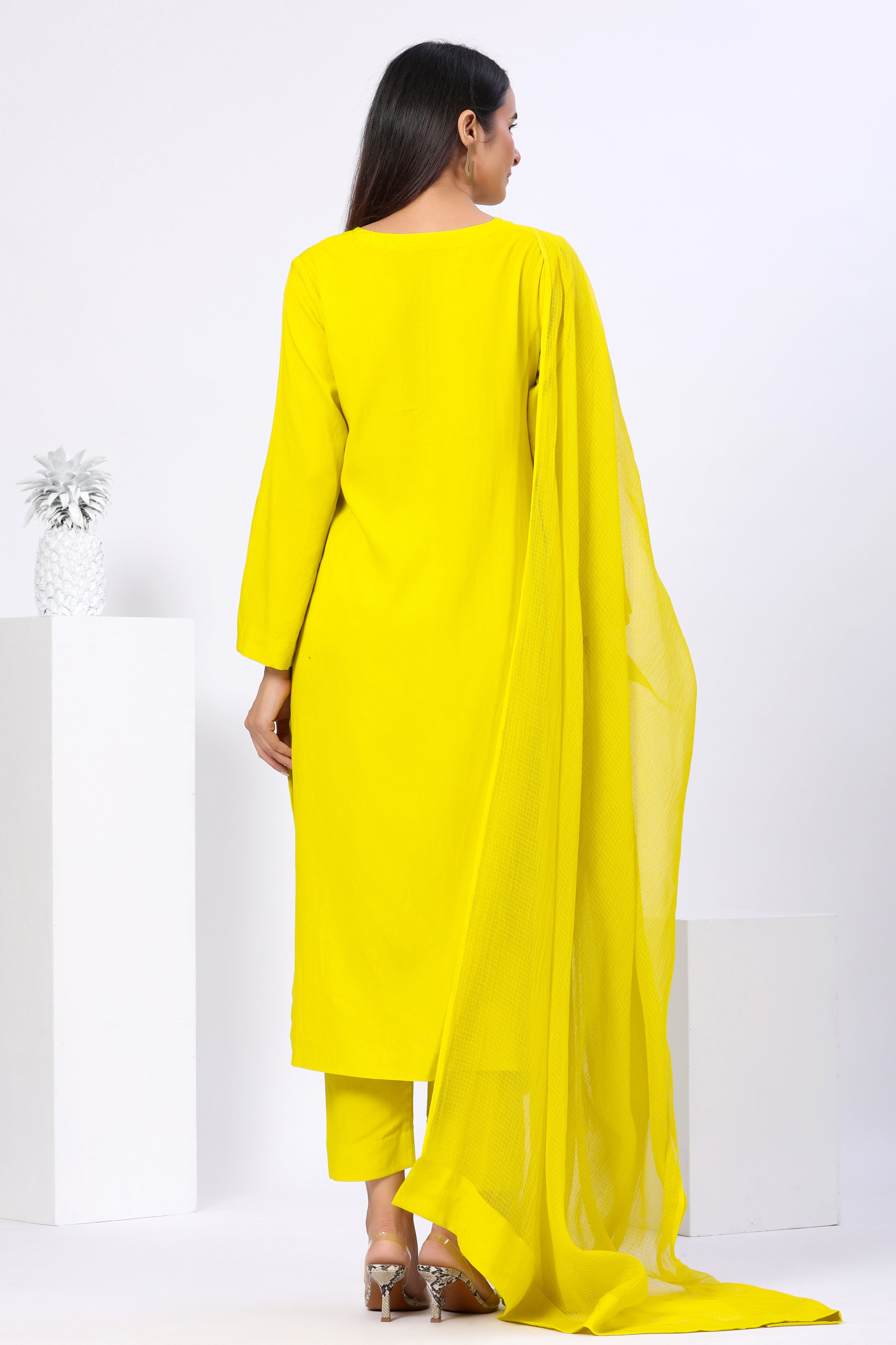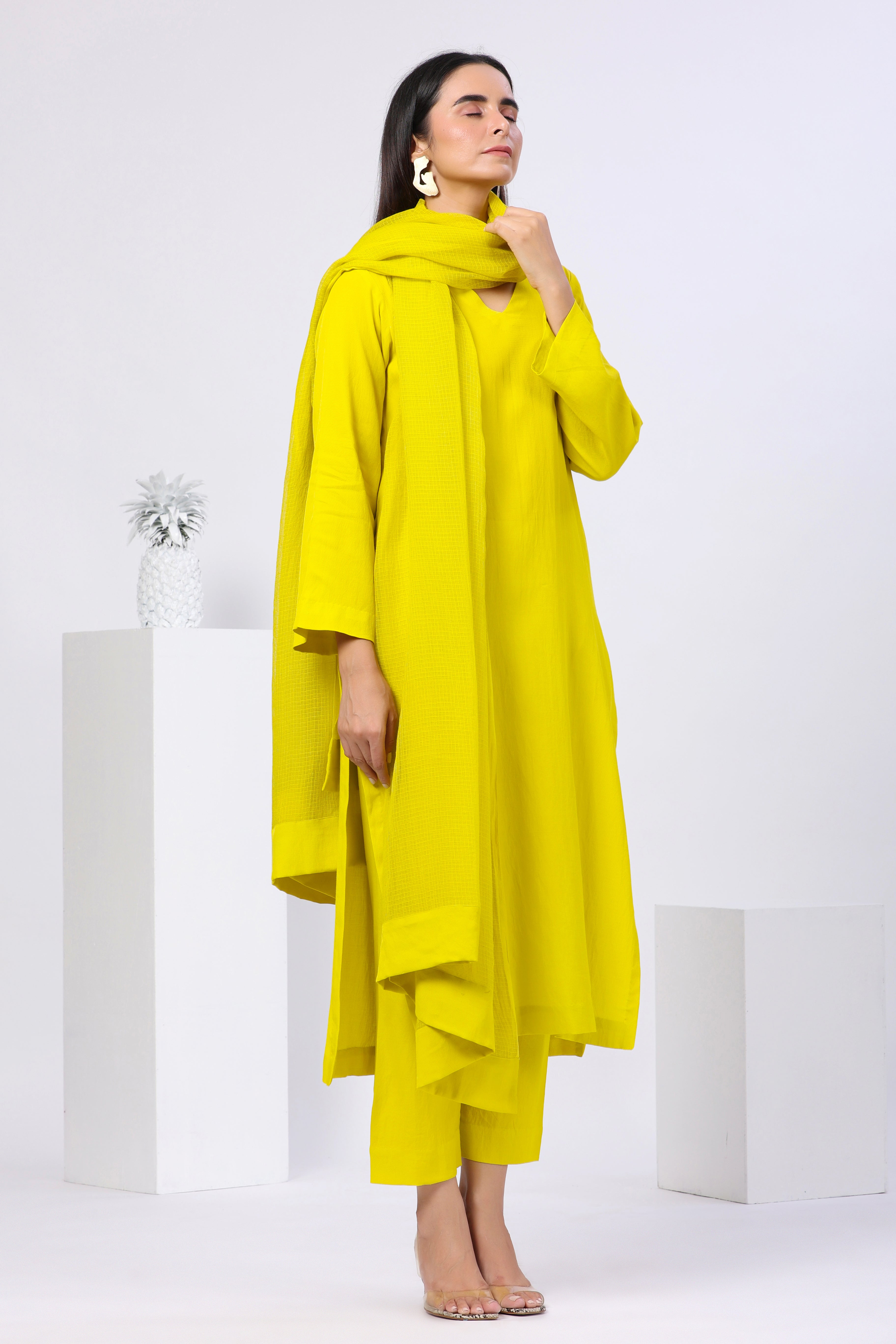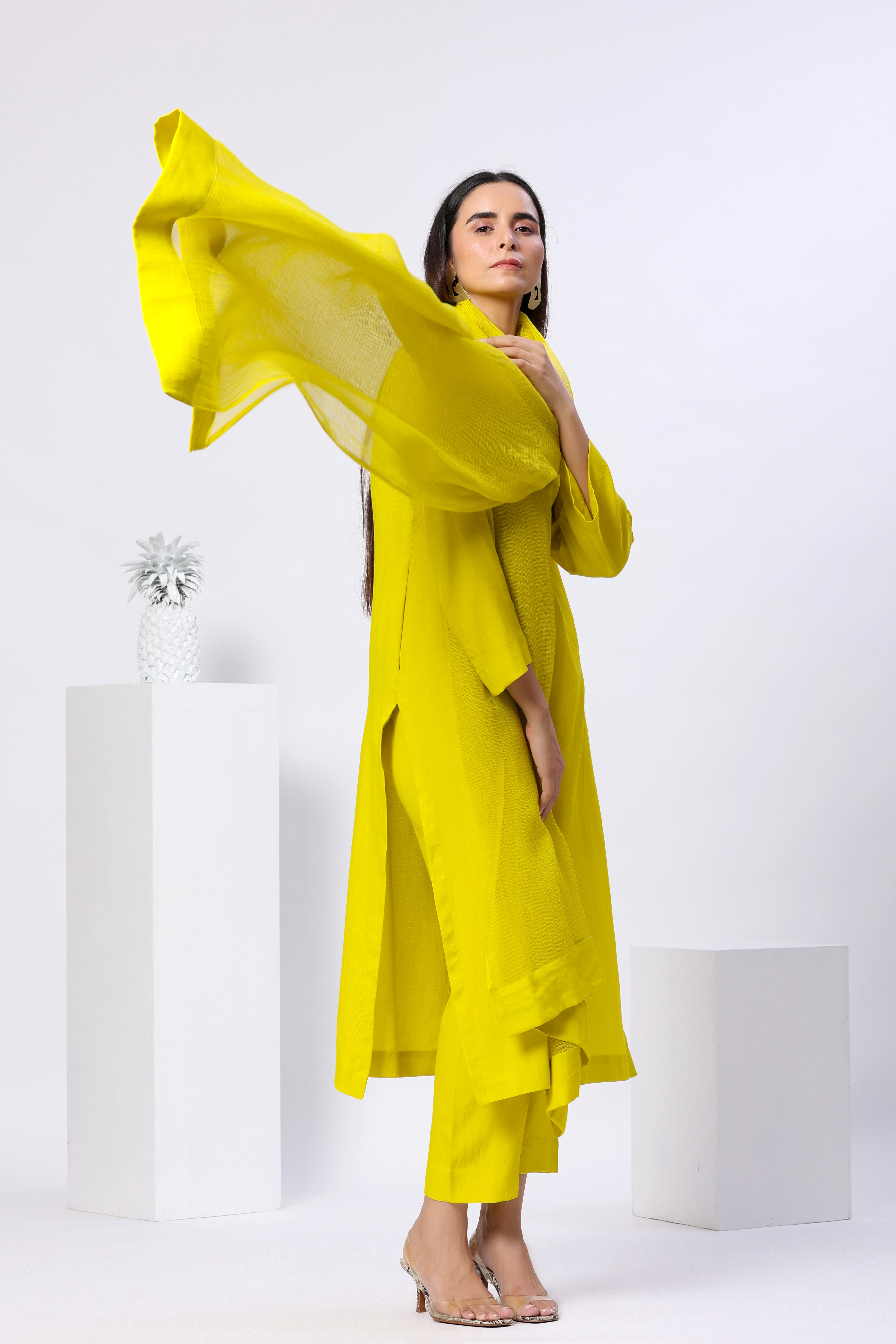 - Straight Fit Kurta with V Neckline, full sleeves and pockets on both sides.