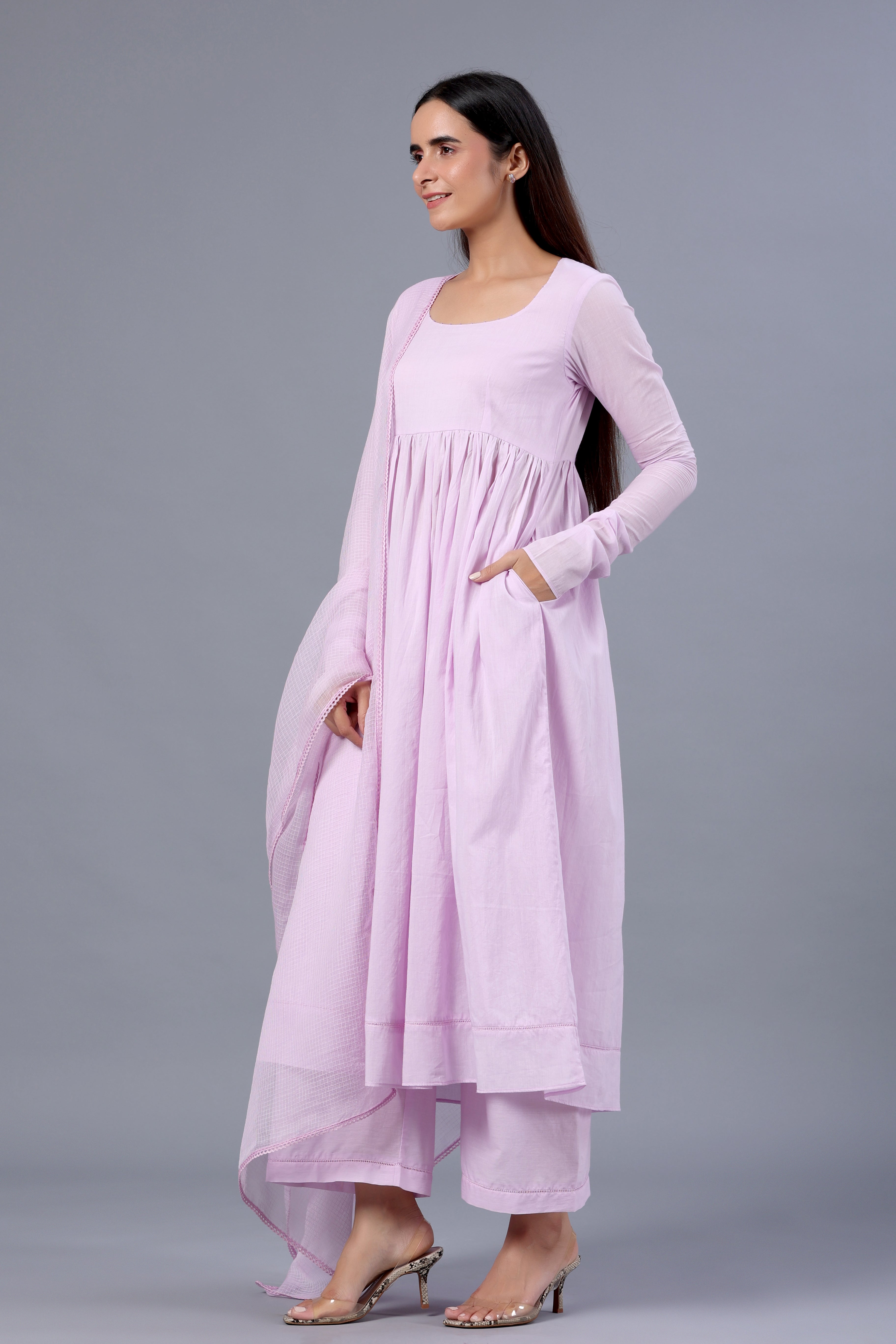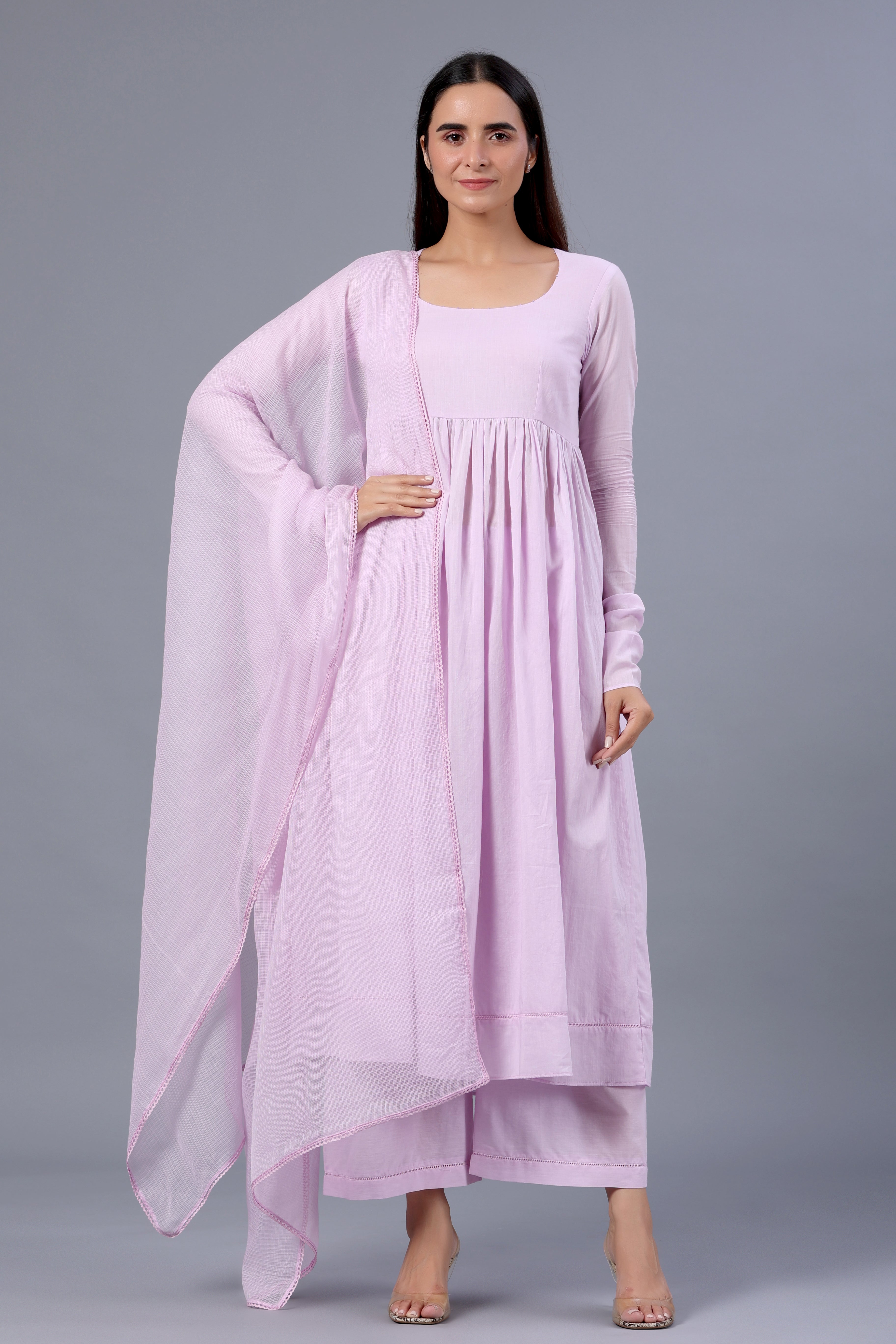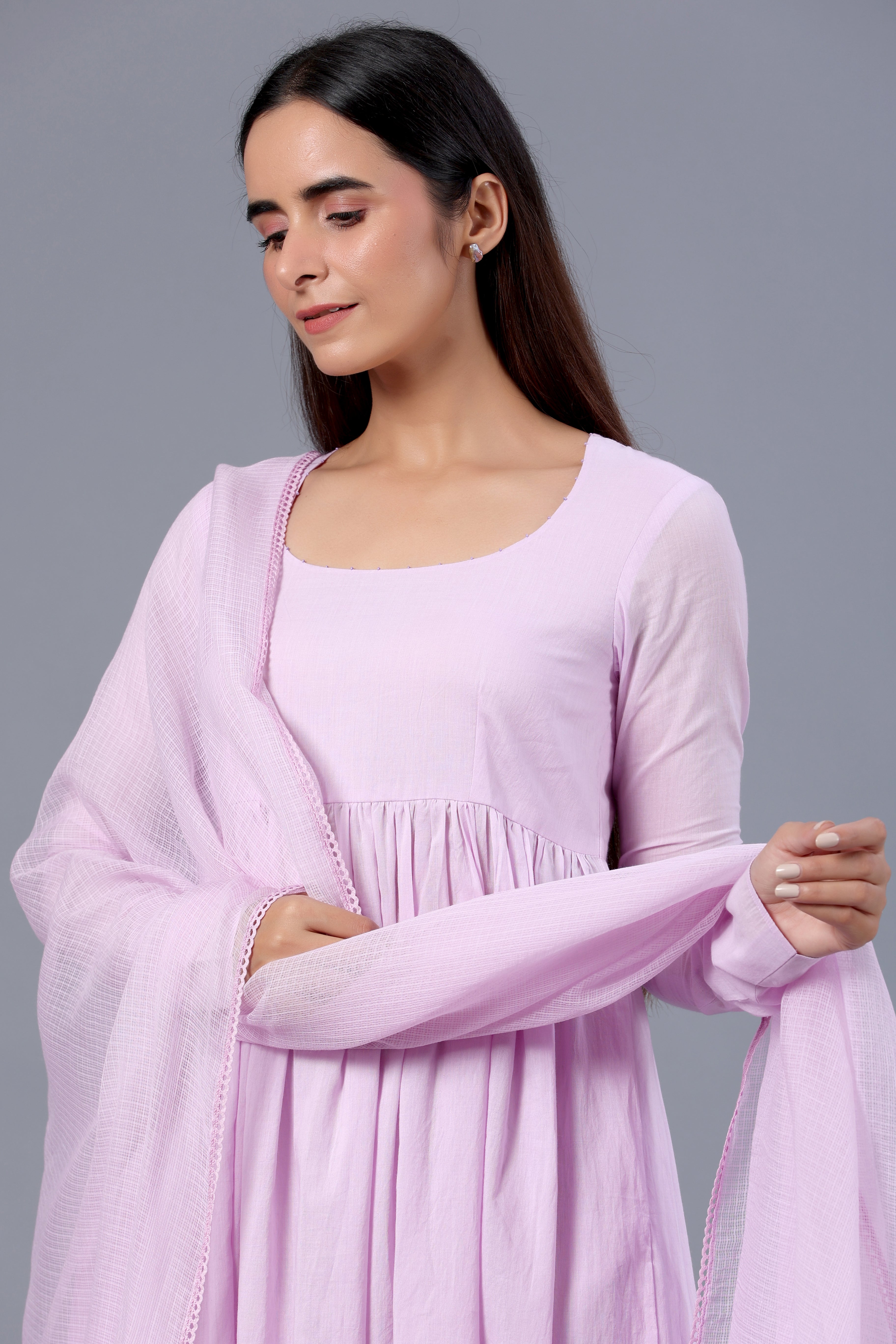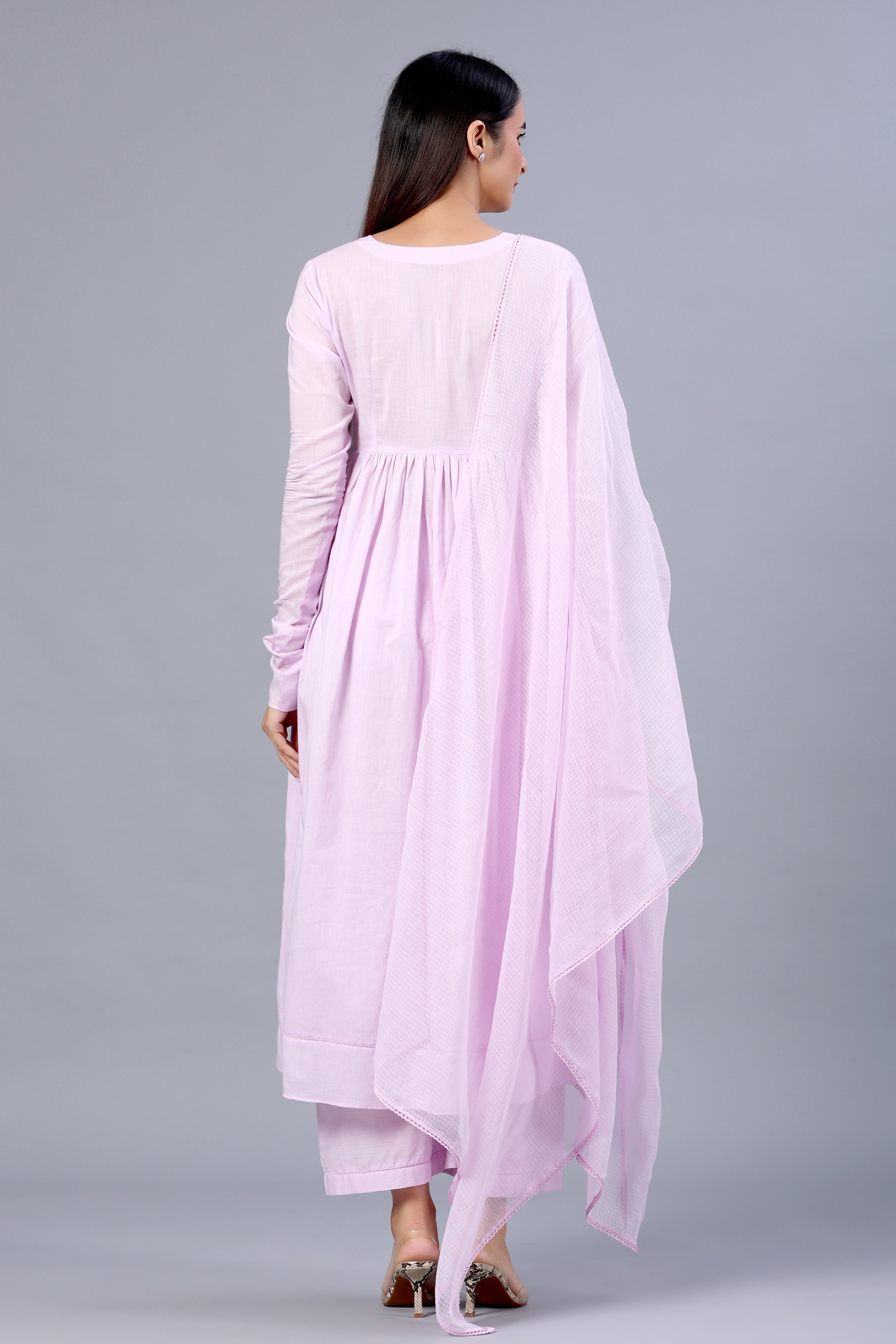 Lilac Full Sleeves Suit Set with Doria Dupatta