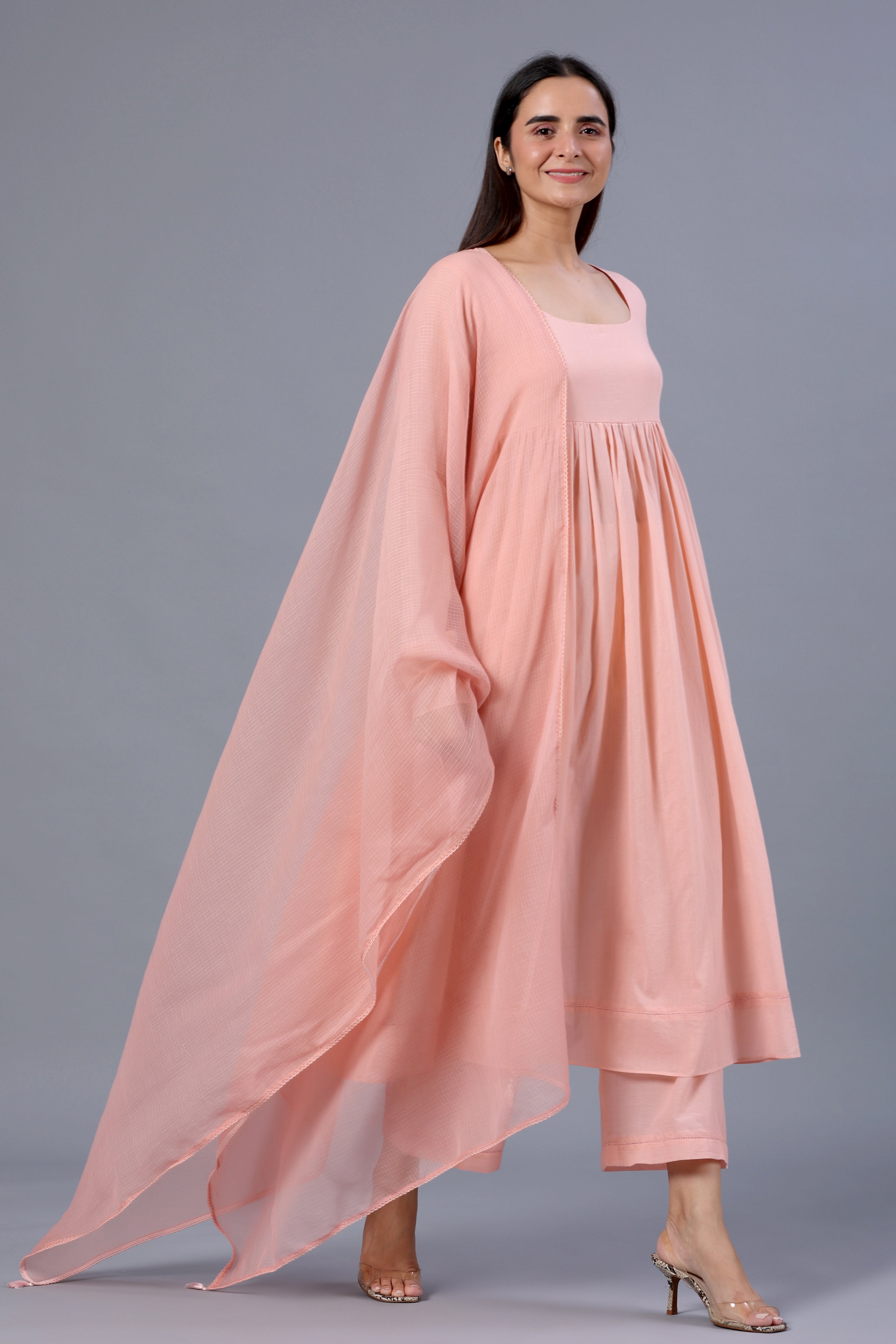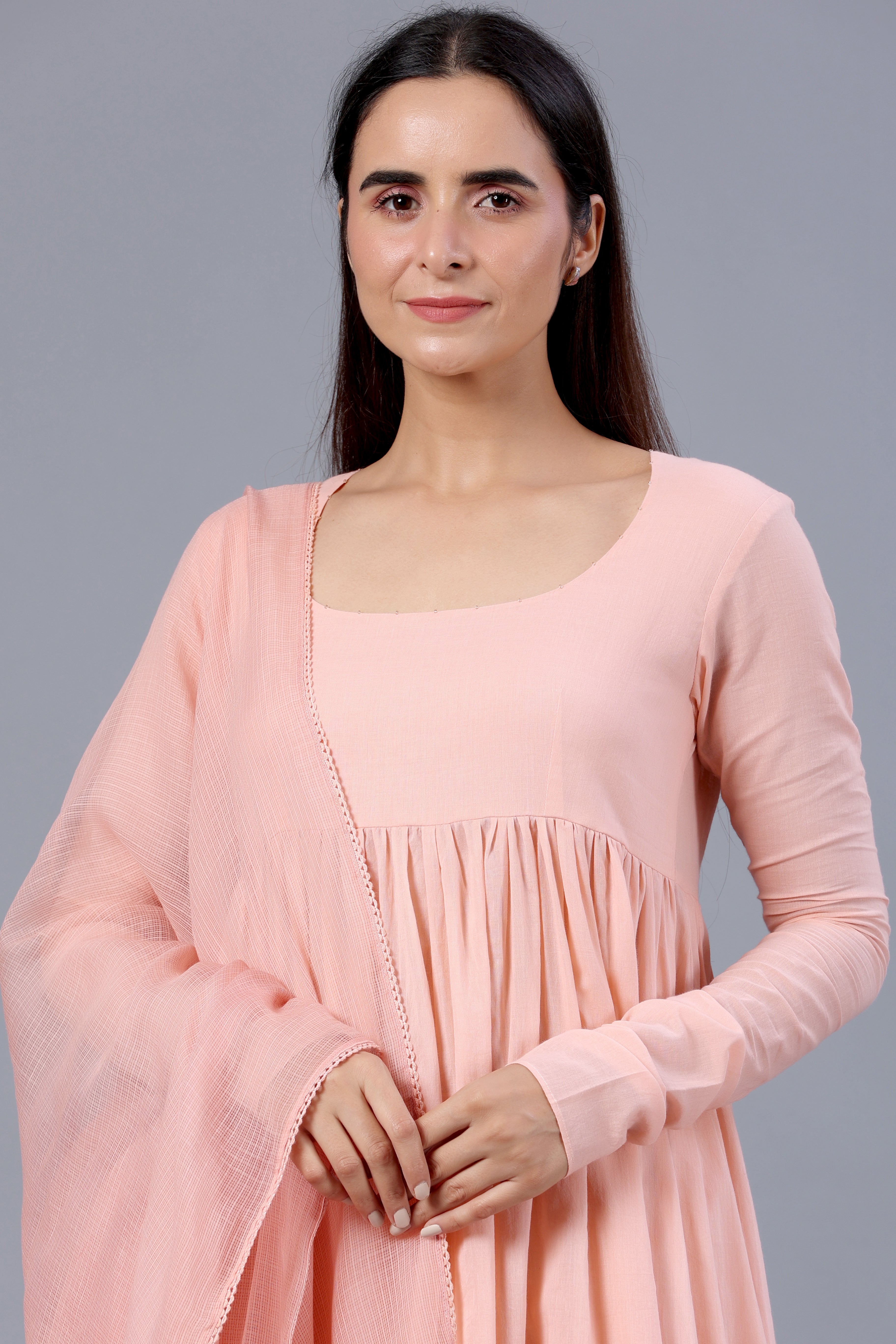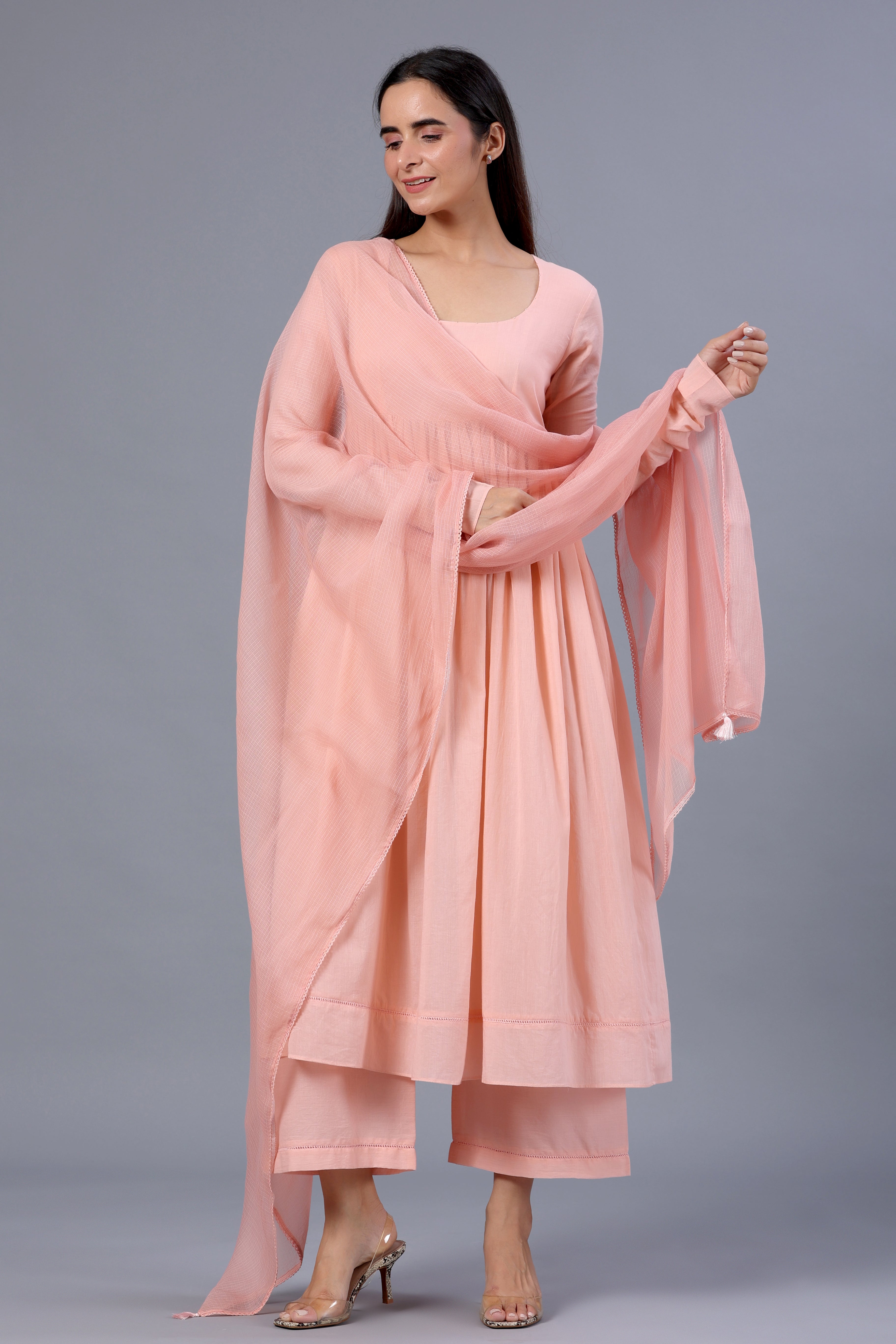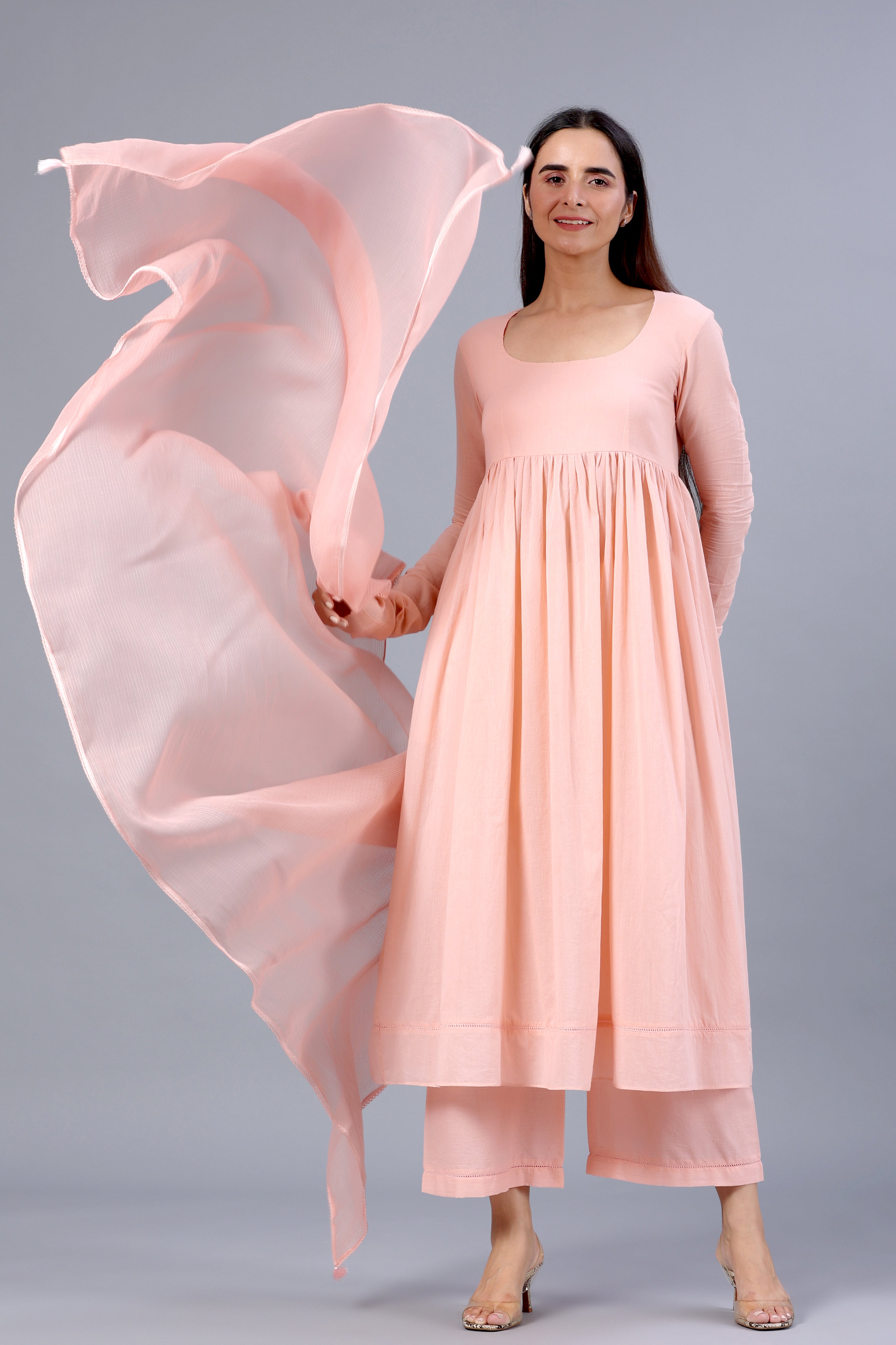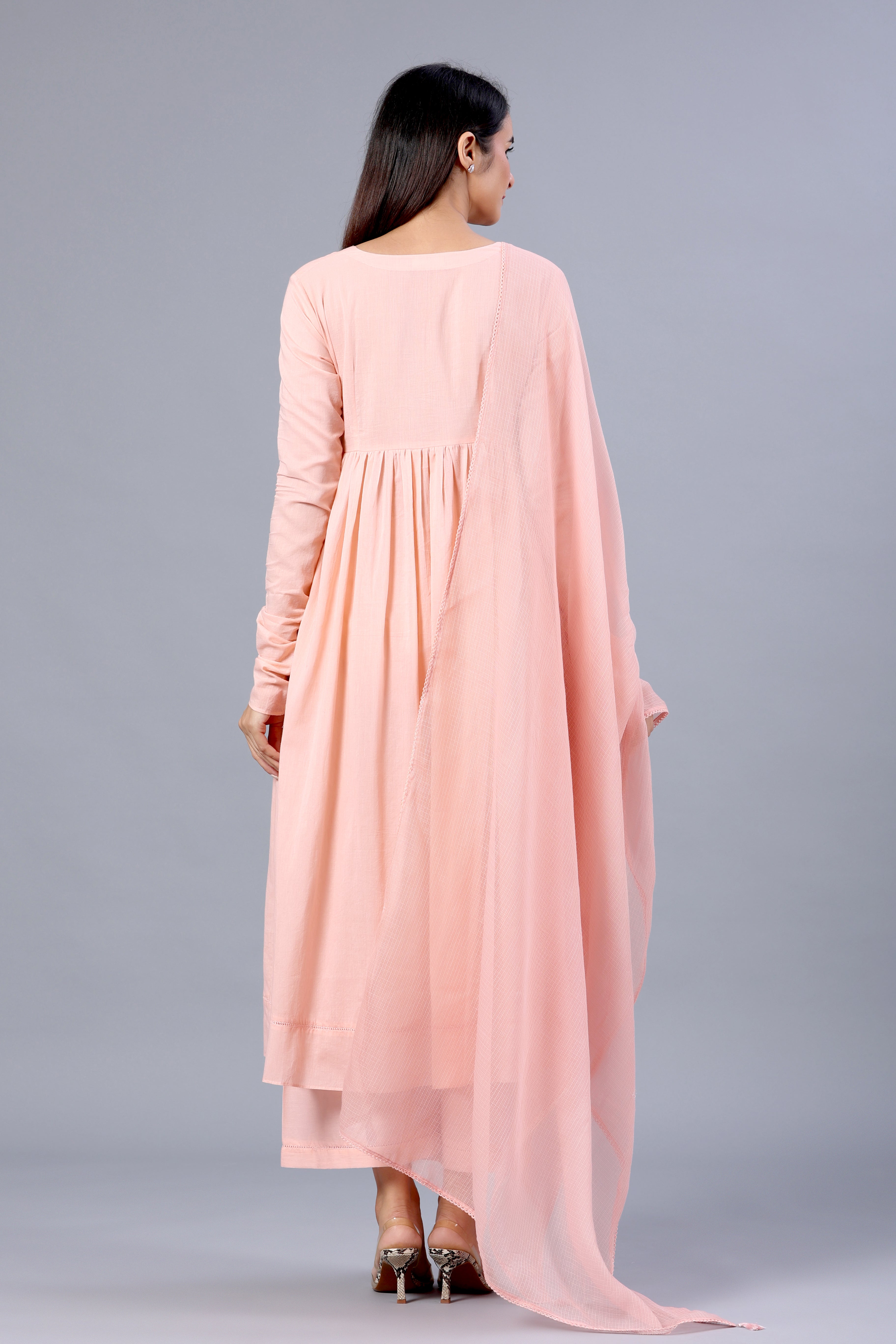 Peach Full Sleeves Suit Set with Doriya Dupatta