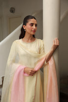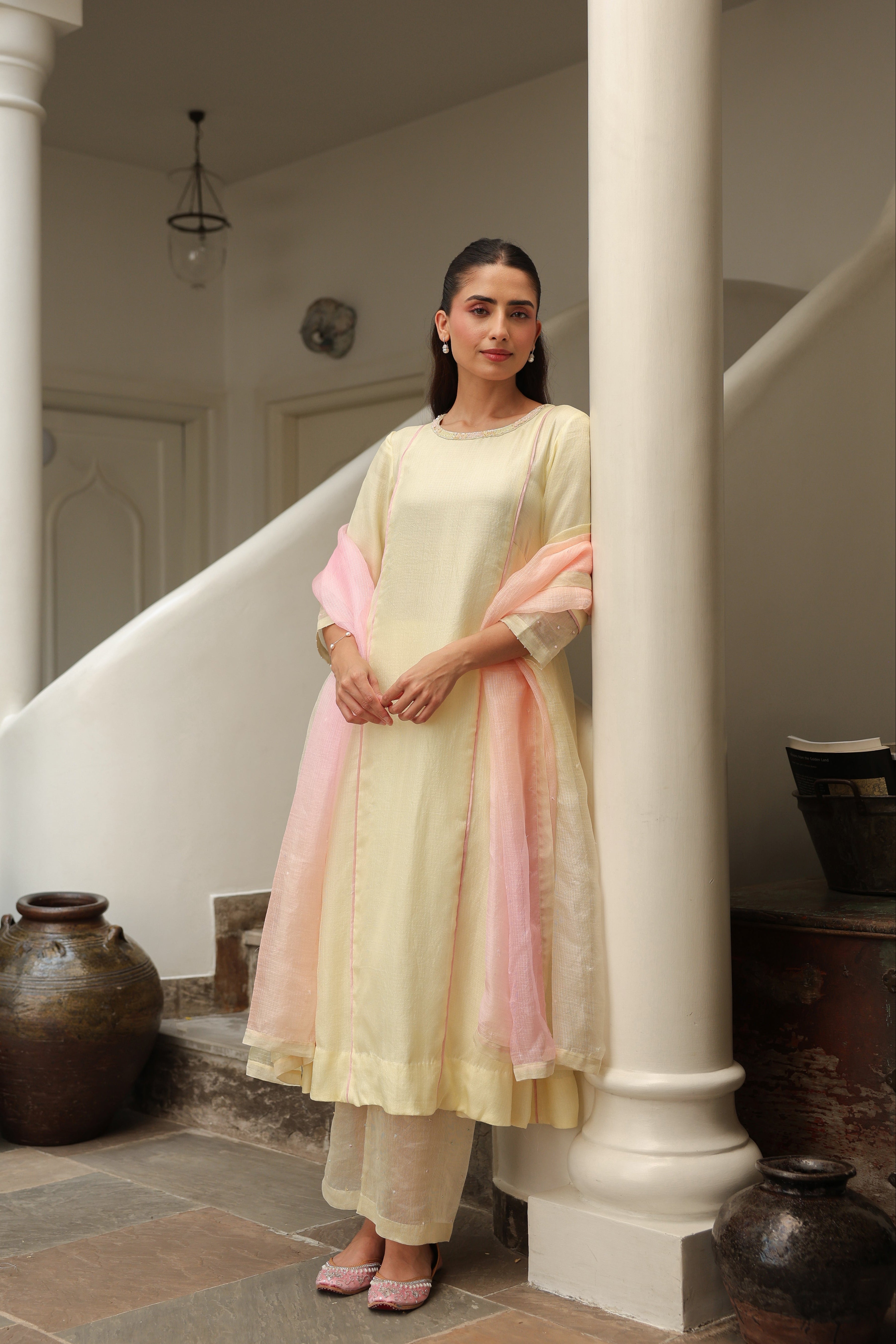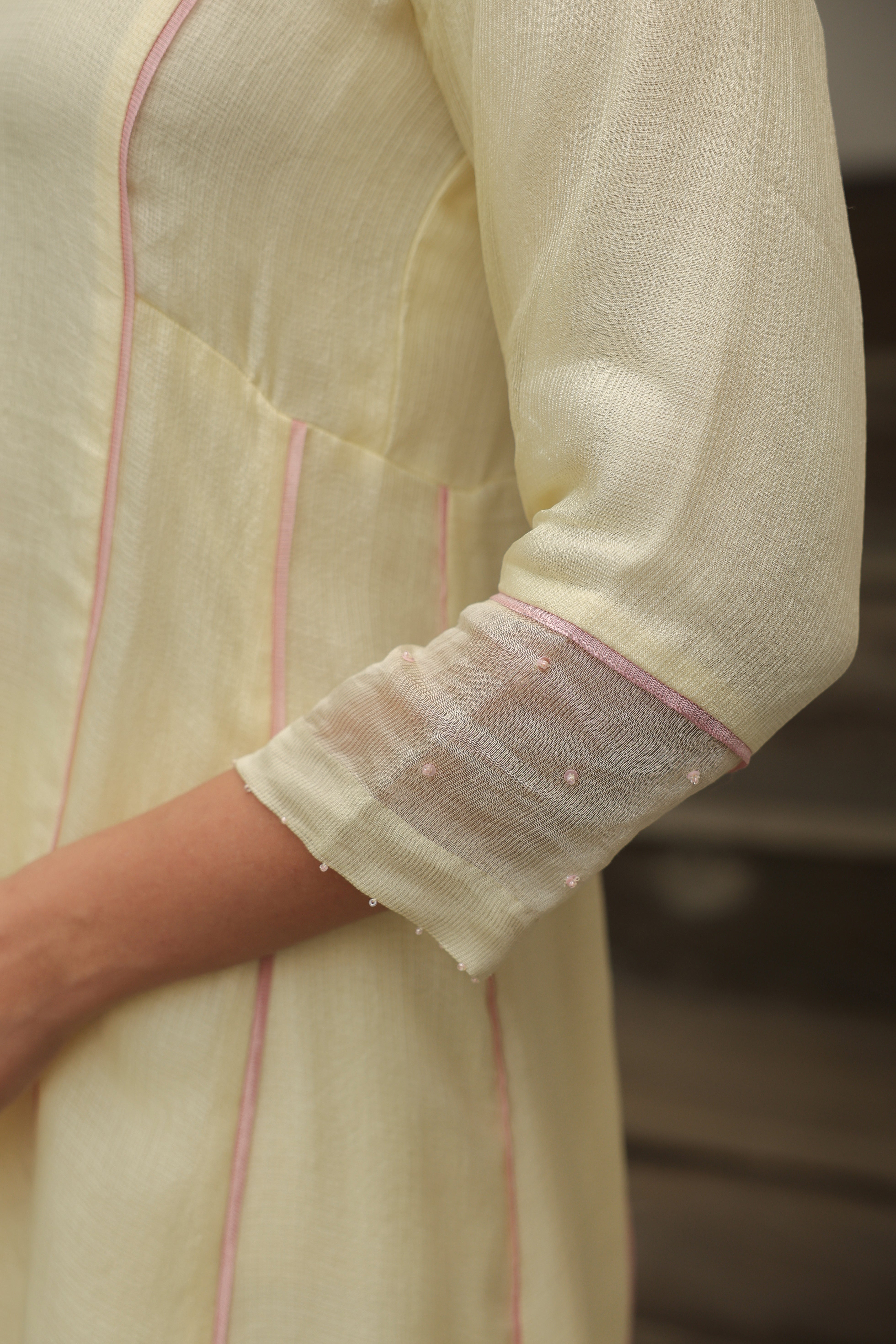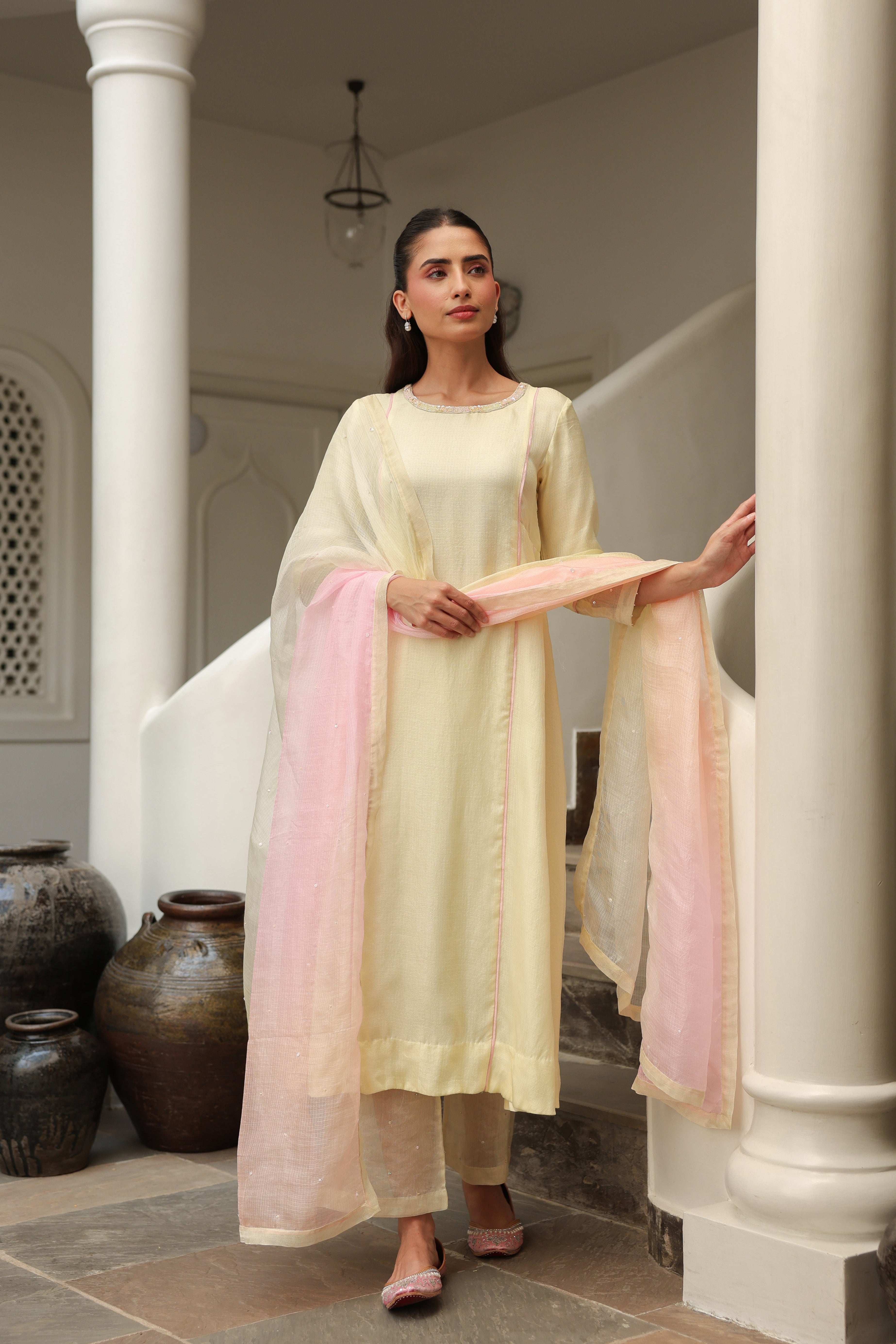 - Narrow bottom Pants with chanderi panel around leg opening.