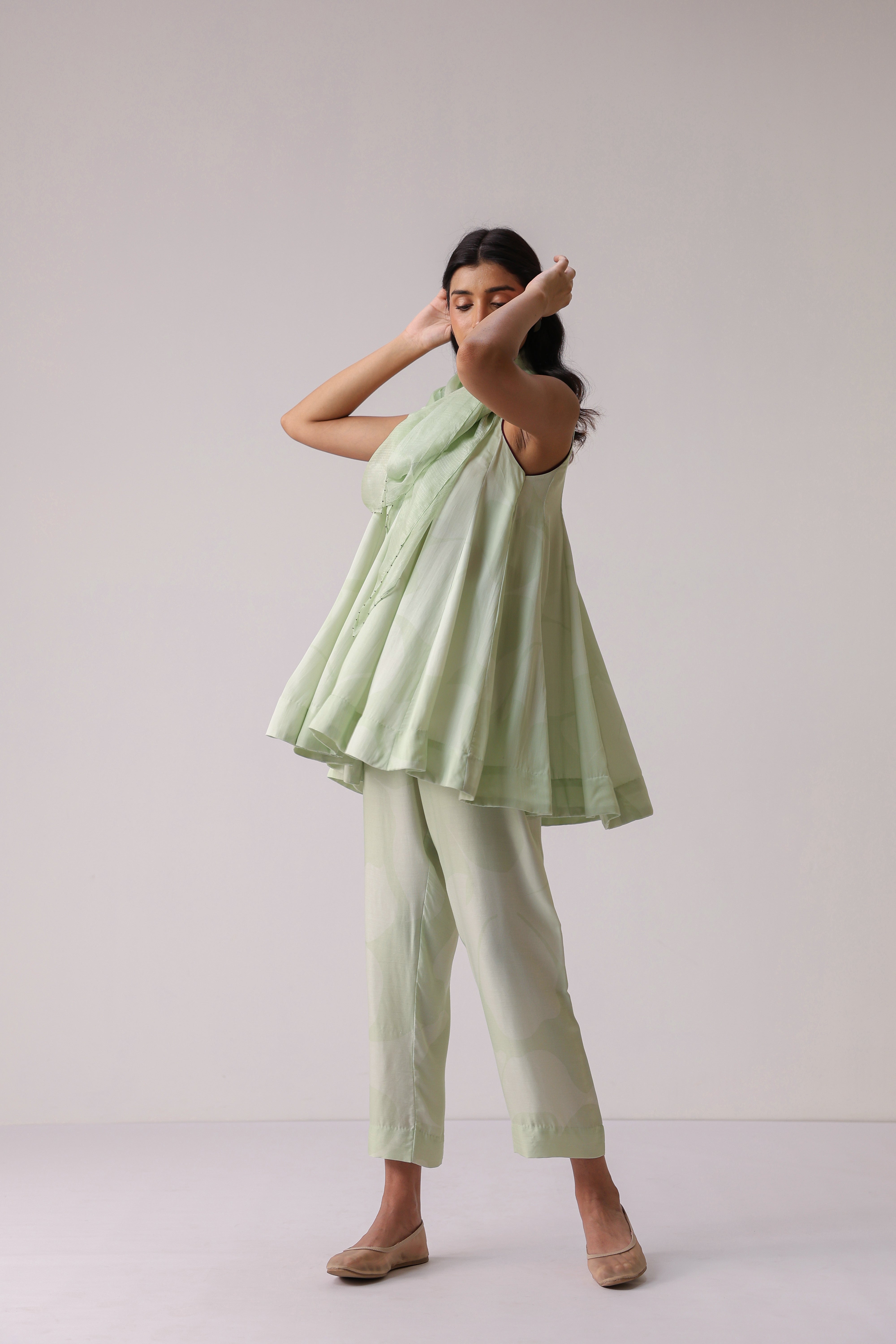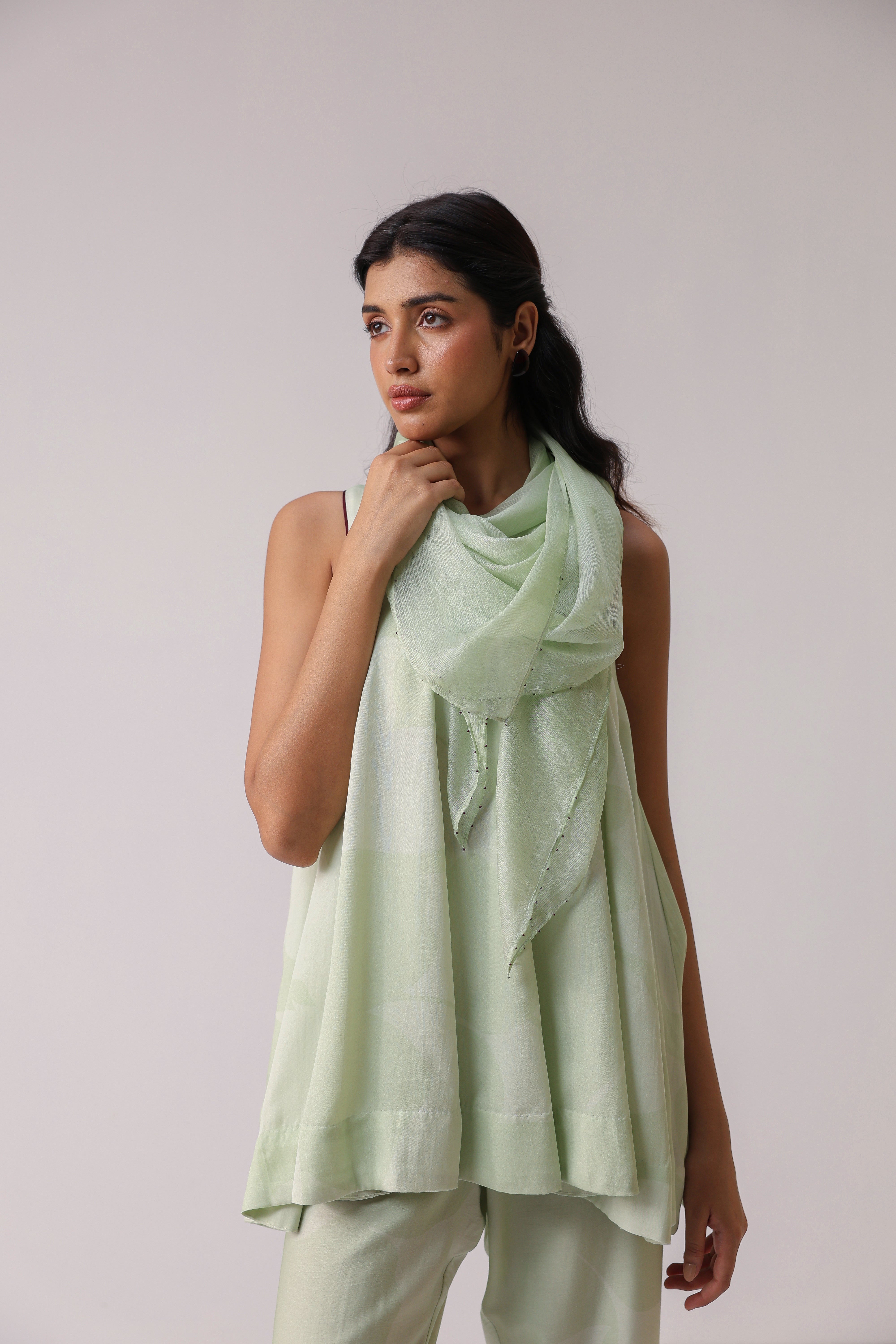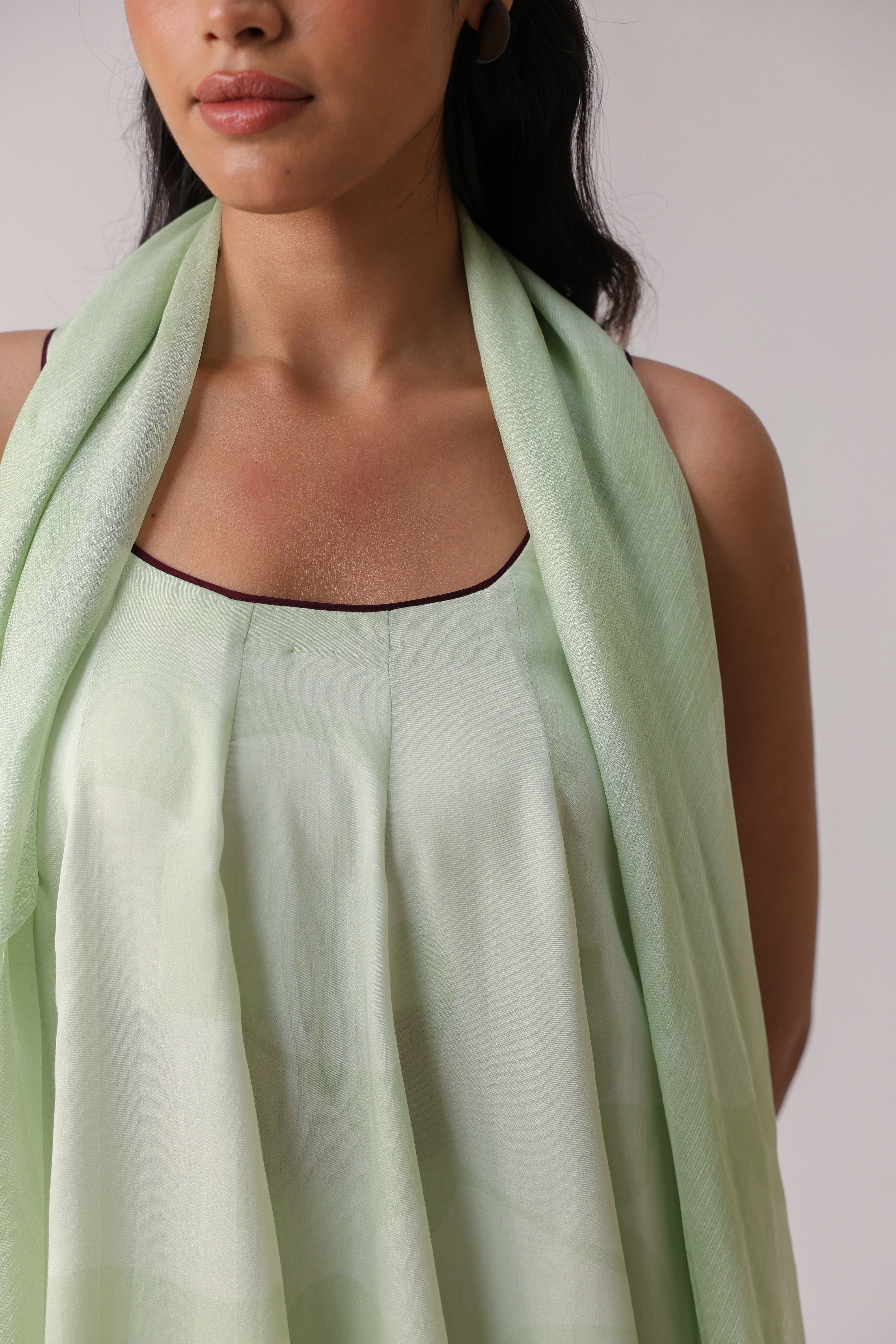 Our muse is wearing size Small and Pistachio Green colour.