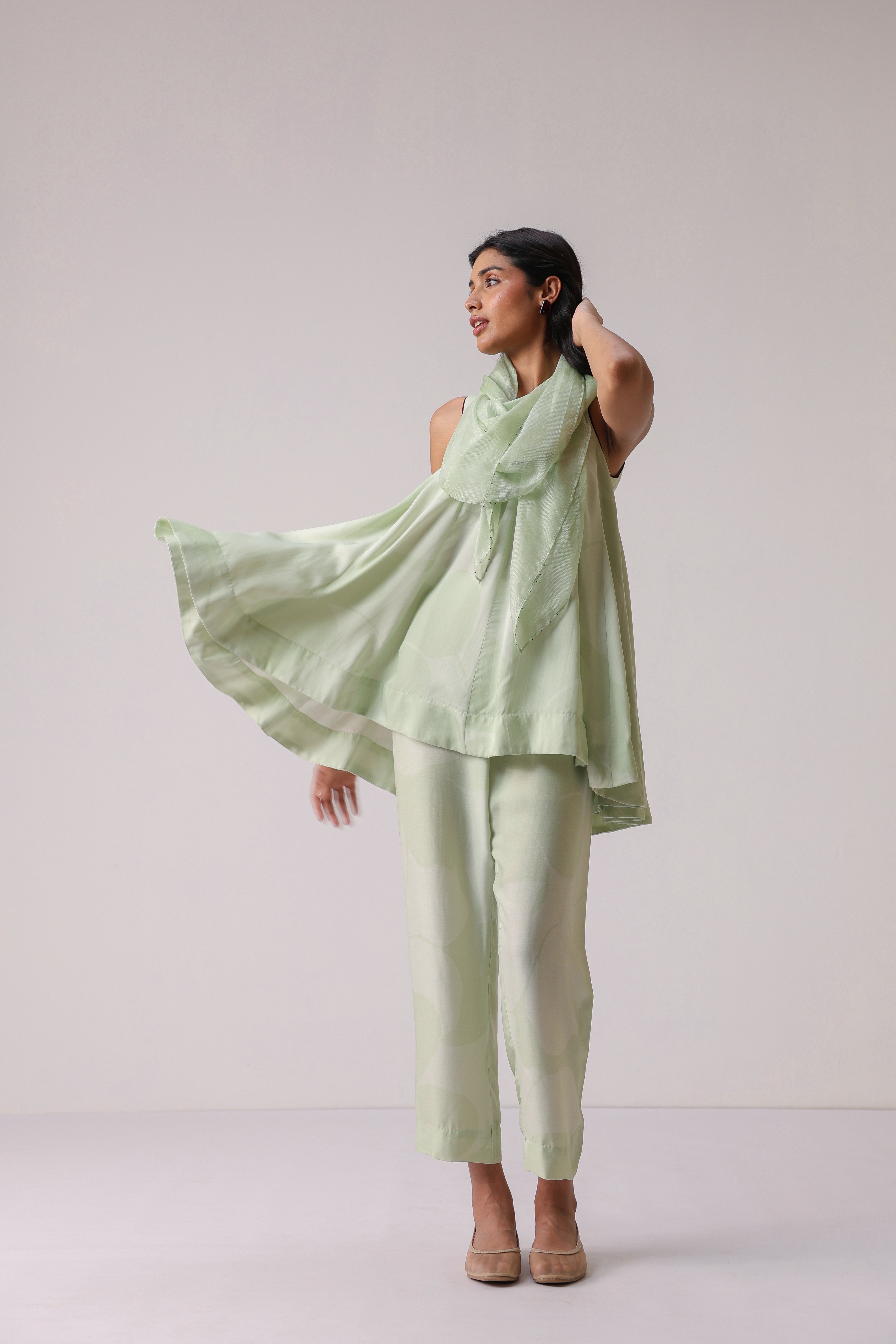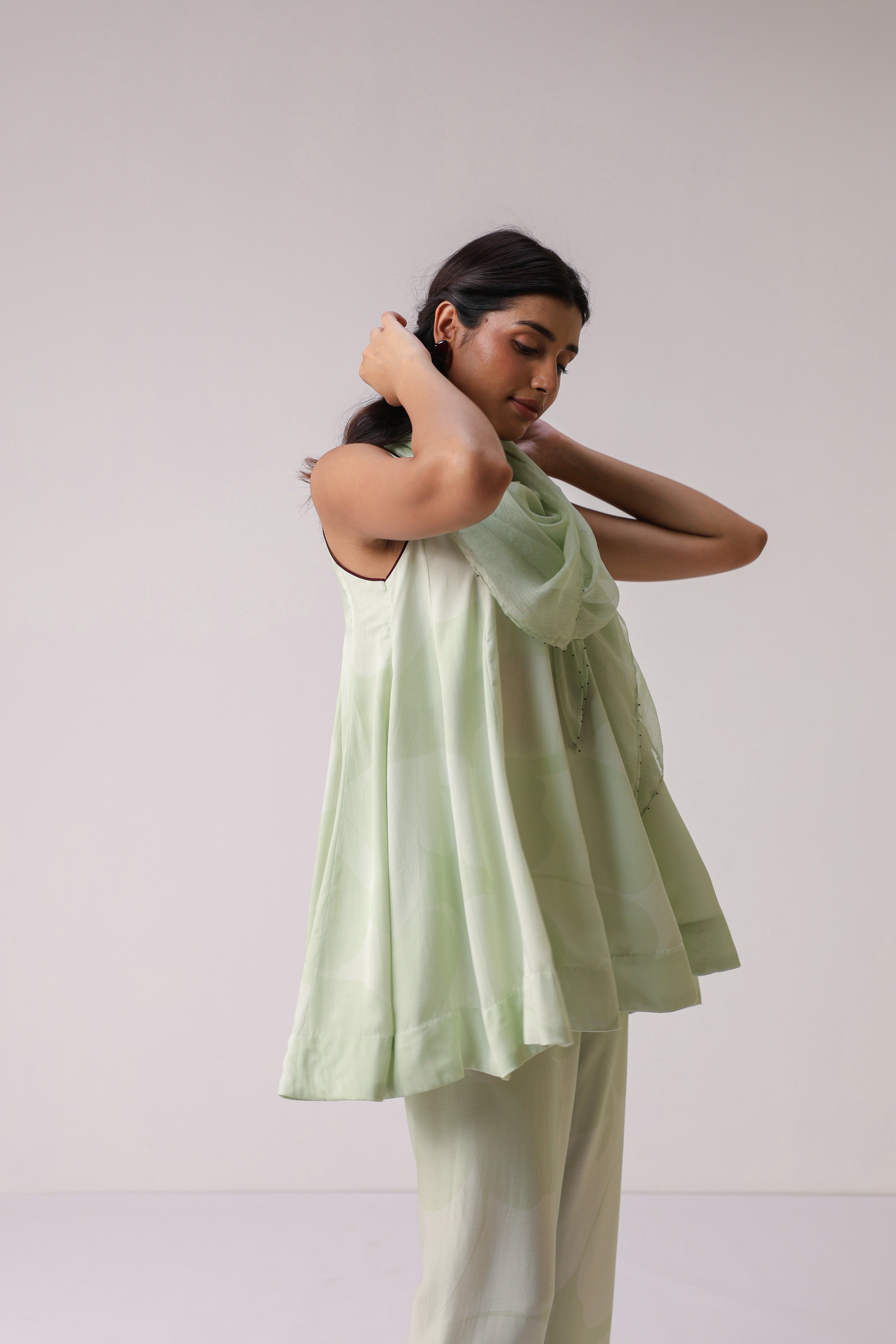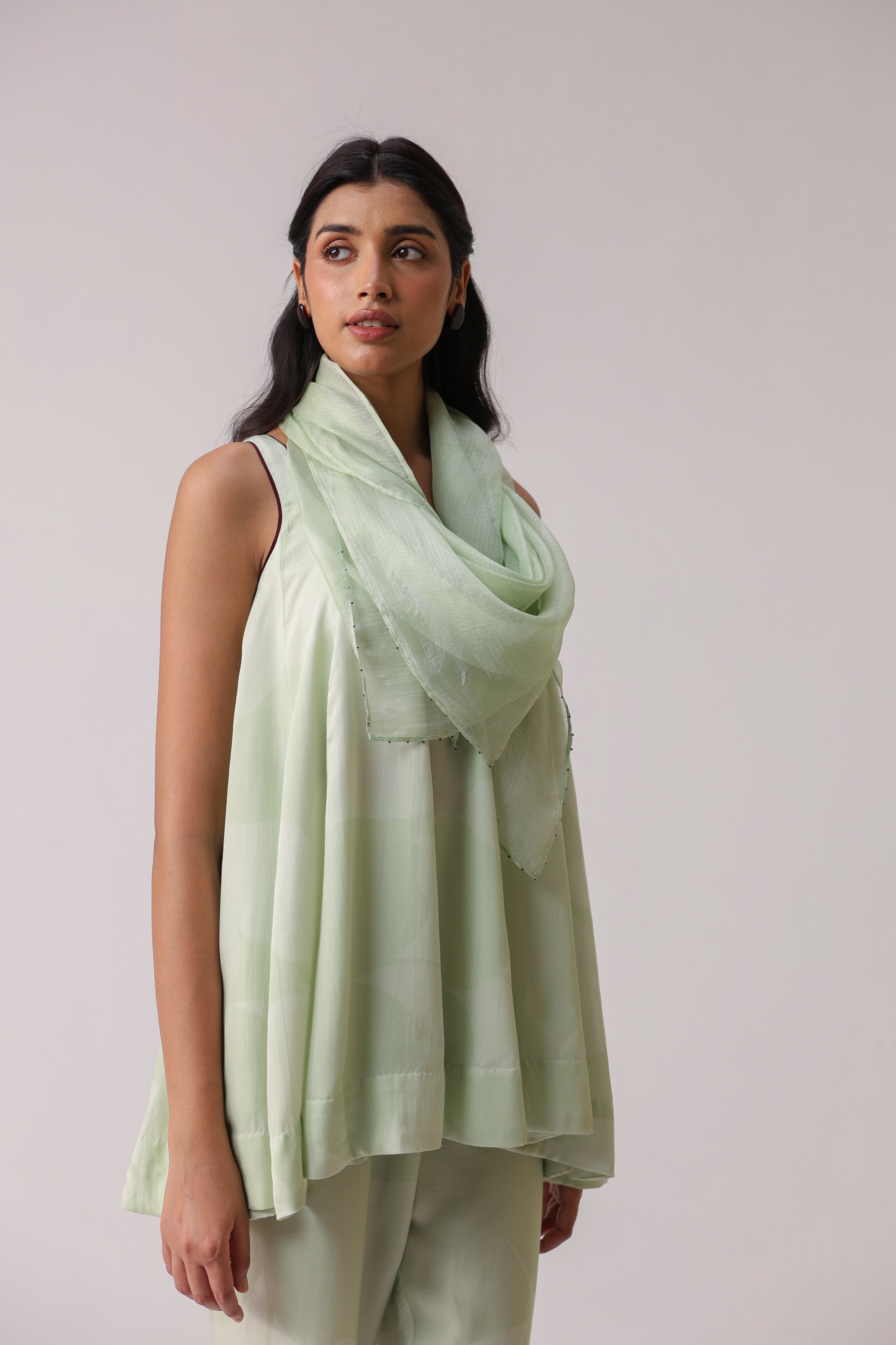 Our muse is wearing size Small and Pistachio Green colour.