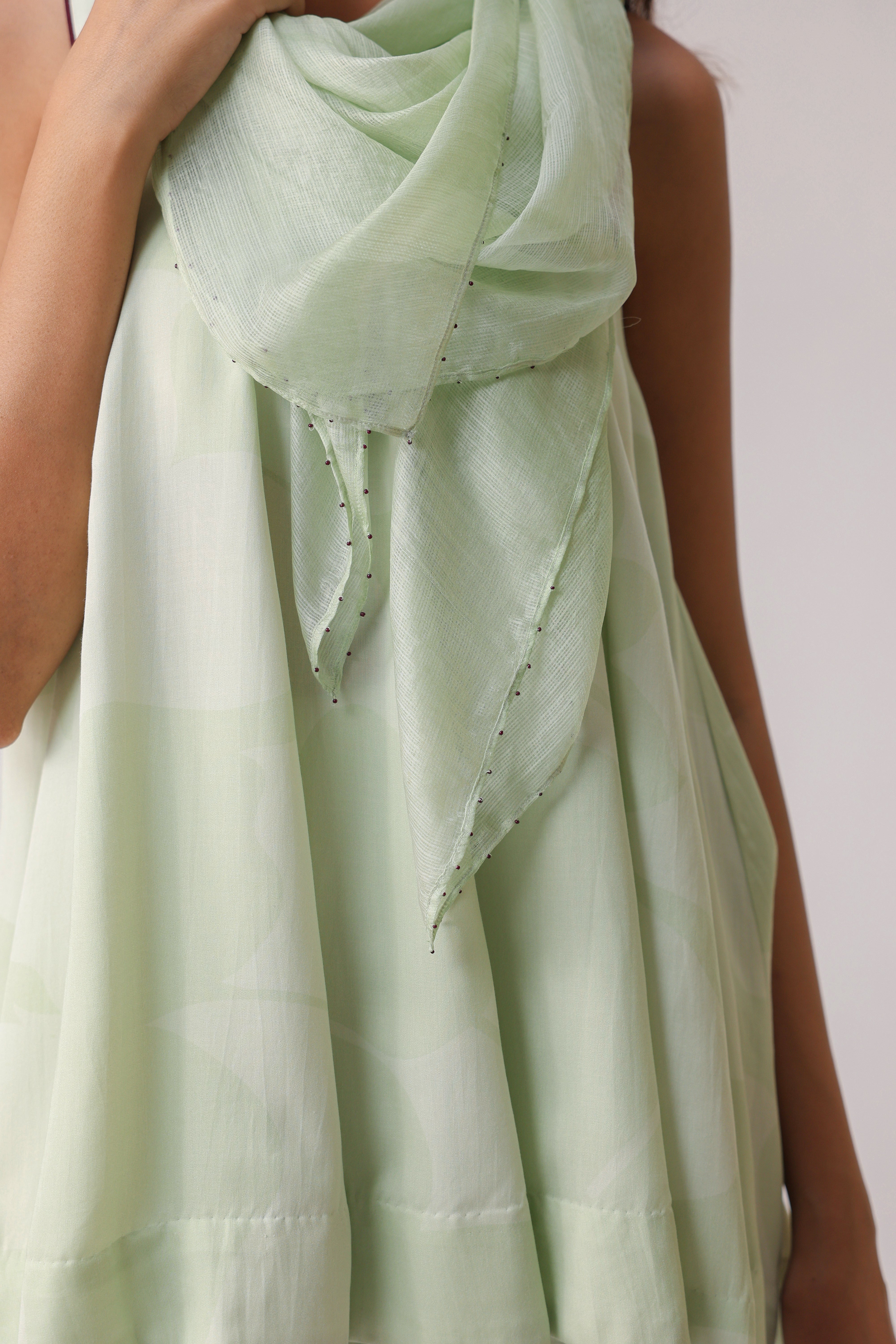 - Square Silk Kota Doriya Scarf that has beads detailing on all 4 corners.