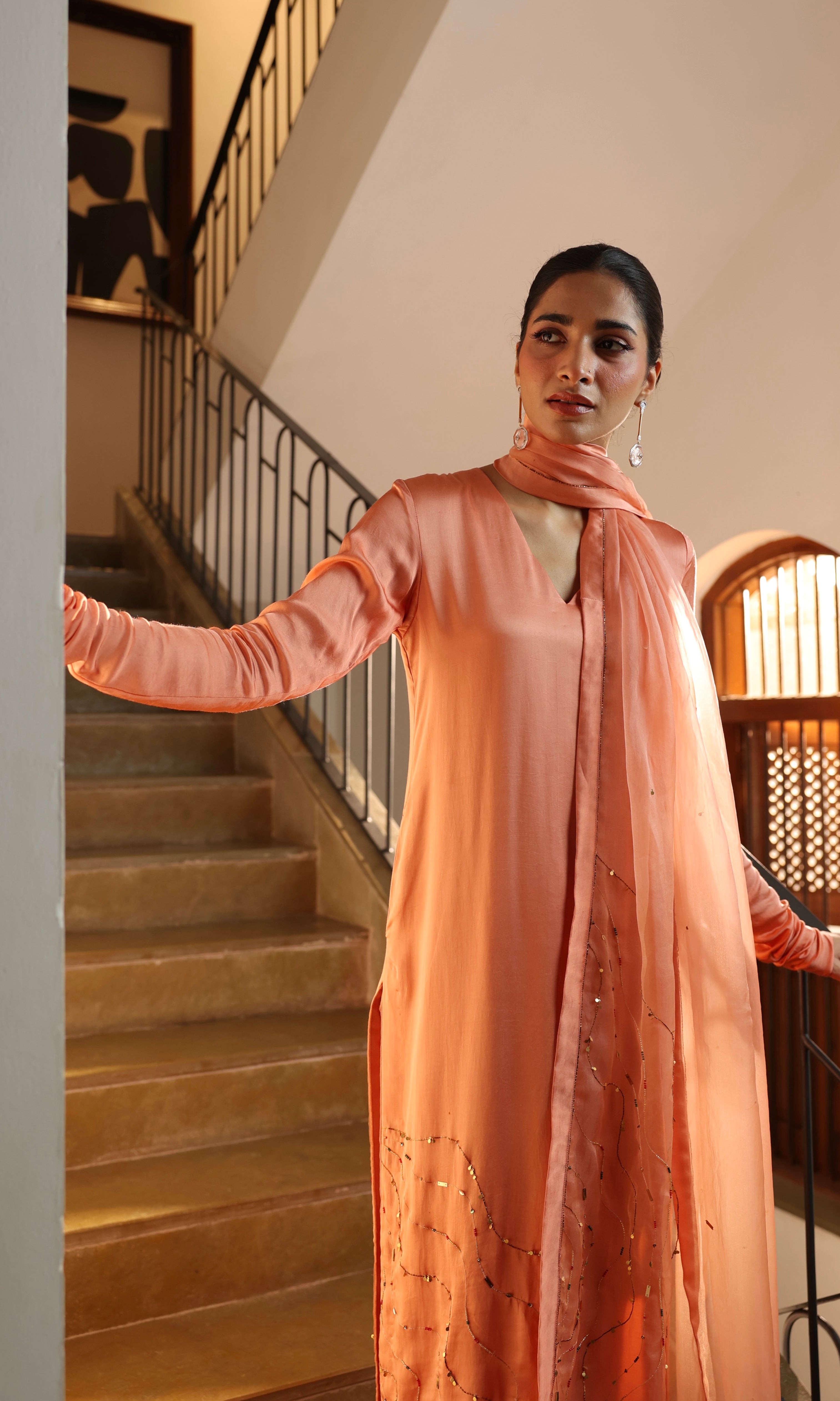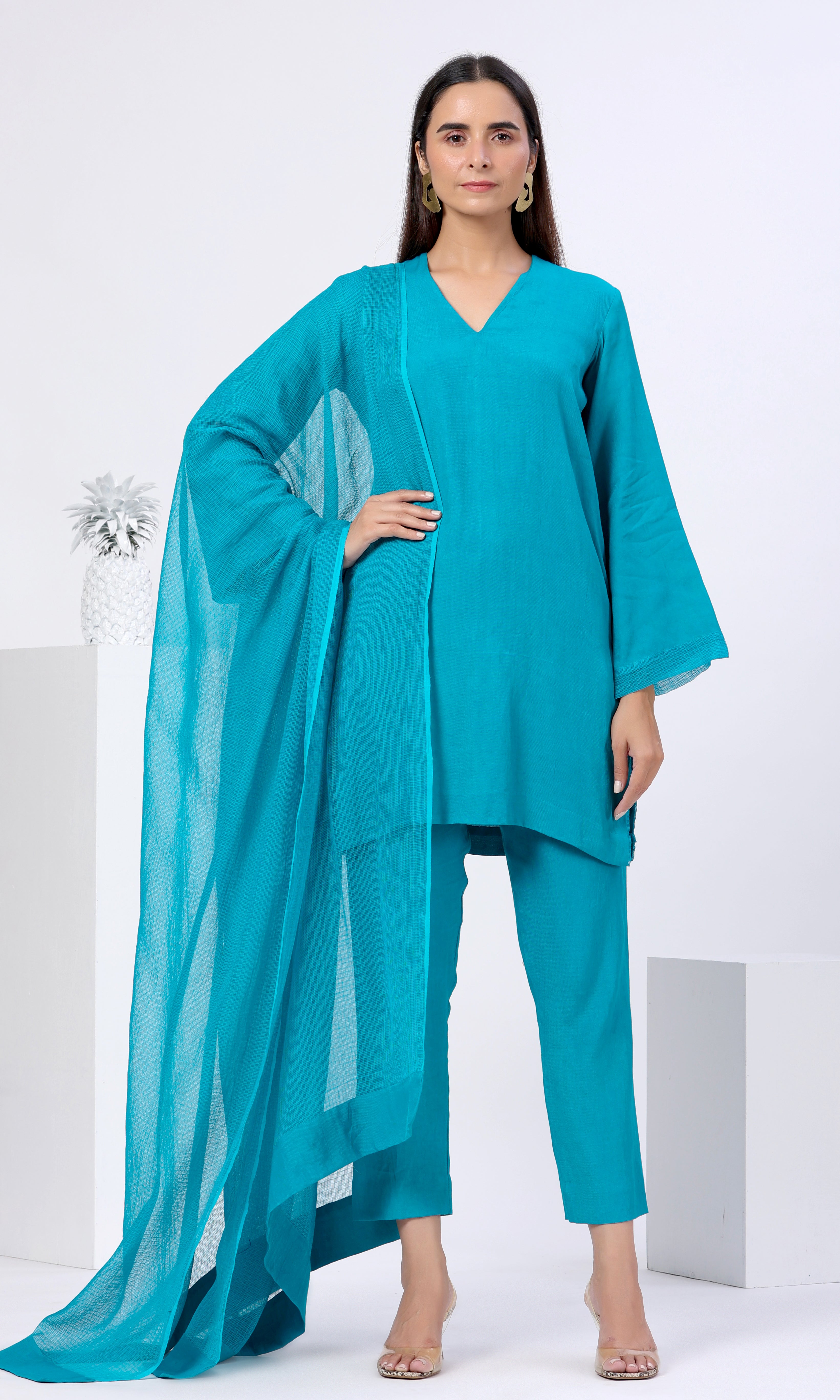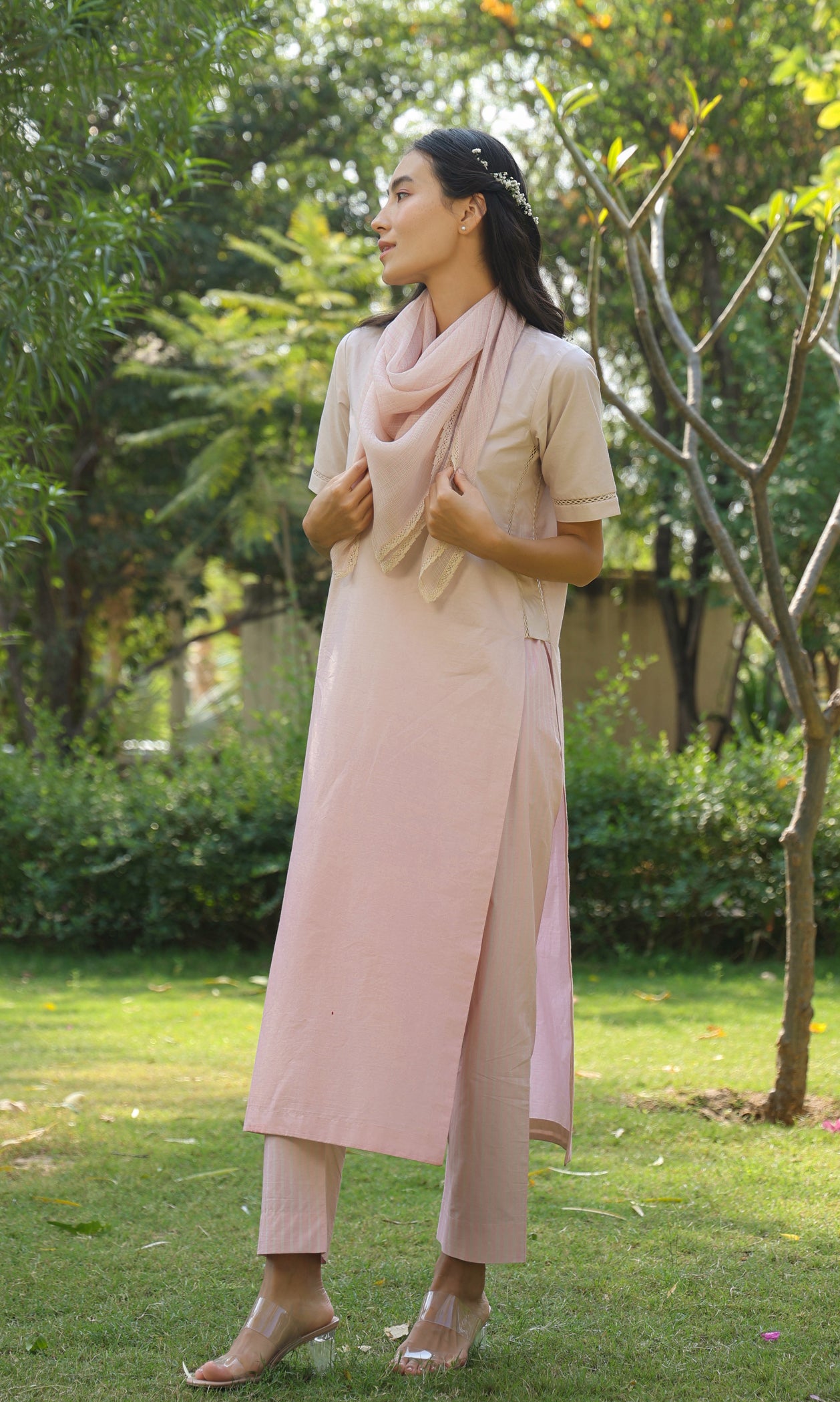 Full Sleeves Short Kurta Set with Doriya Dupatta