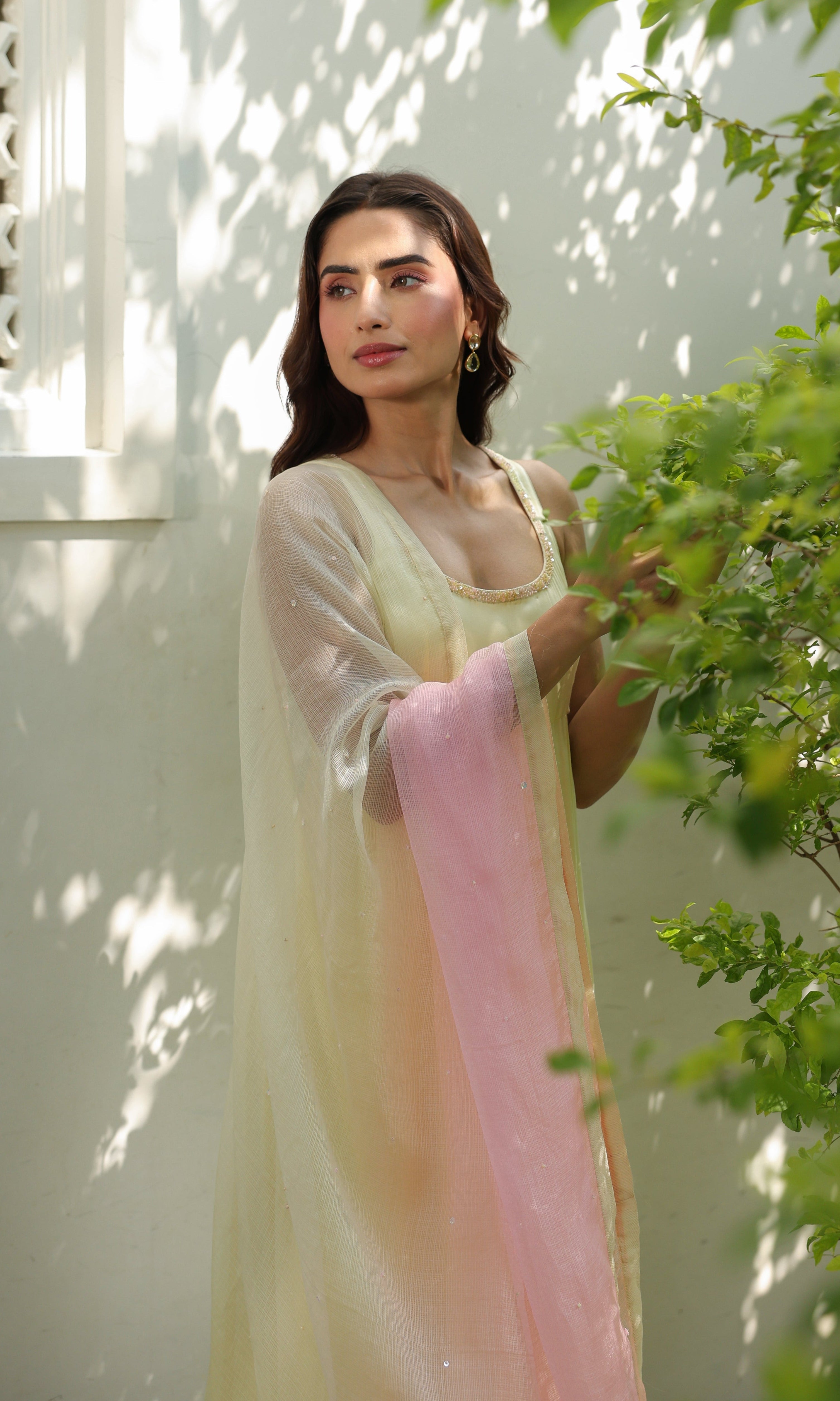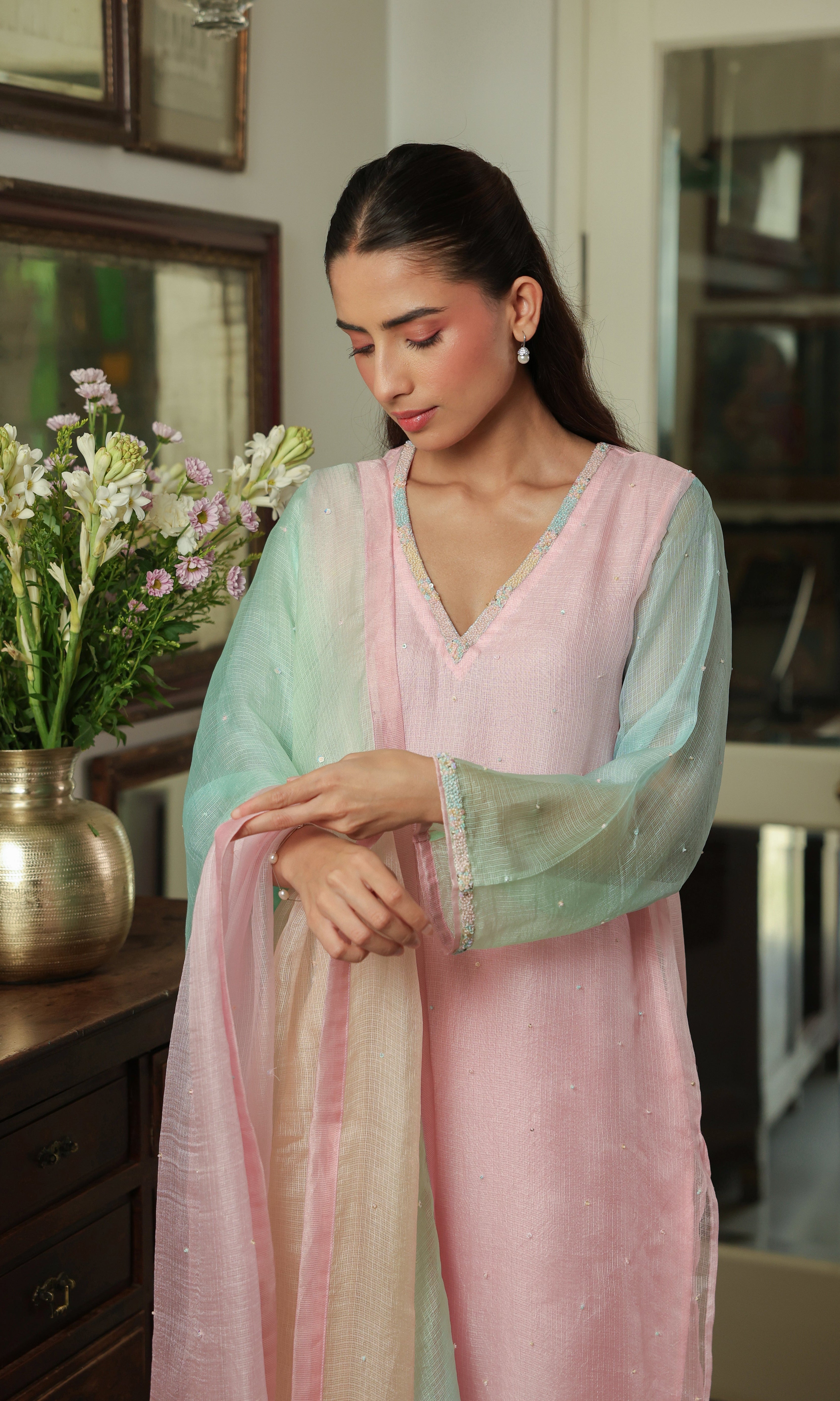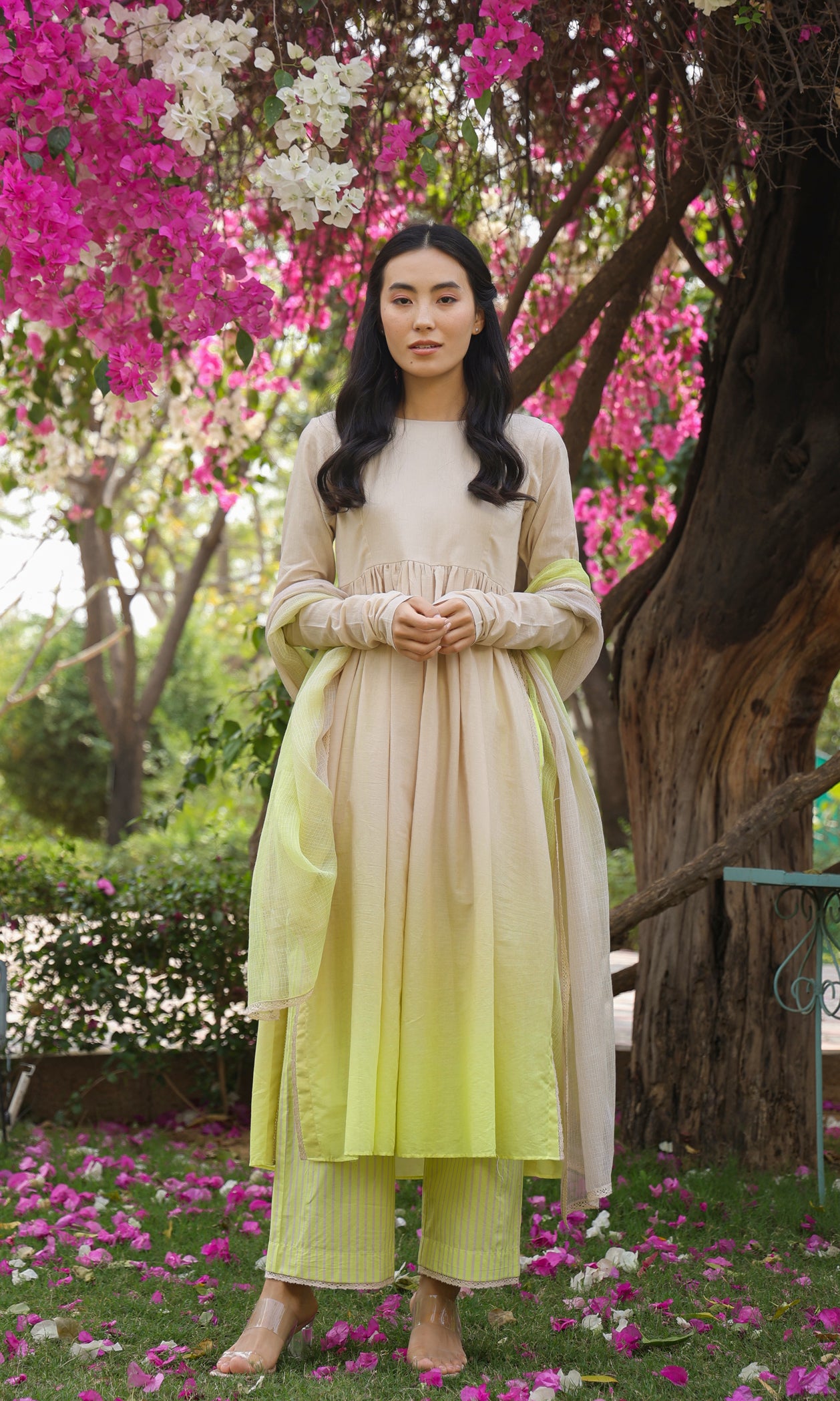 Full Sleeves Short Kurta Set with Doriya Dupatta