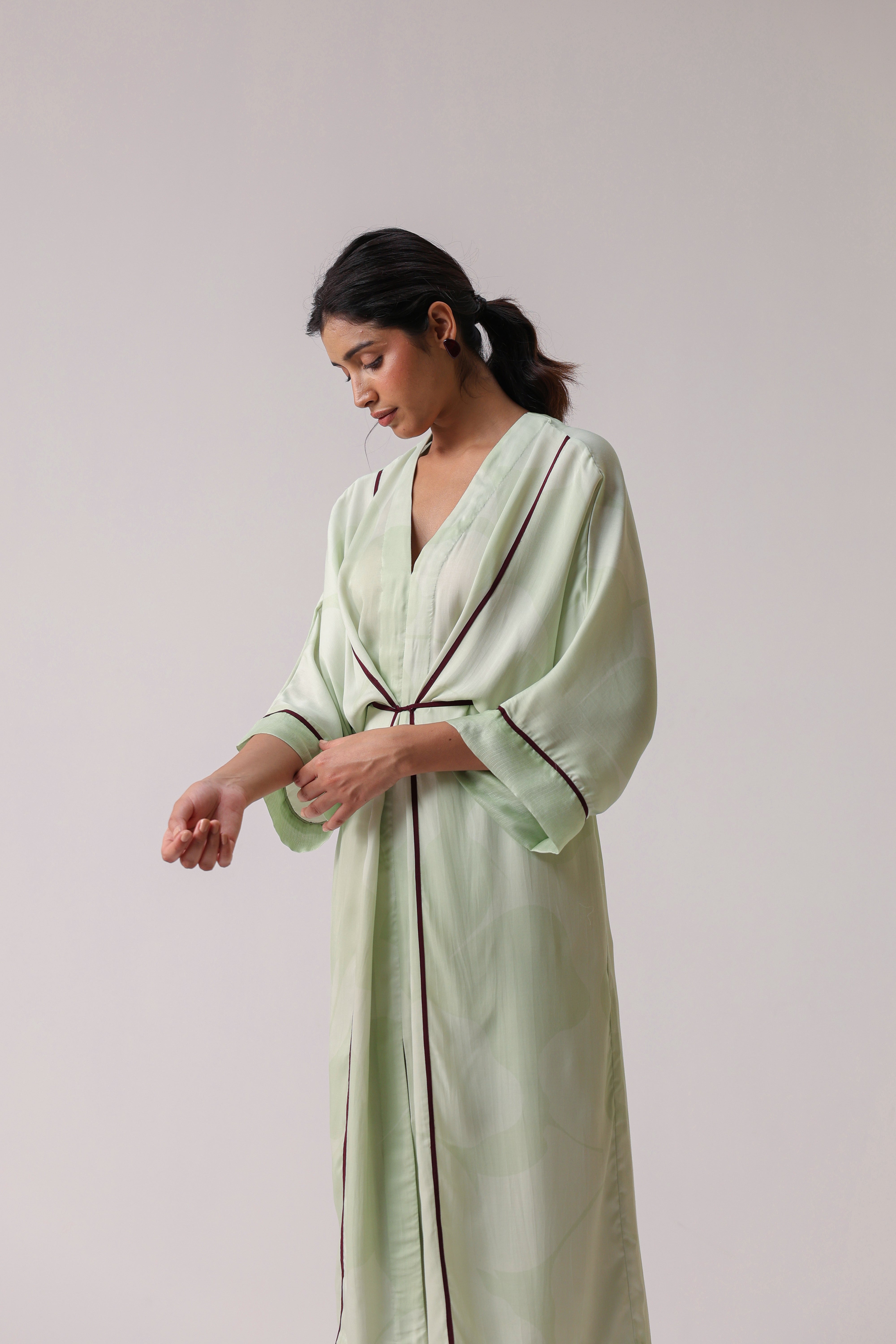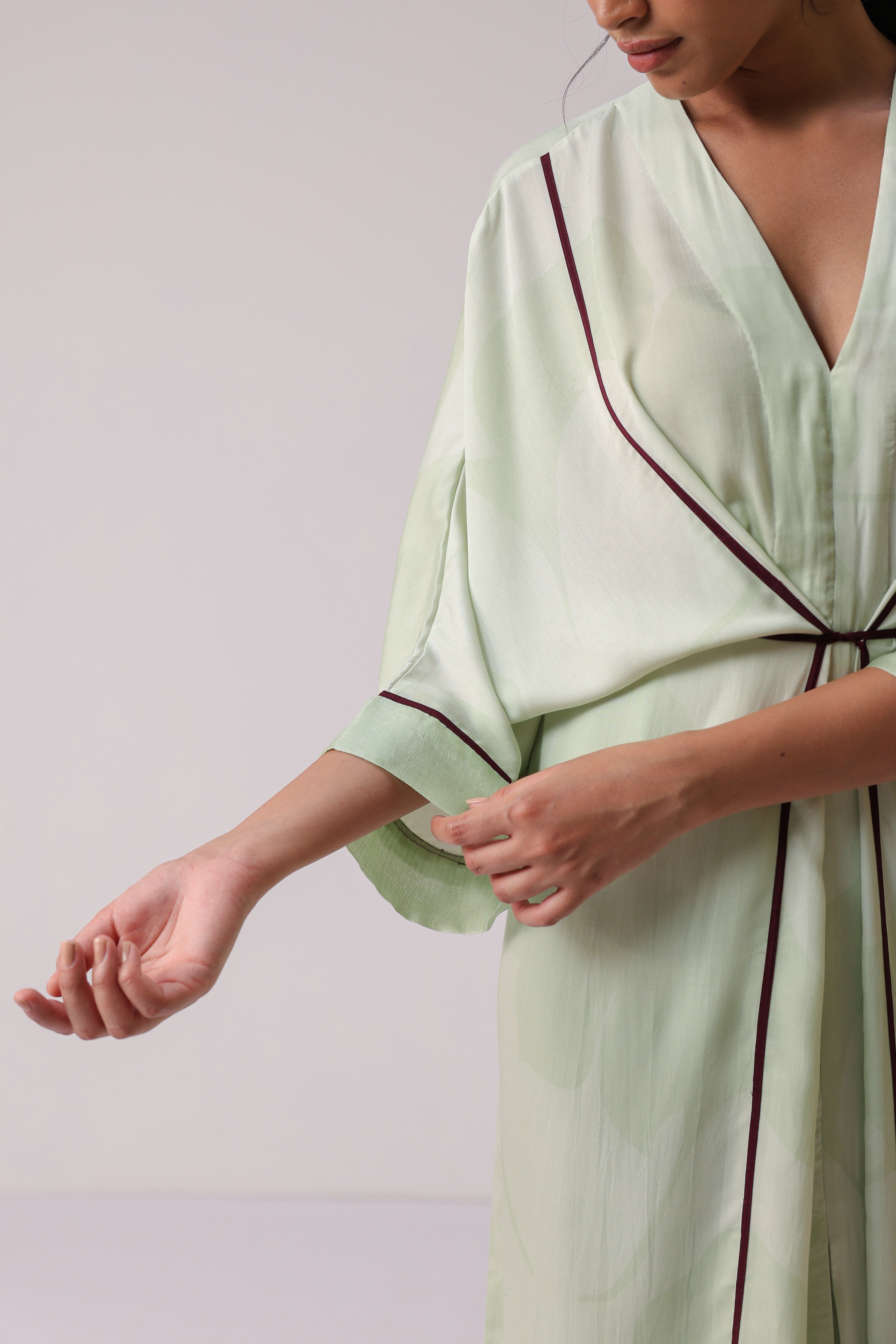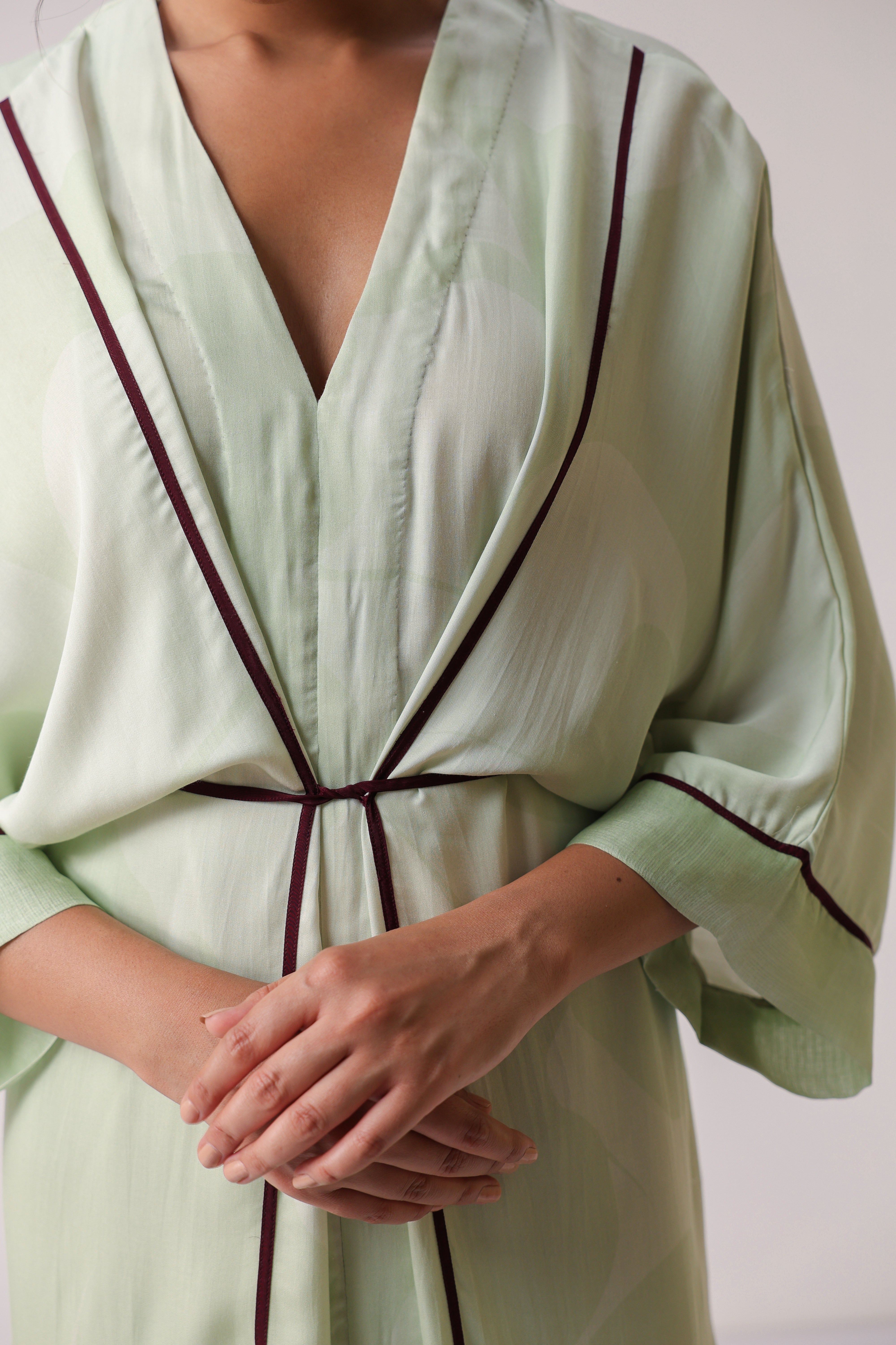 Our muse is wearing size Small and Pistachio Green colour.