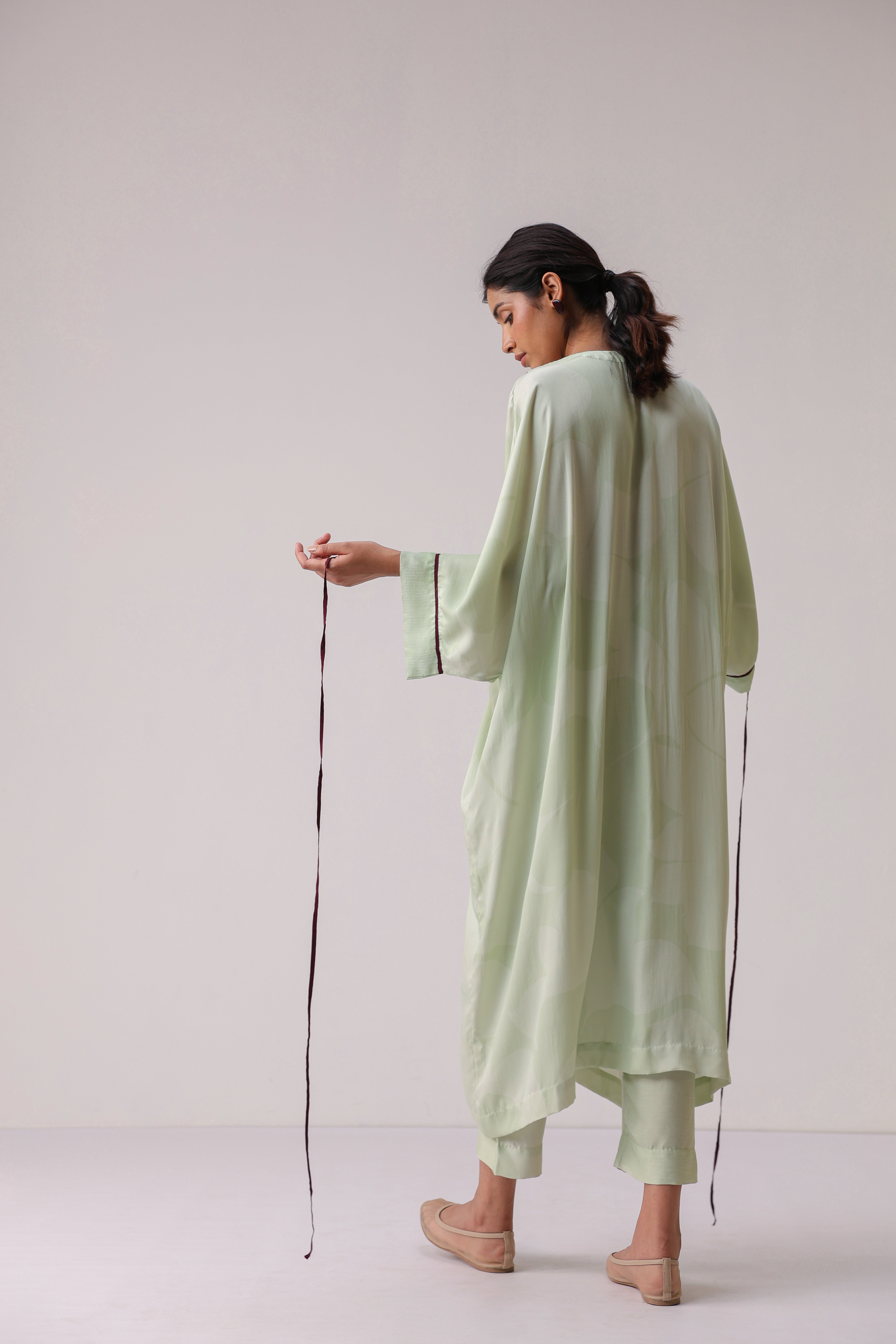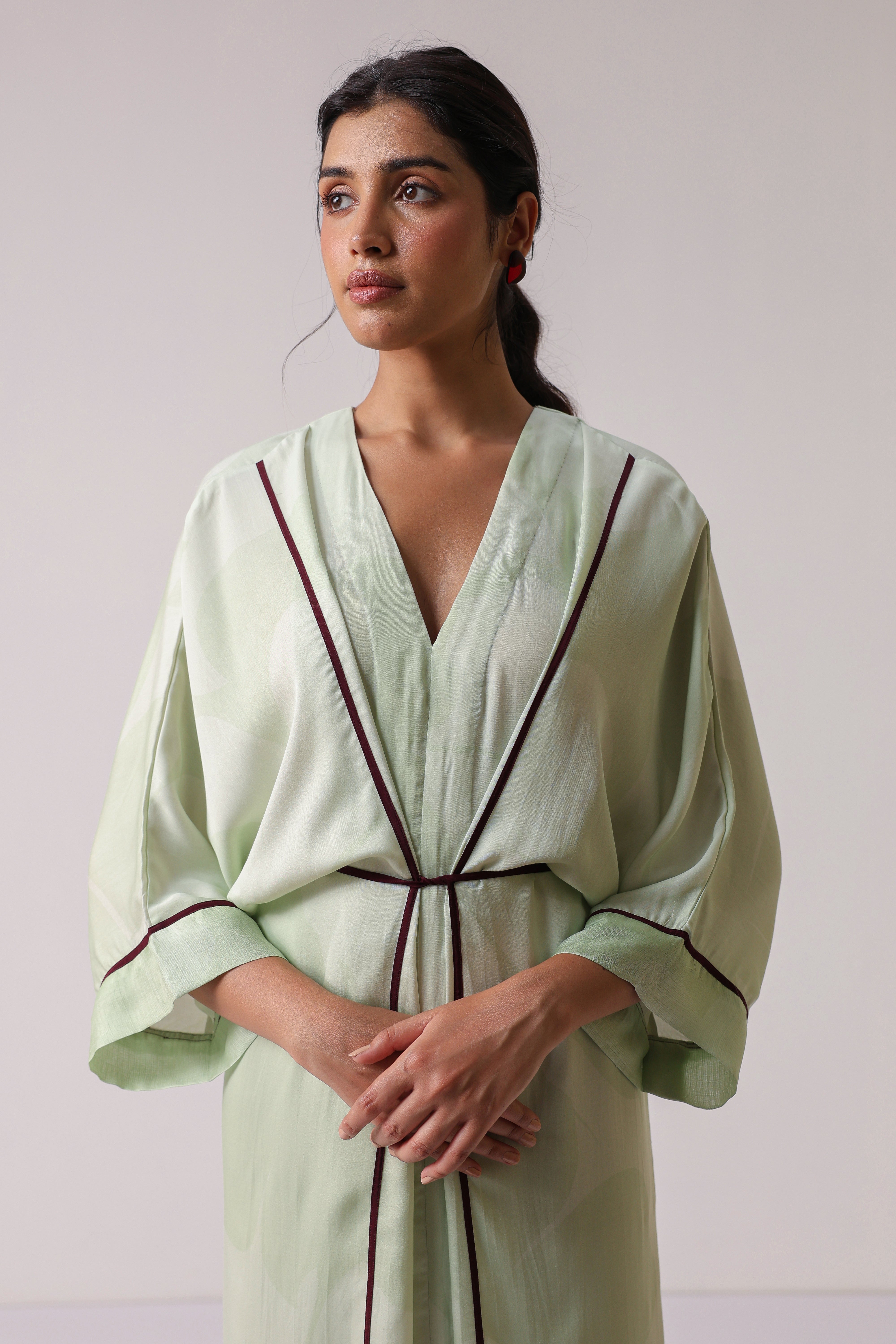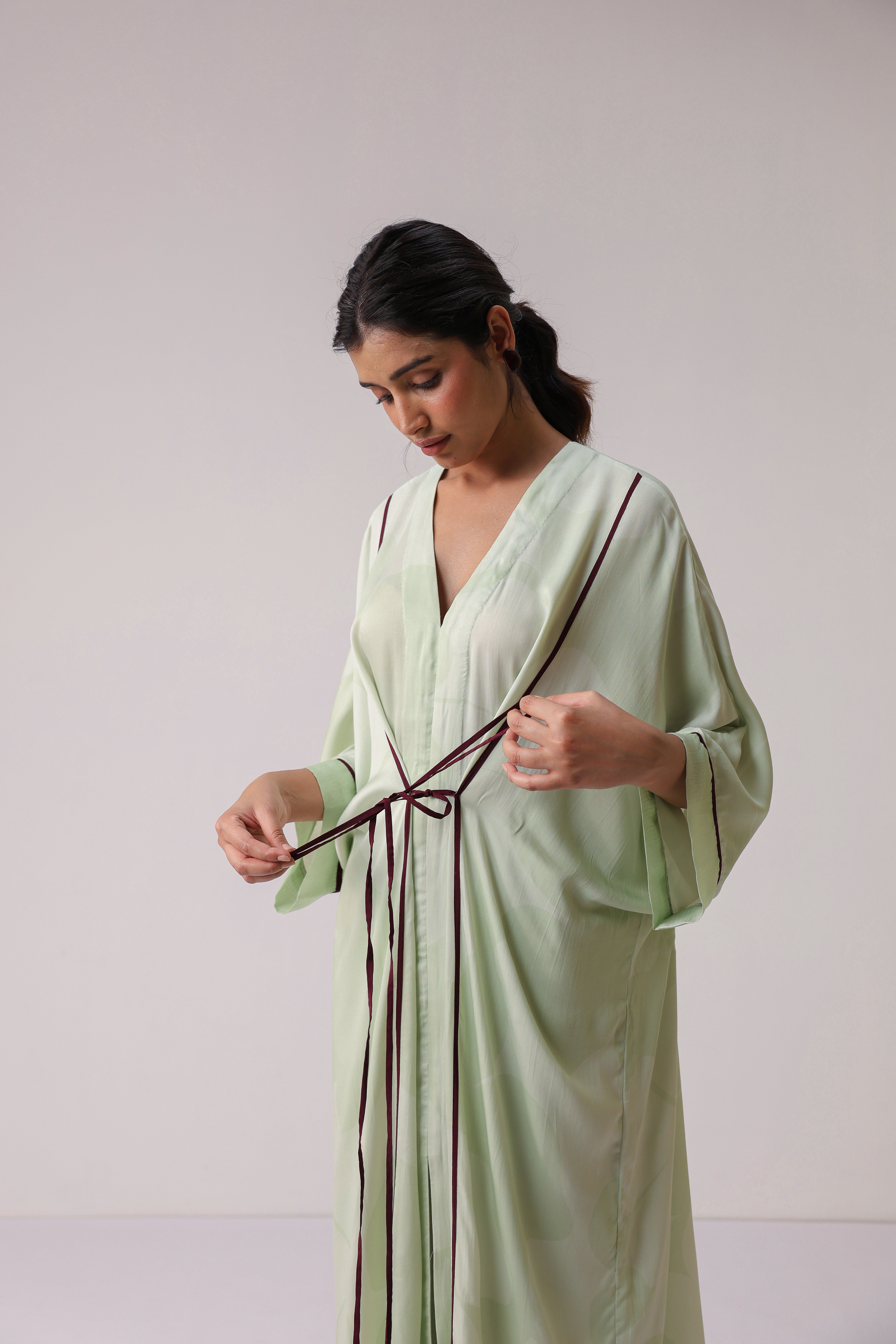 Our muse is wearing size Small and Pistachio Green colour.