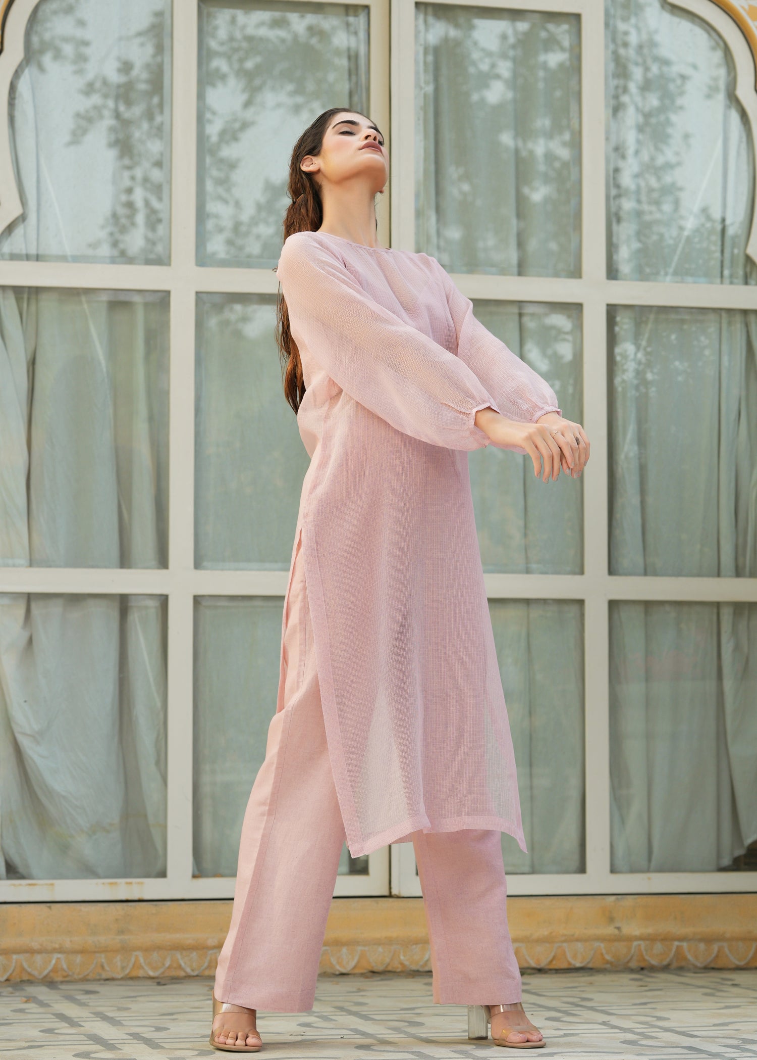 Linen 3 Piece Co-ord Set with Doriya Long Top