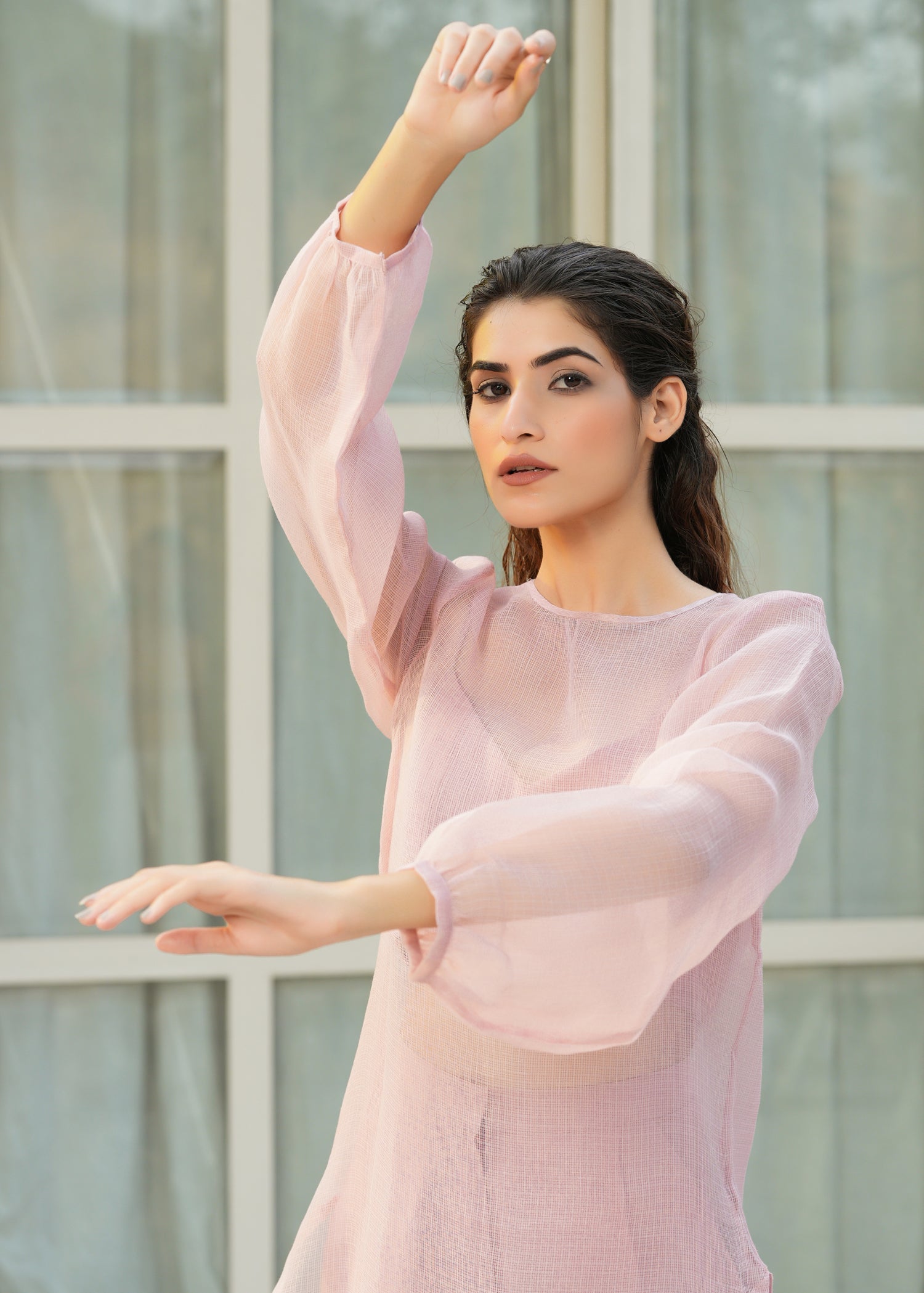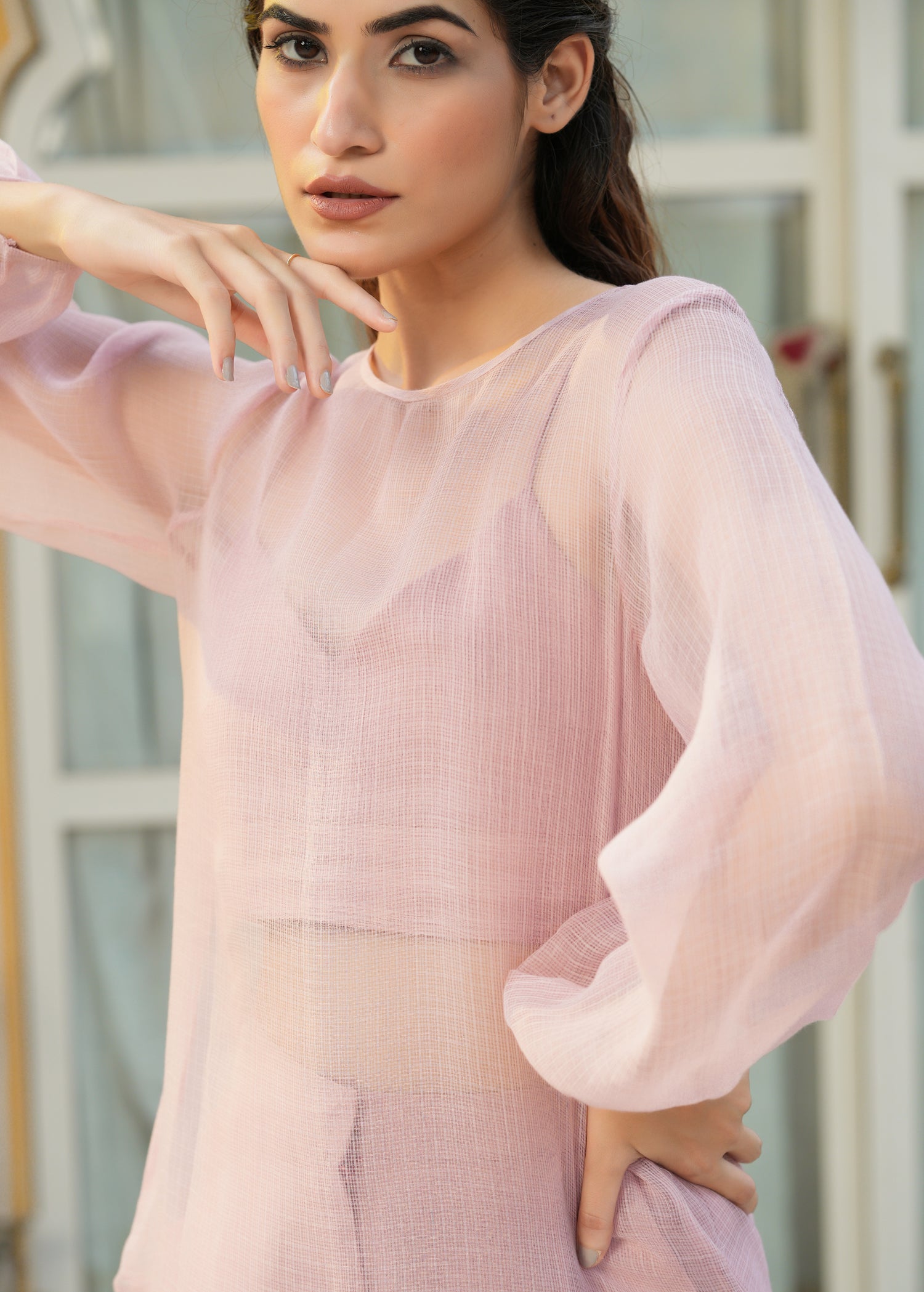 Model is wearing size Small and Dusty Rose Colour.