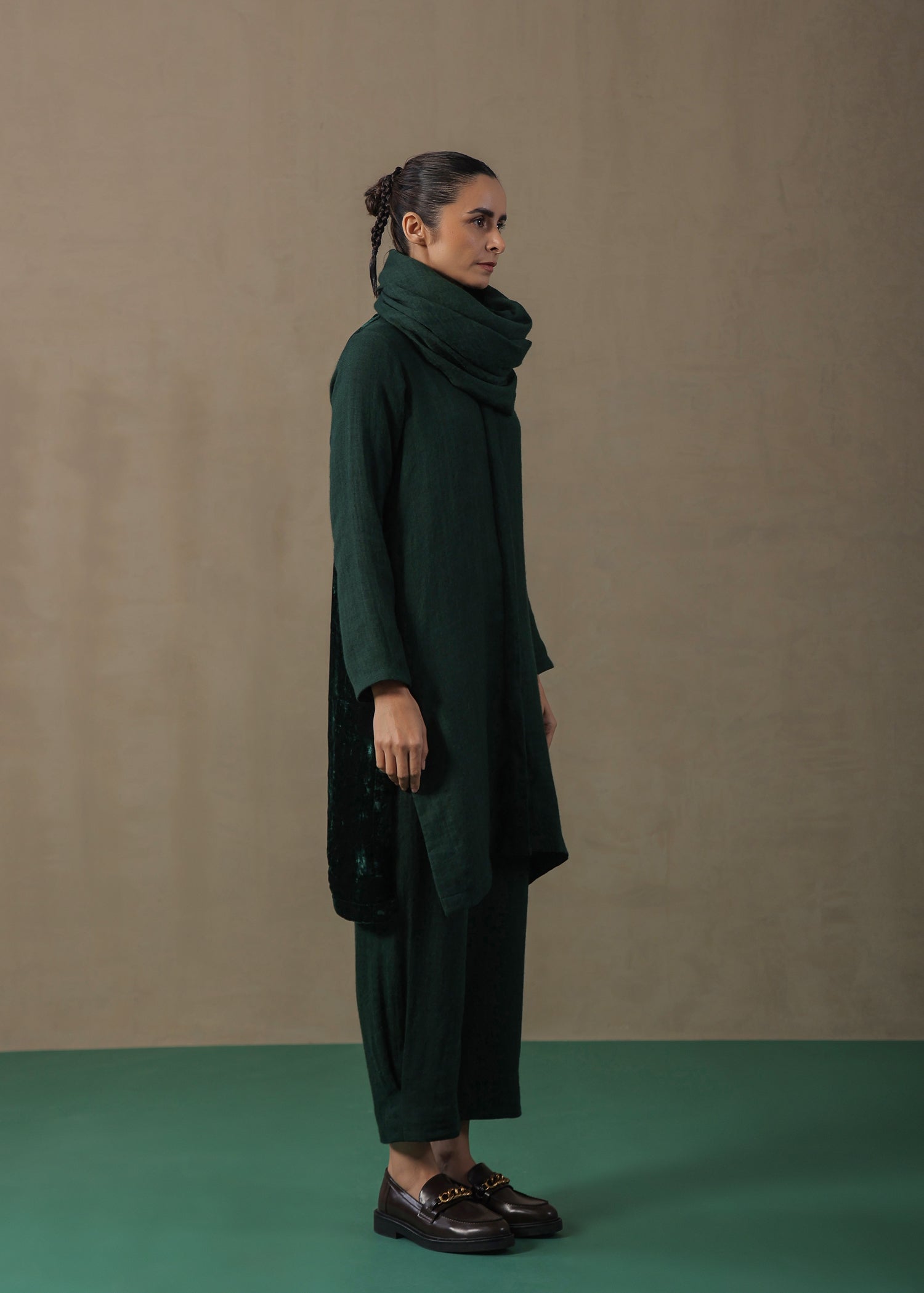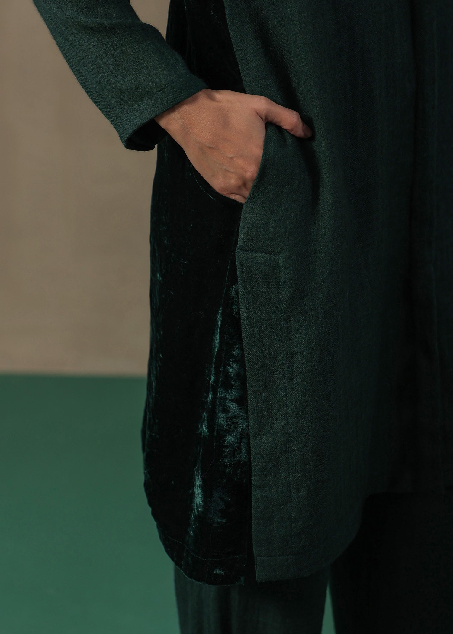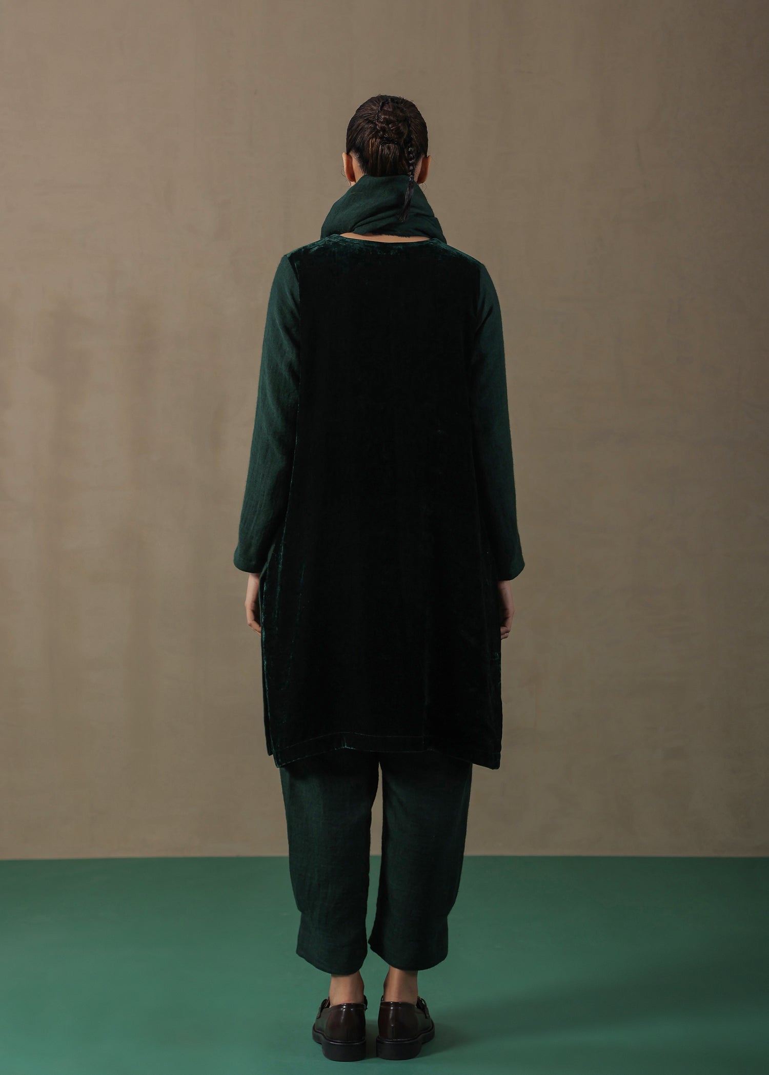 - Long Front Buttoned Shirt with Velvet back, round neckline, full sleeves and pockets on both sides.