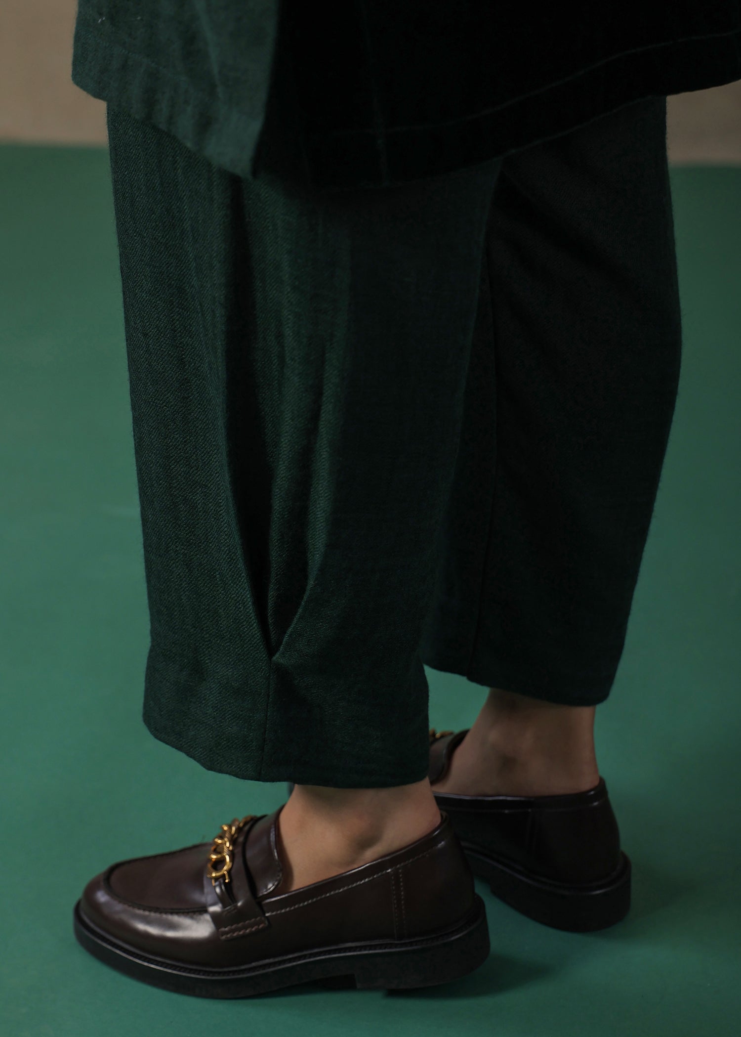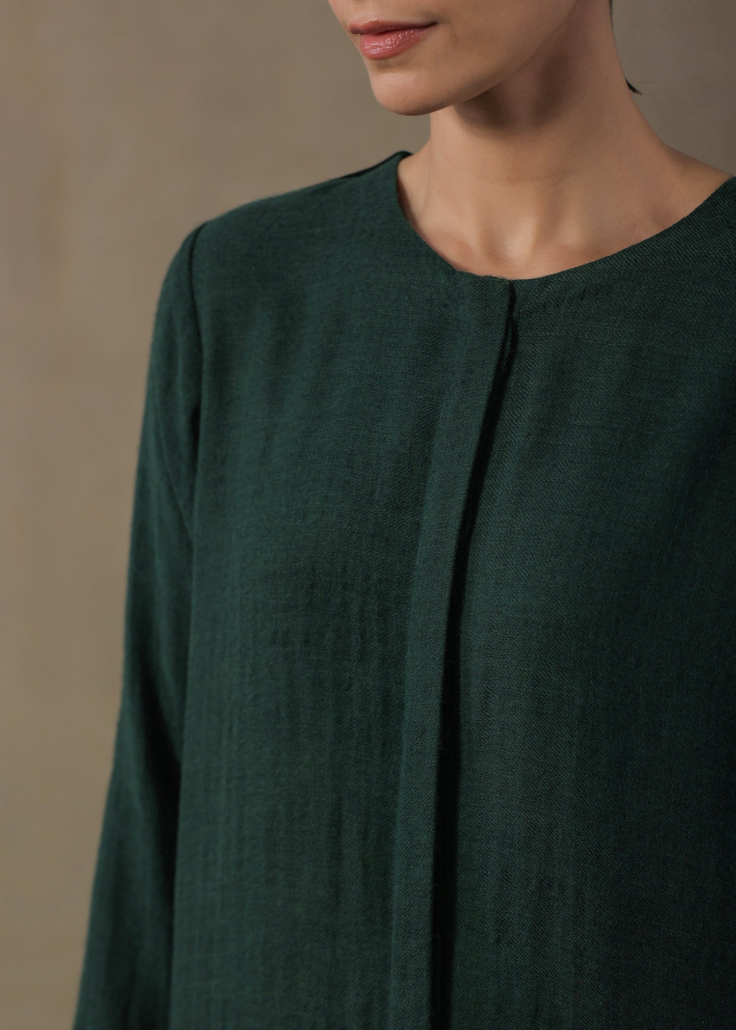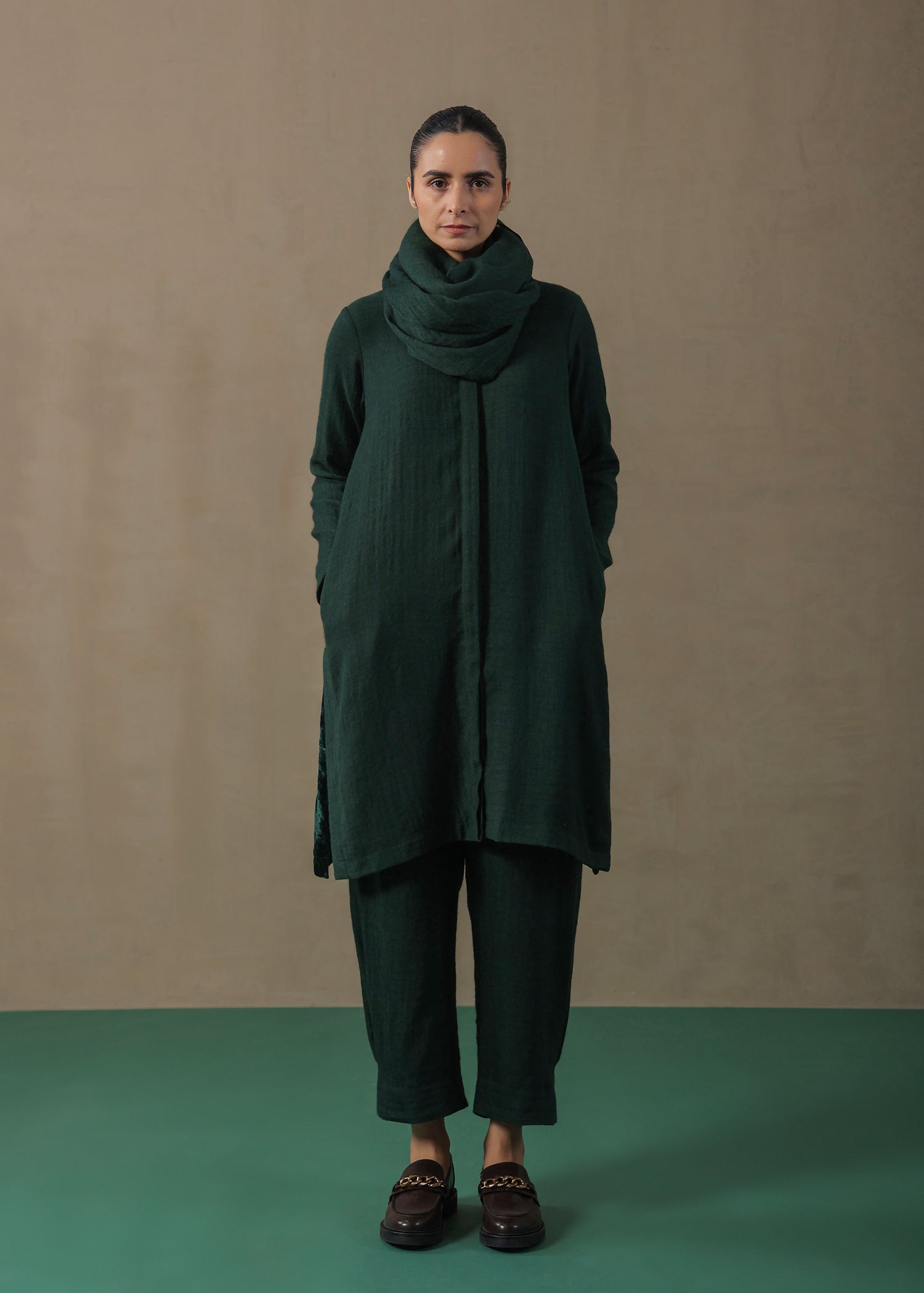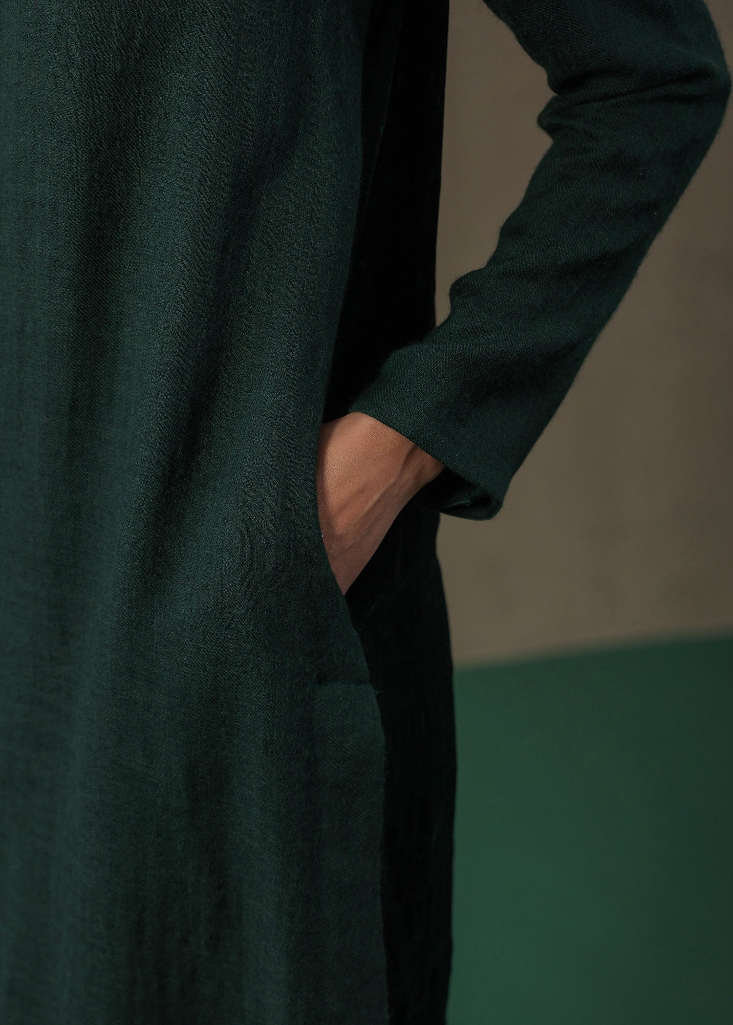 - Long Front Buttoned Shirt with Velvet back, round neckline, full sleeves and pockets on both sides.