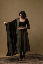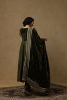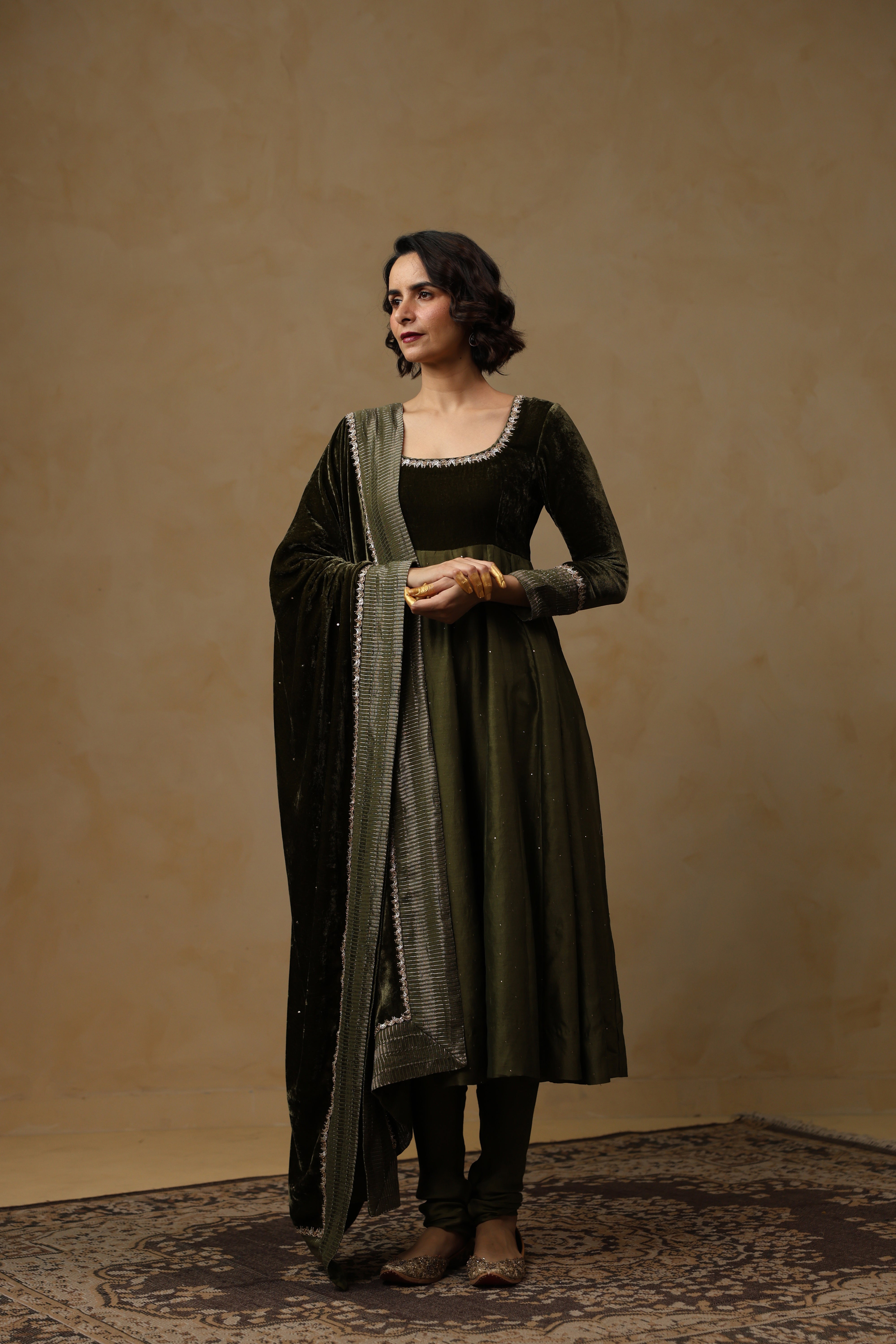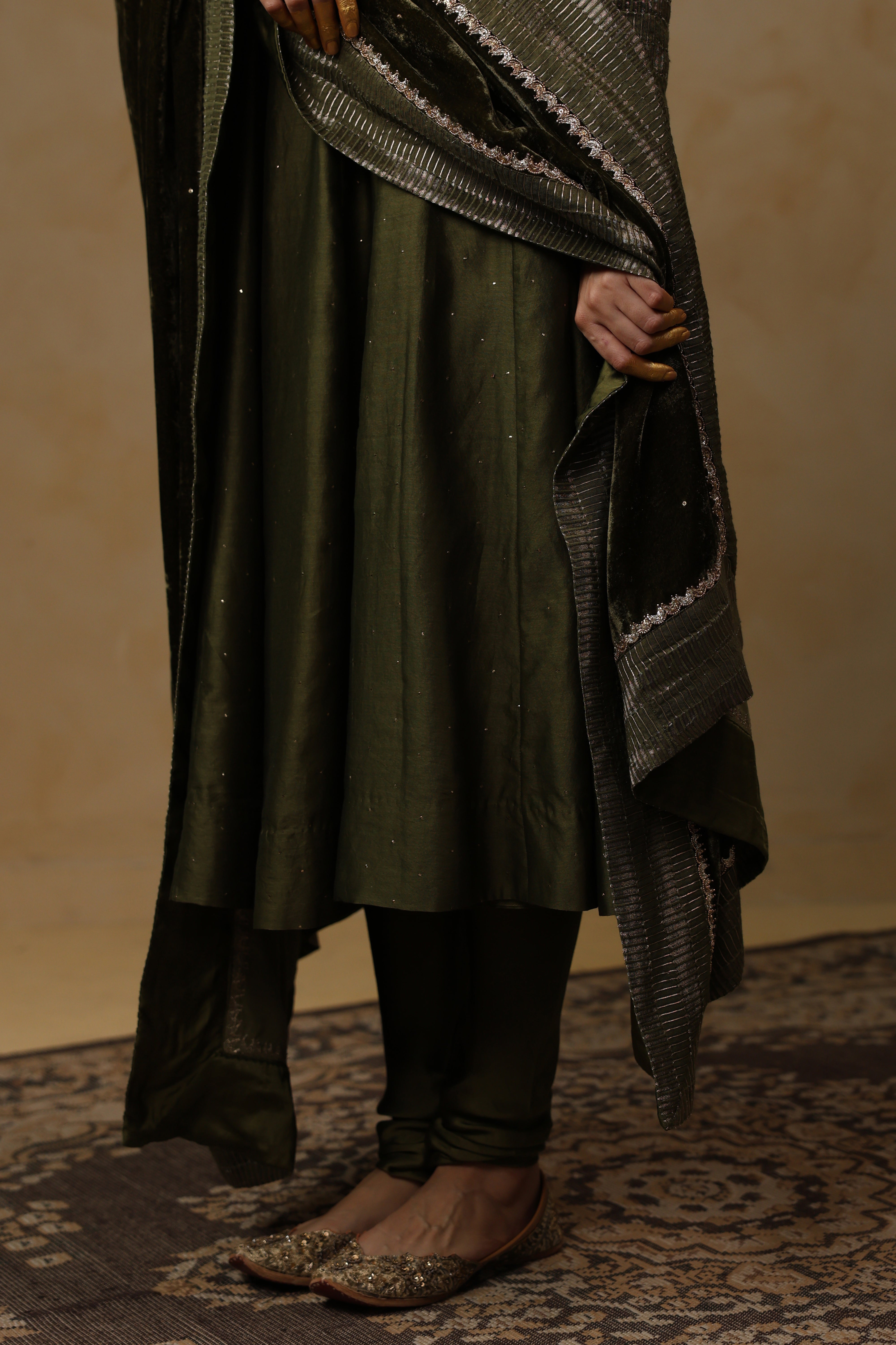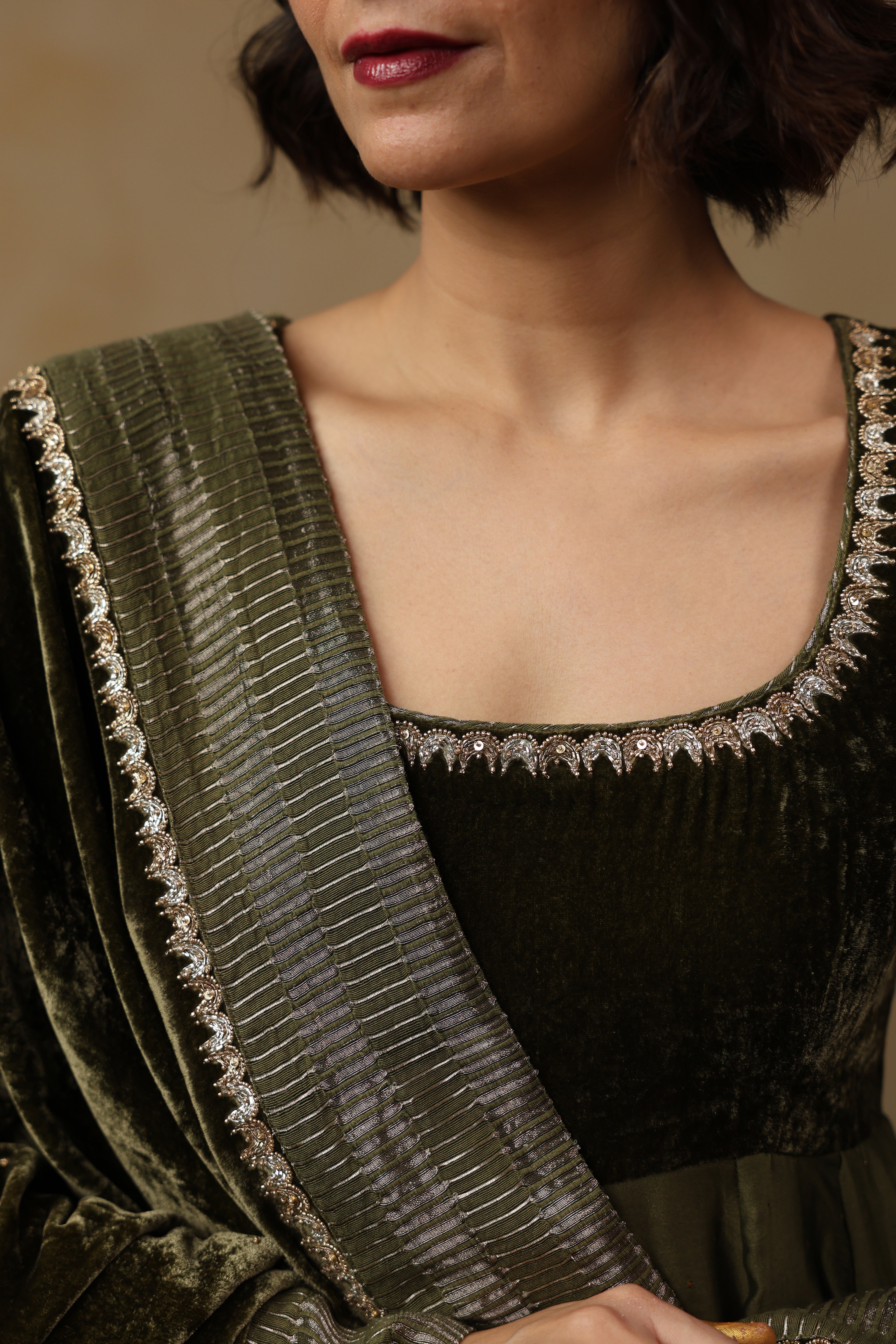 - Velvet Dupatta featuring intricate hand embellishment and finished with a tissue Chanderi facing along the border.
