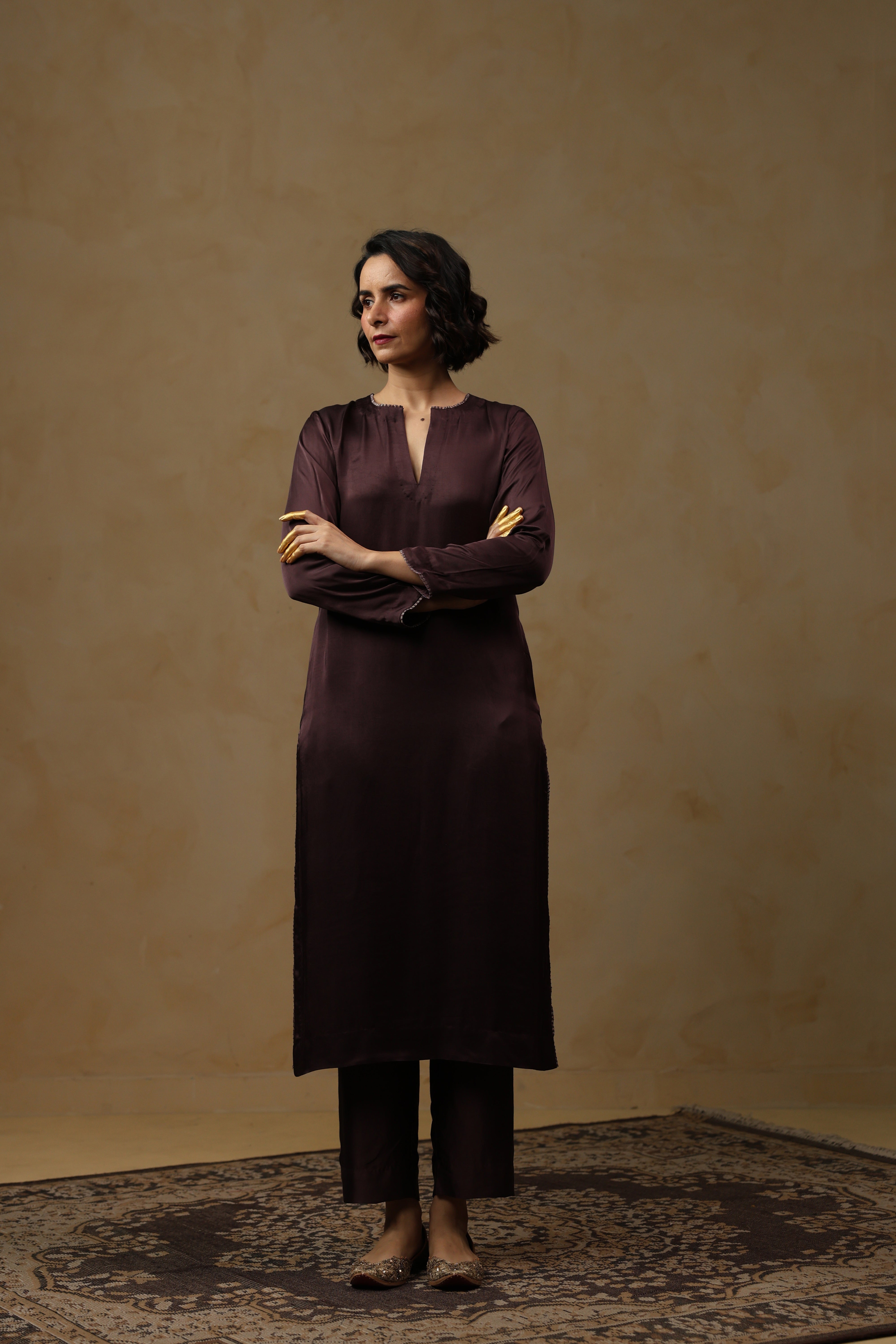 - Full Sleeve Inner Kurta with a slash neckline and functional pockets on both sides.