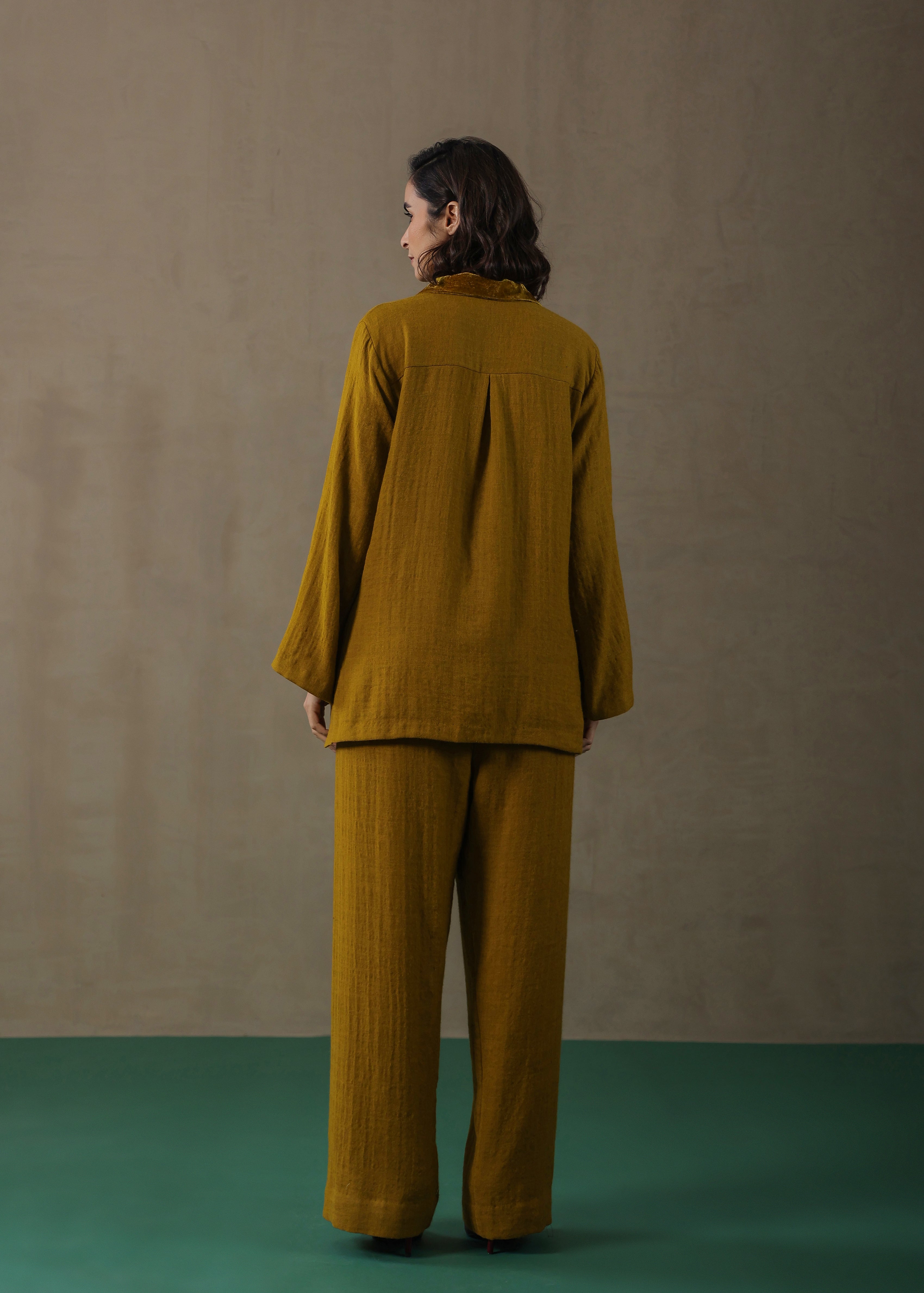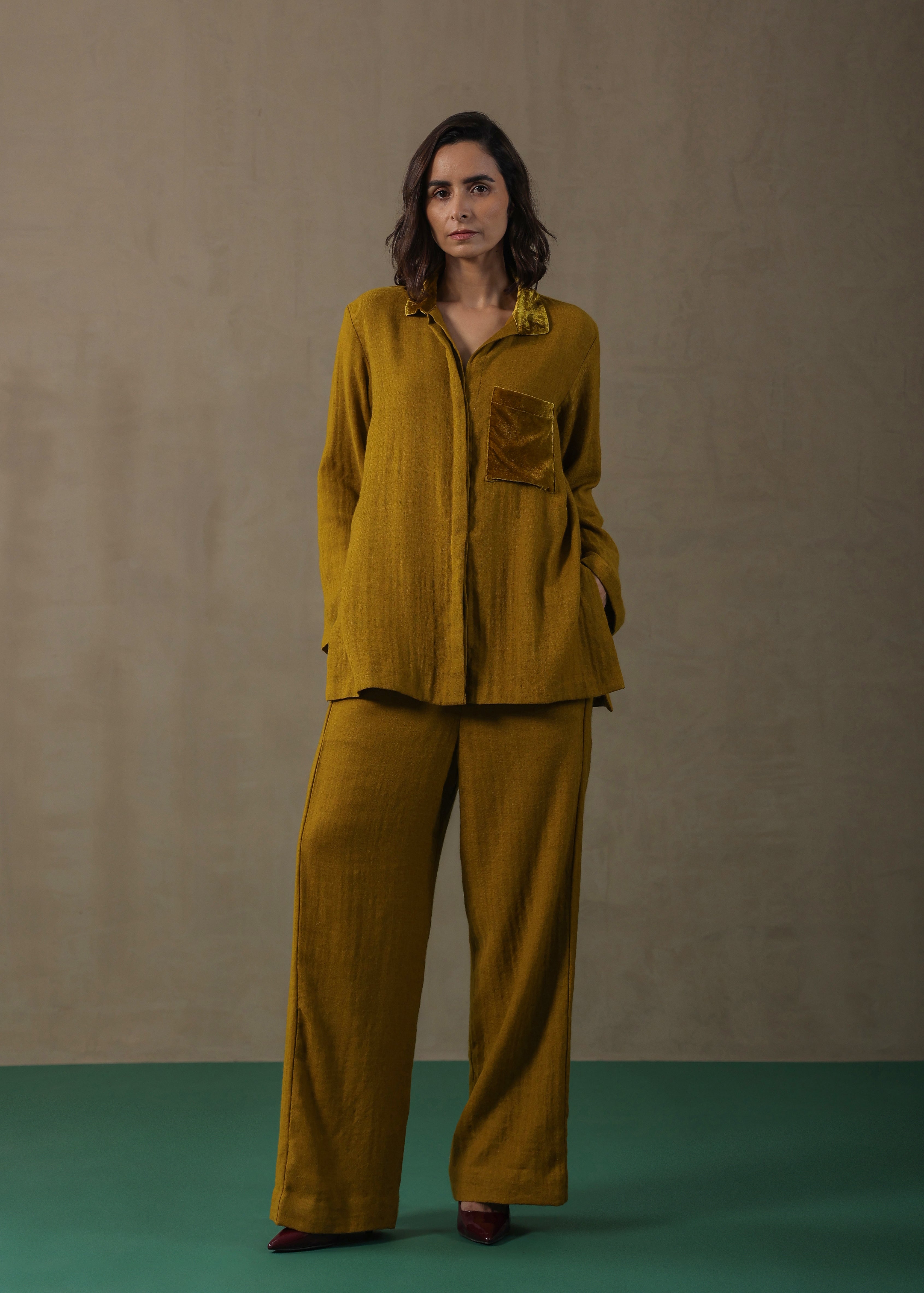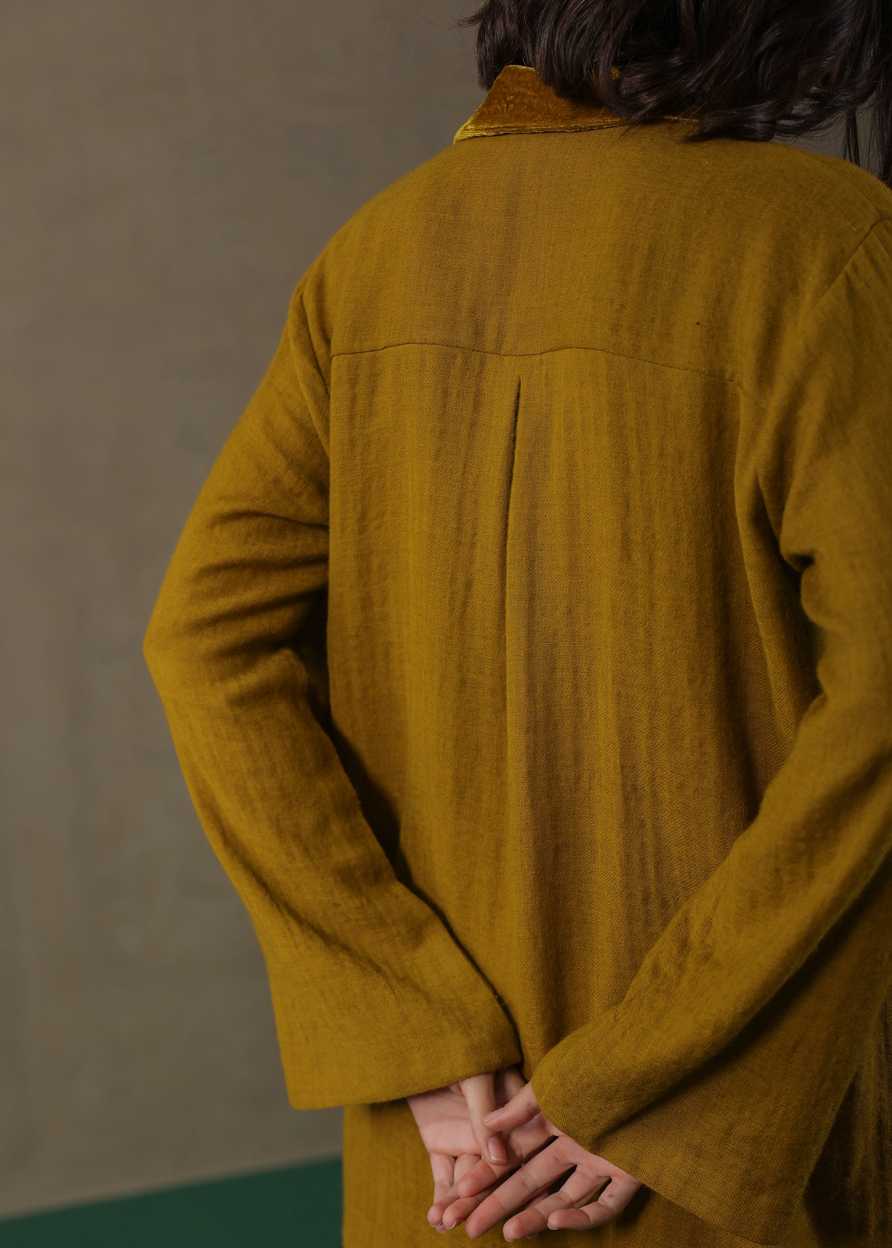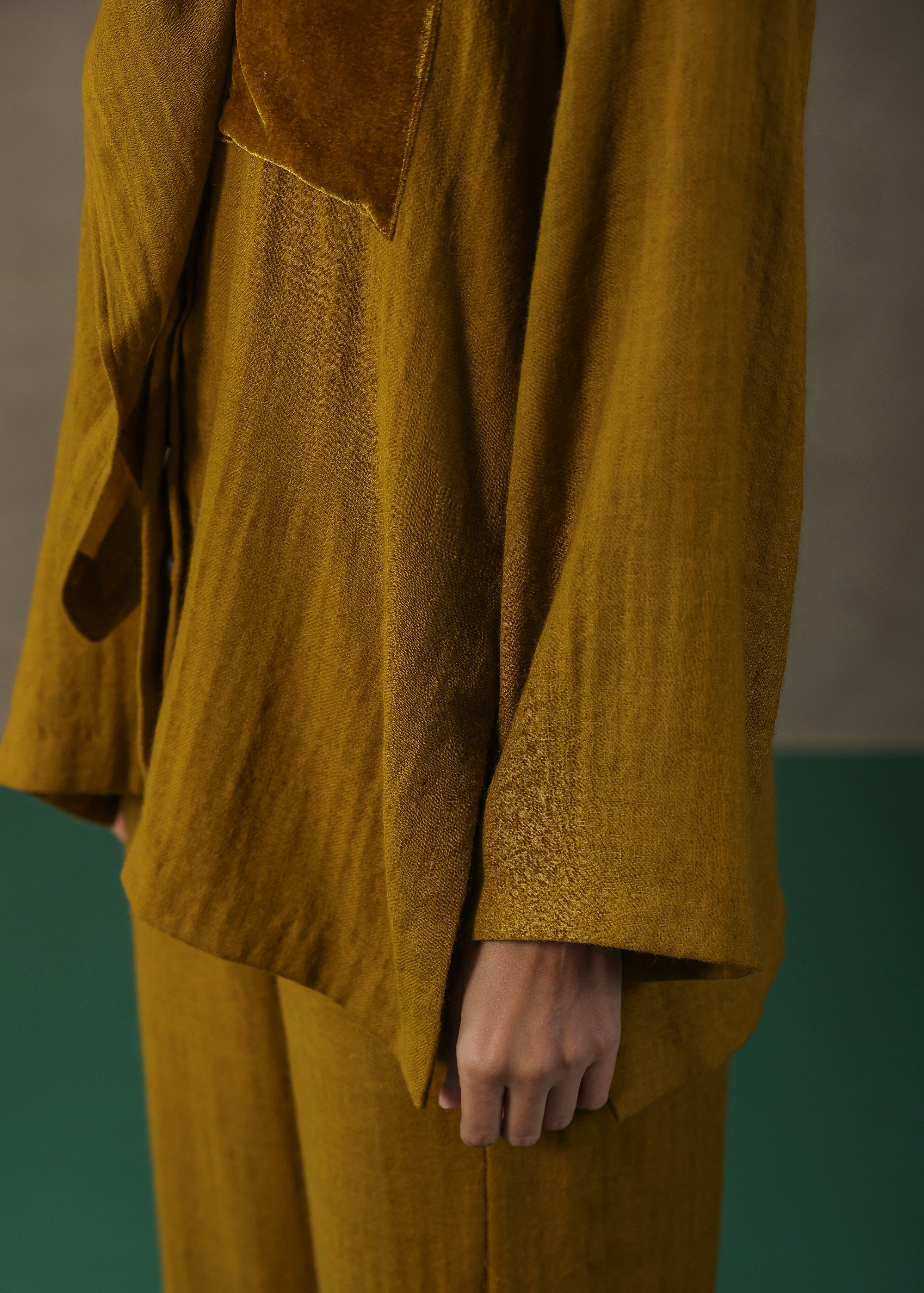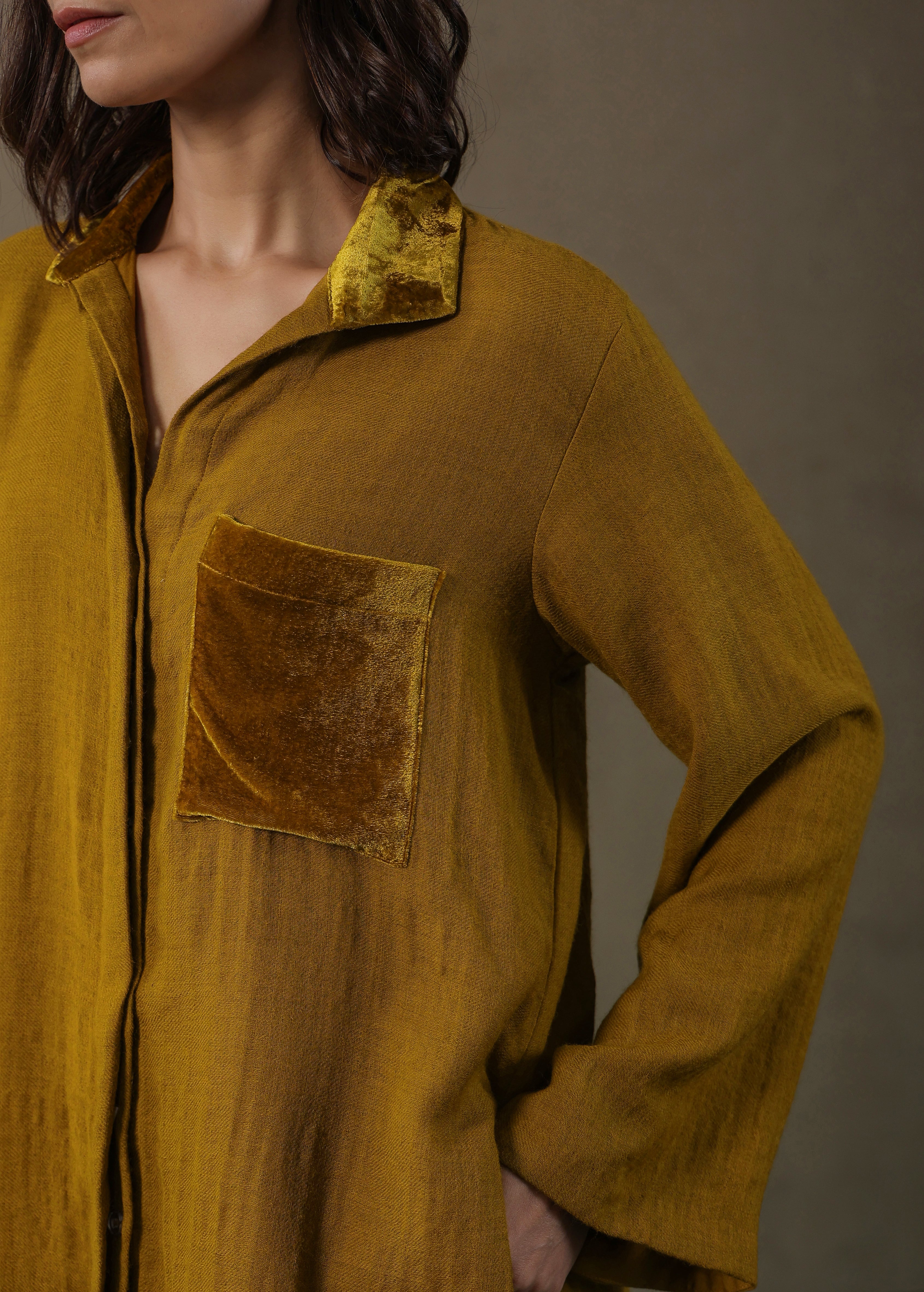 - Front Button Fastening Shirt with Velvet collar and pocket in front.