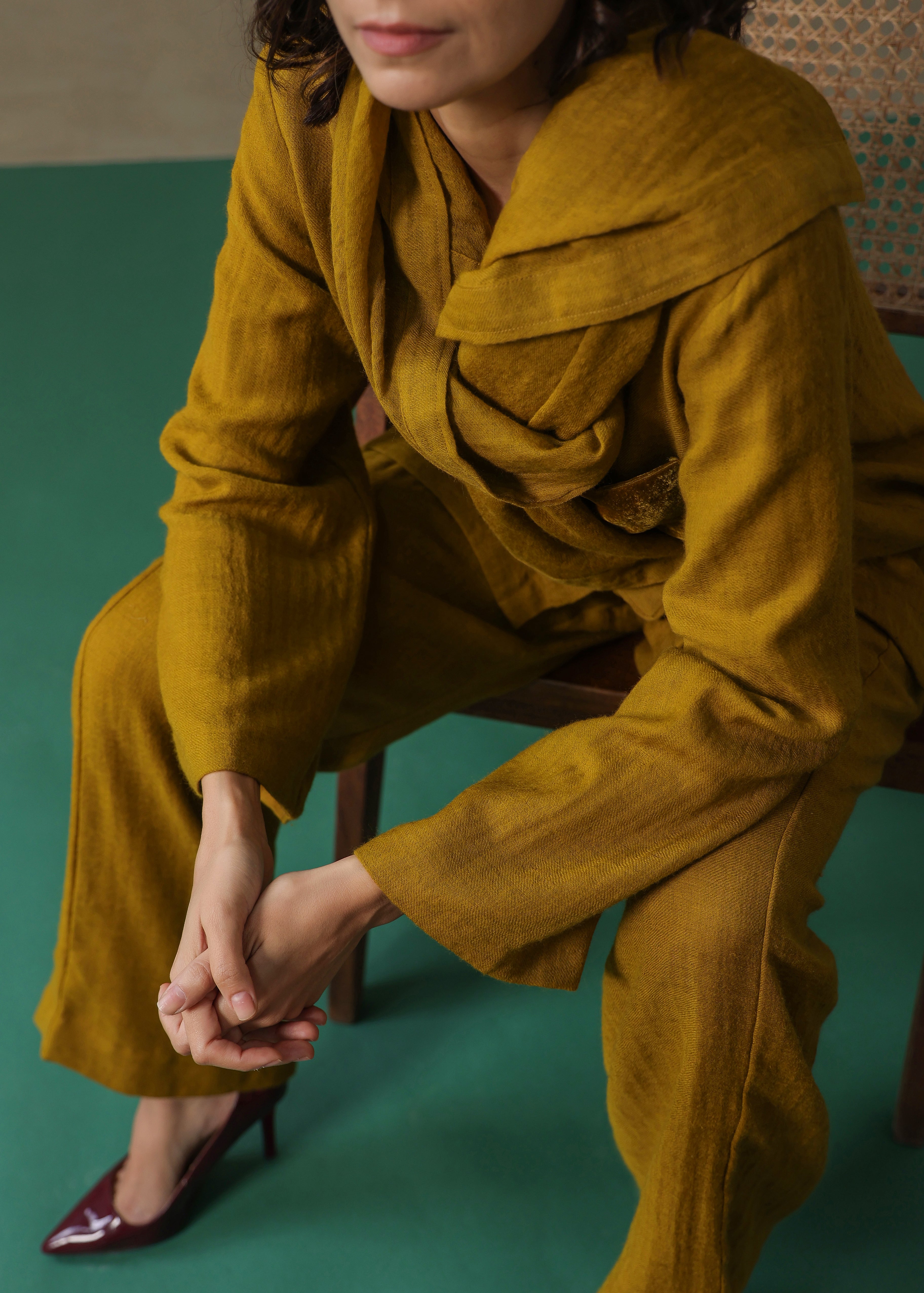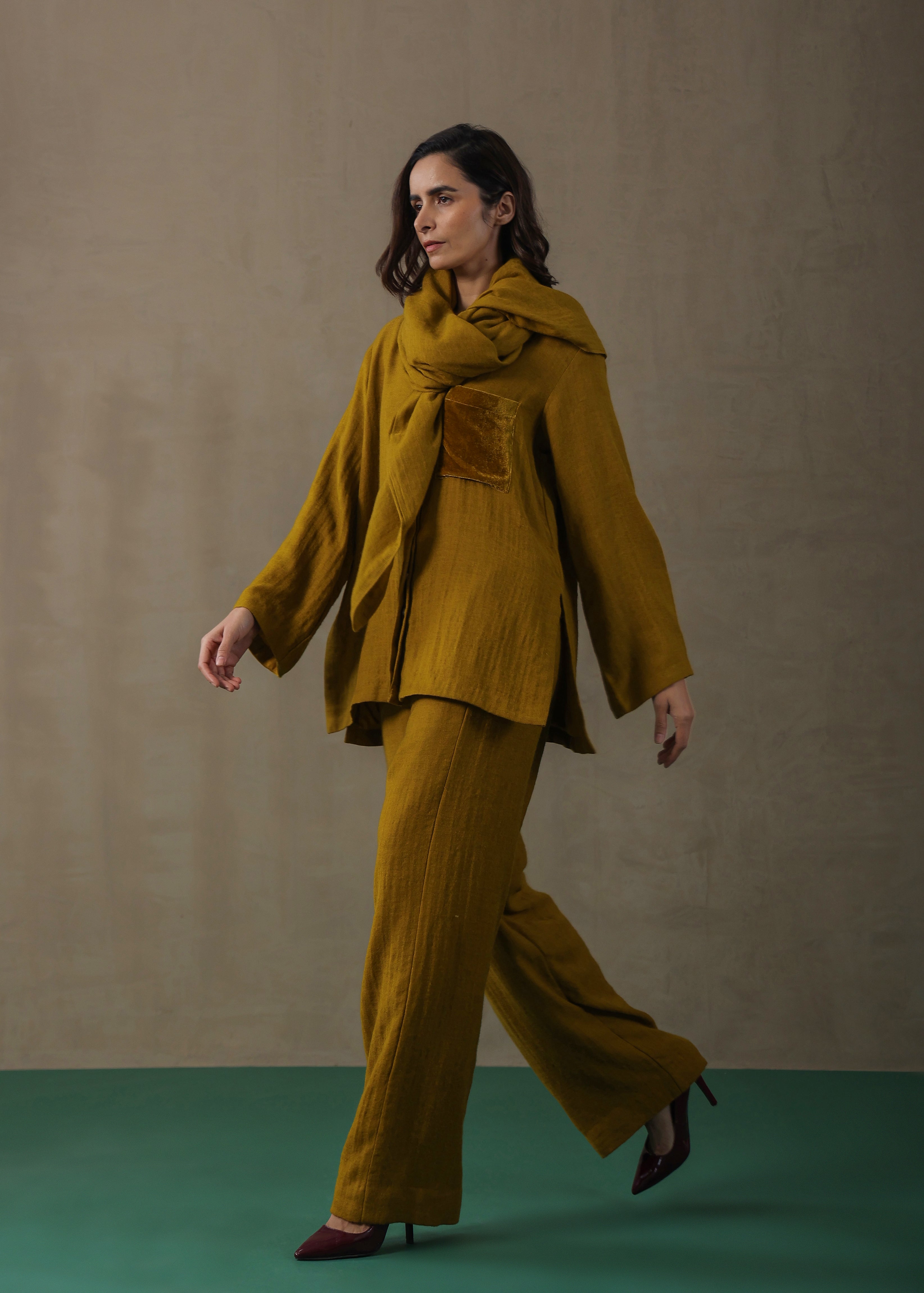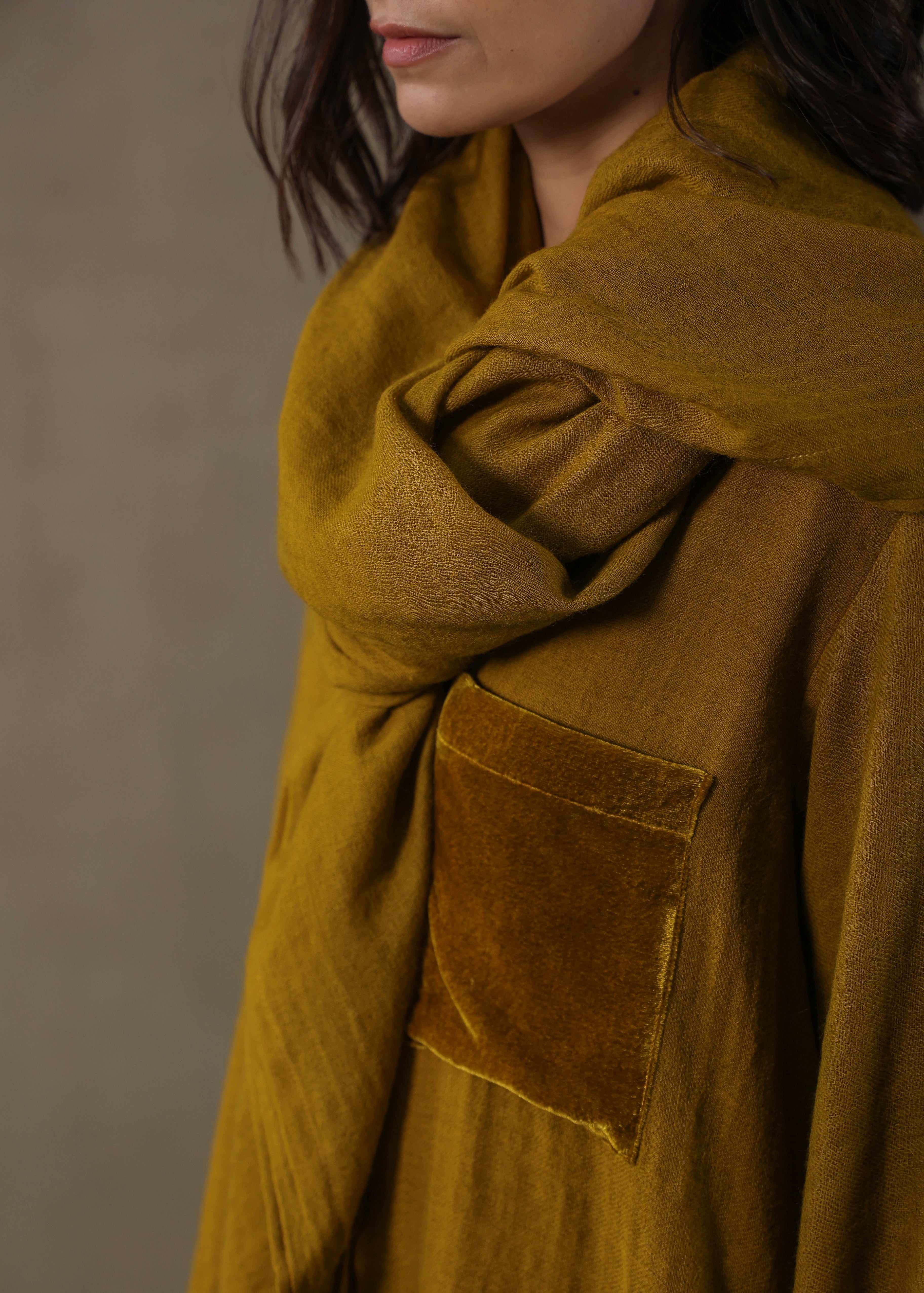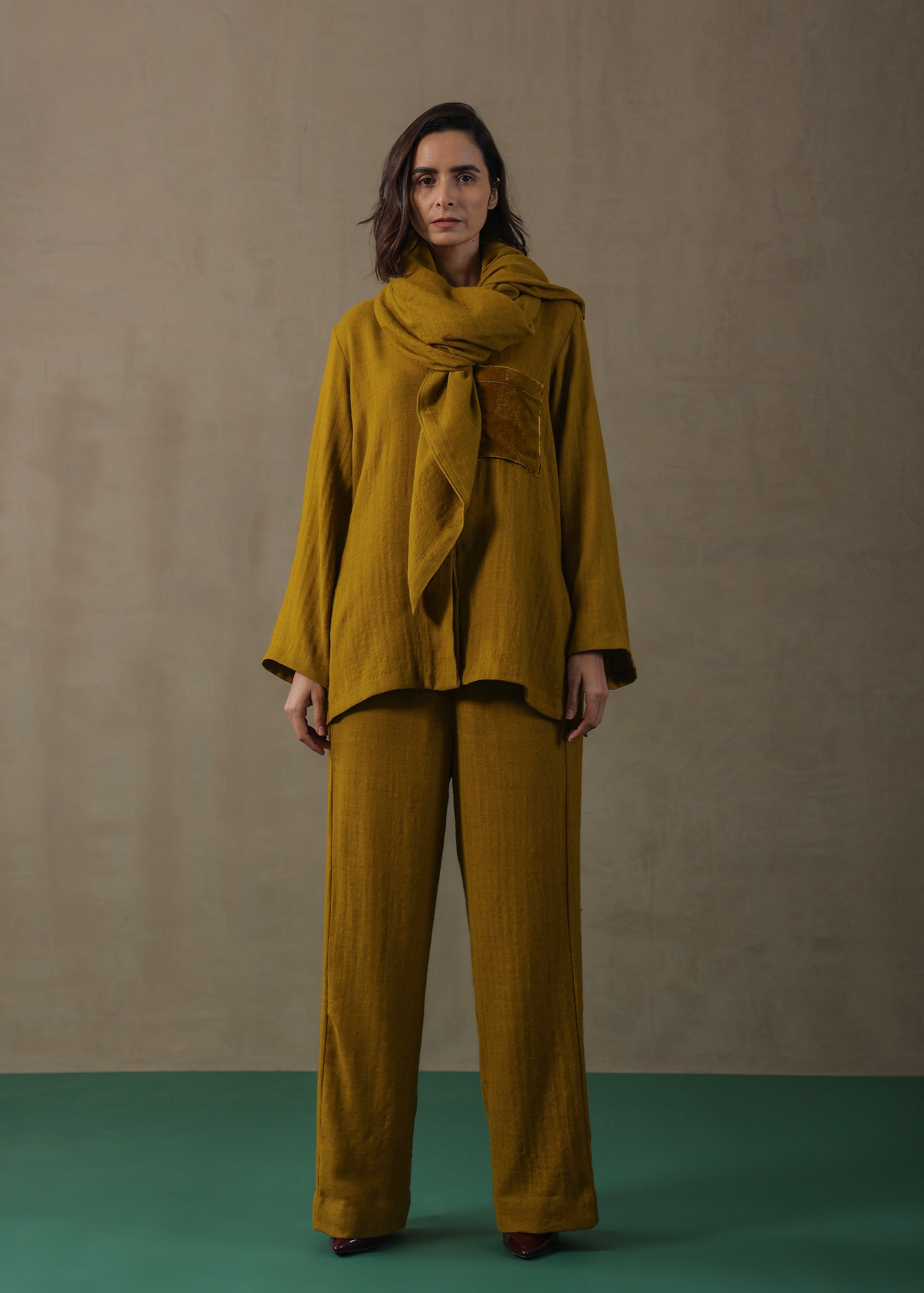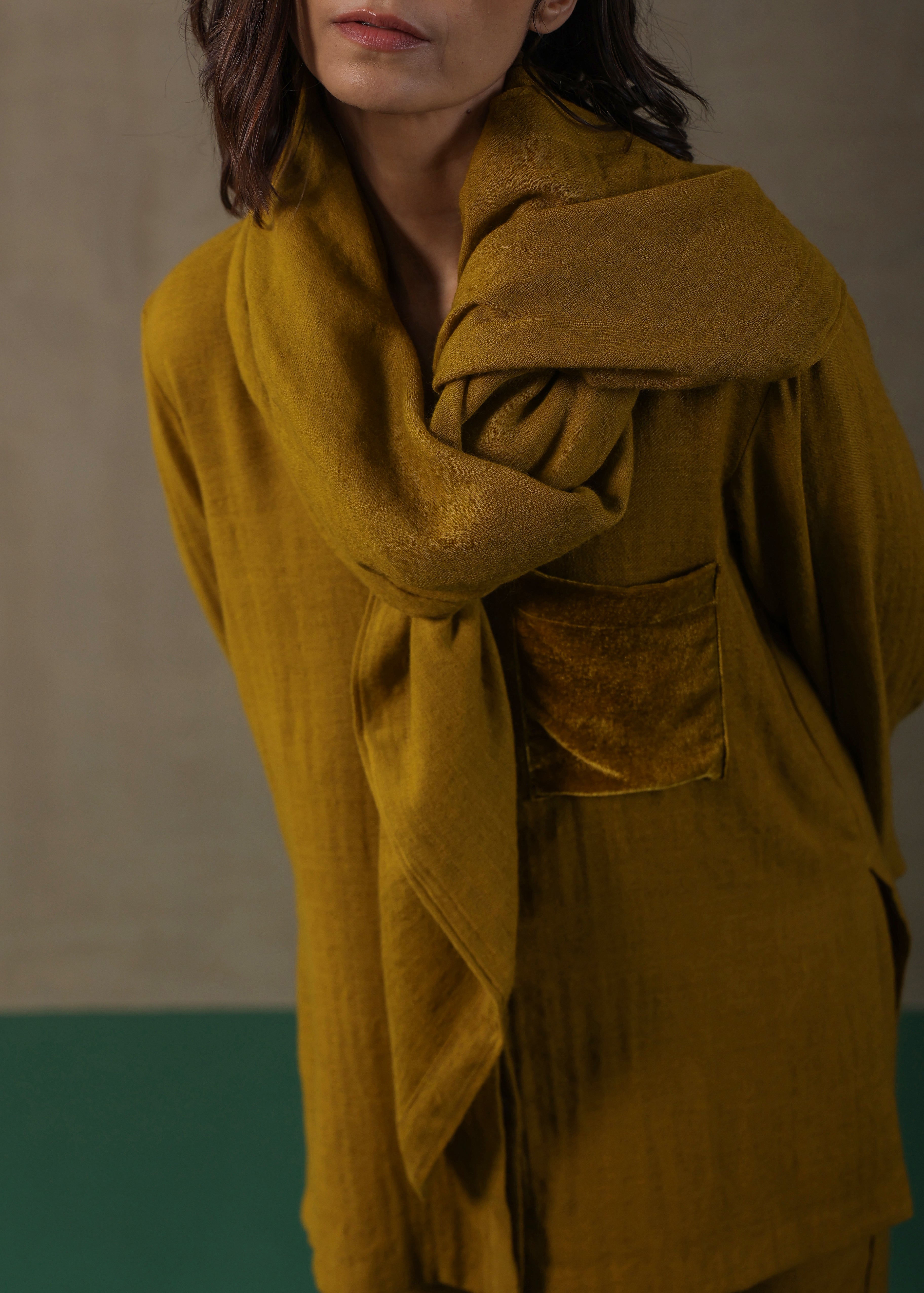 - Front Button Fastening Shirt with Velvet collar and pocket in front.