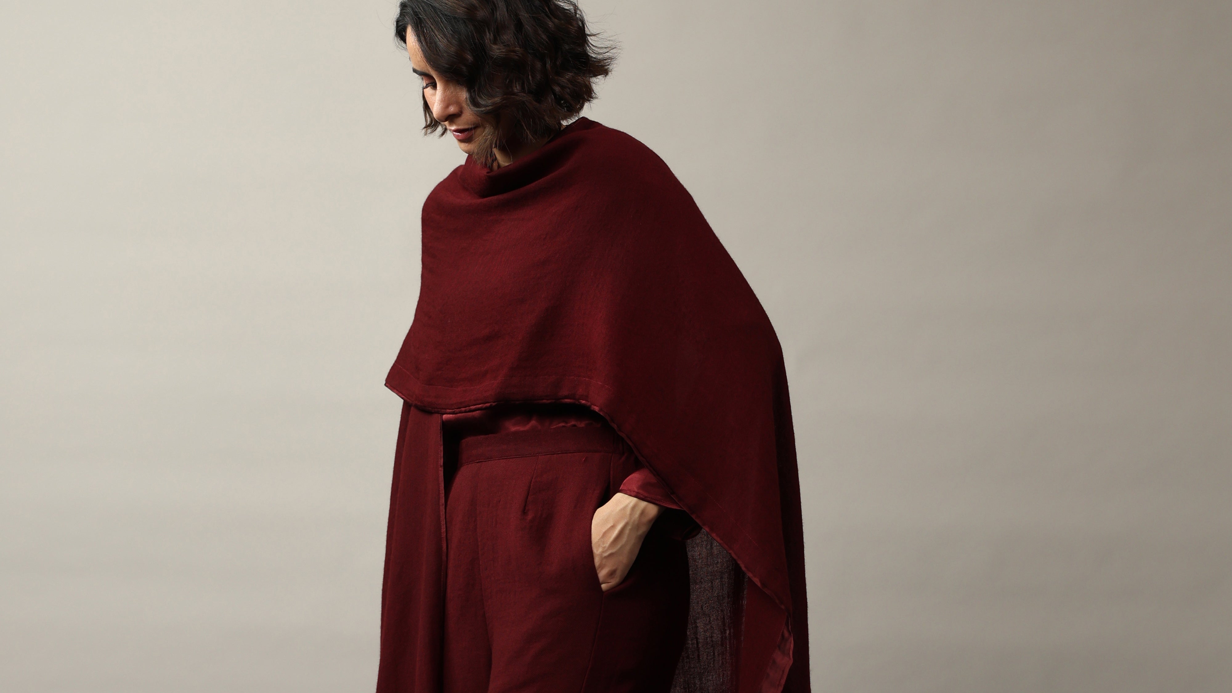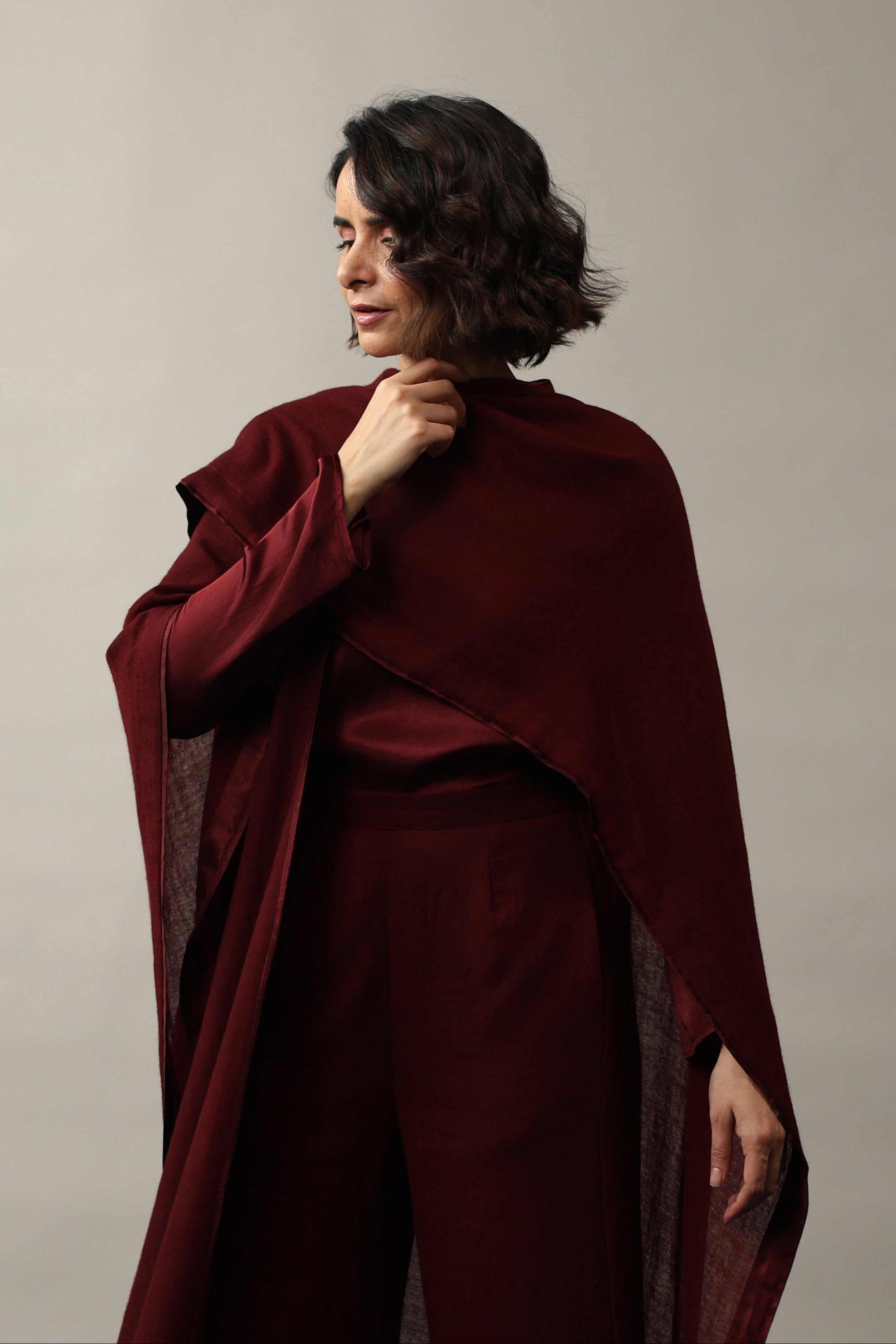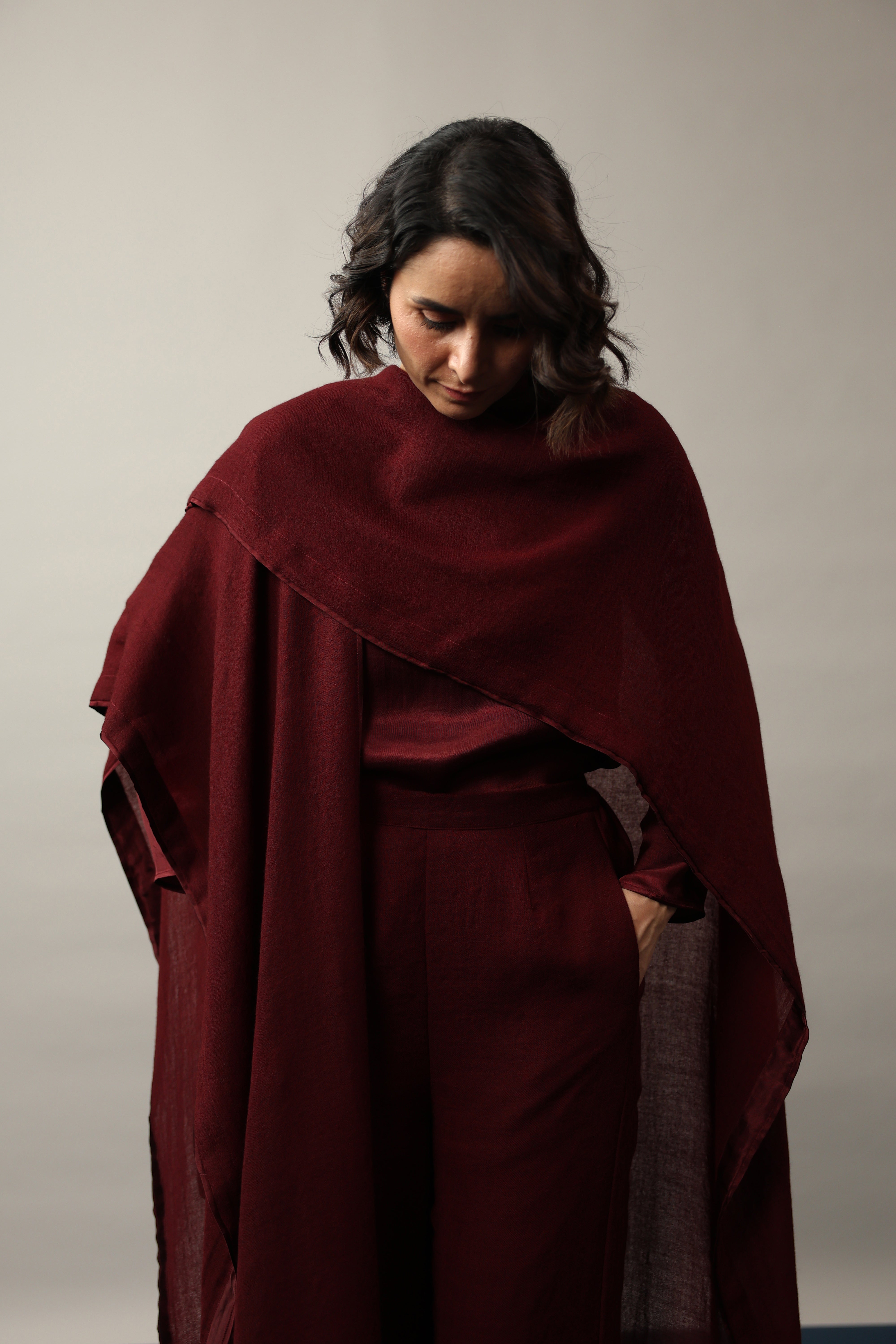 • Wool Wrap with silk facing.