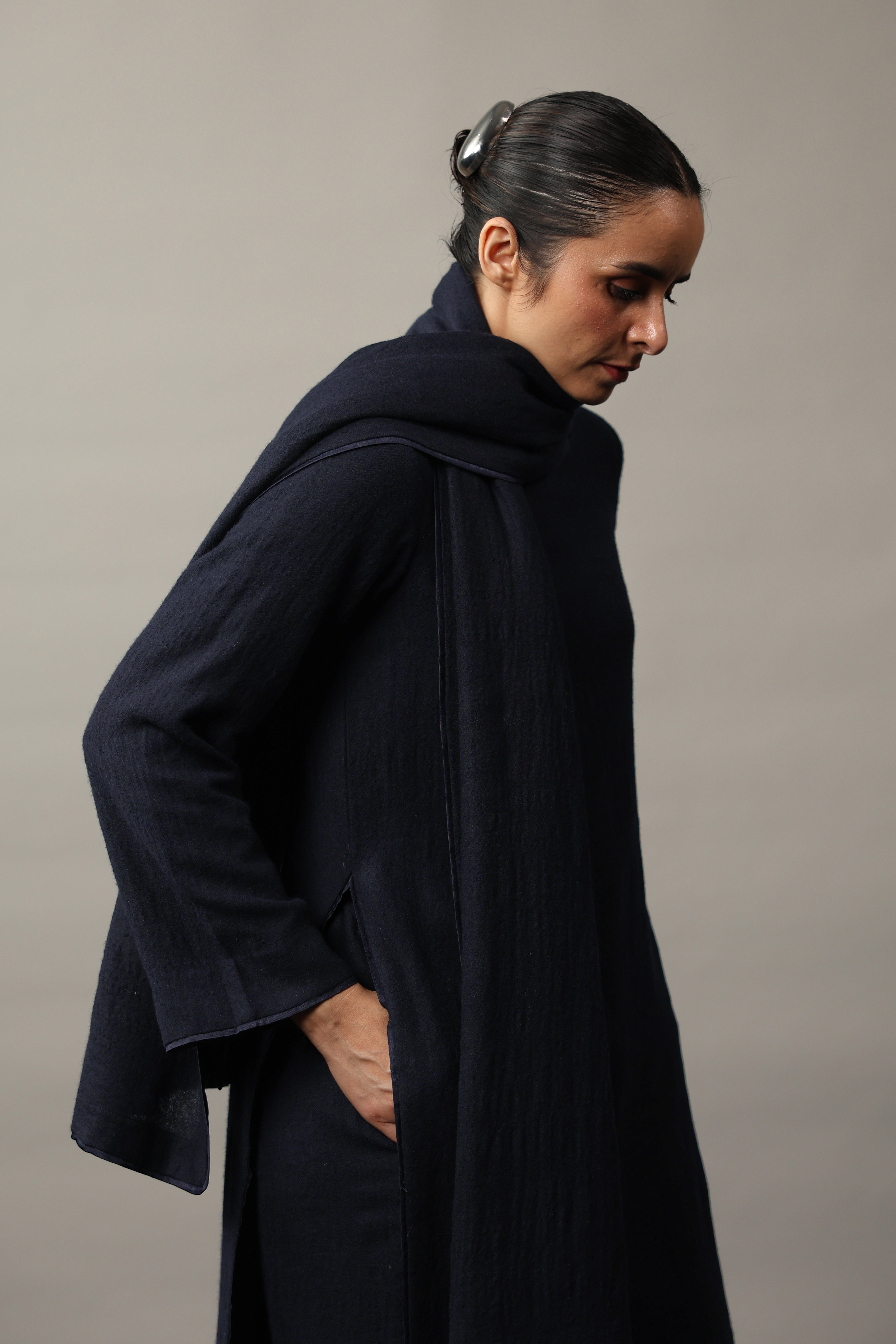 Our muse is wearing size Small and Navy Blue colour.