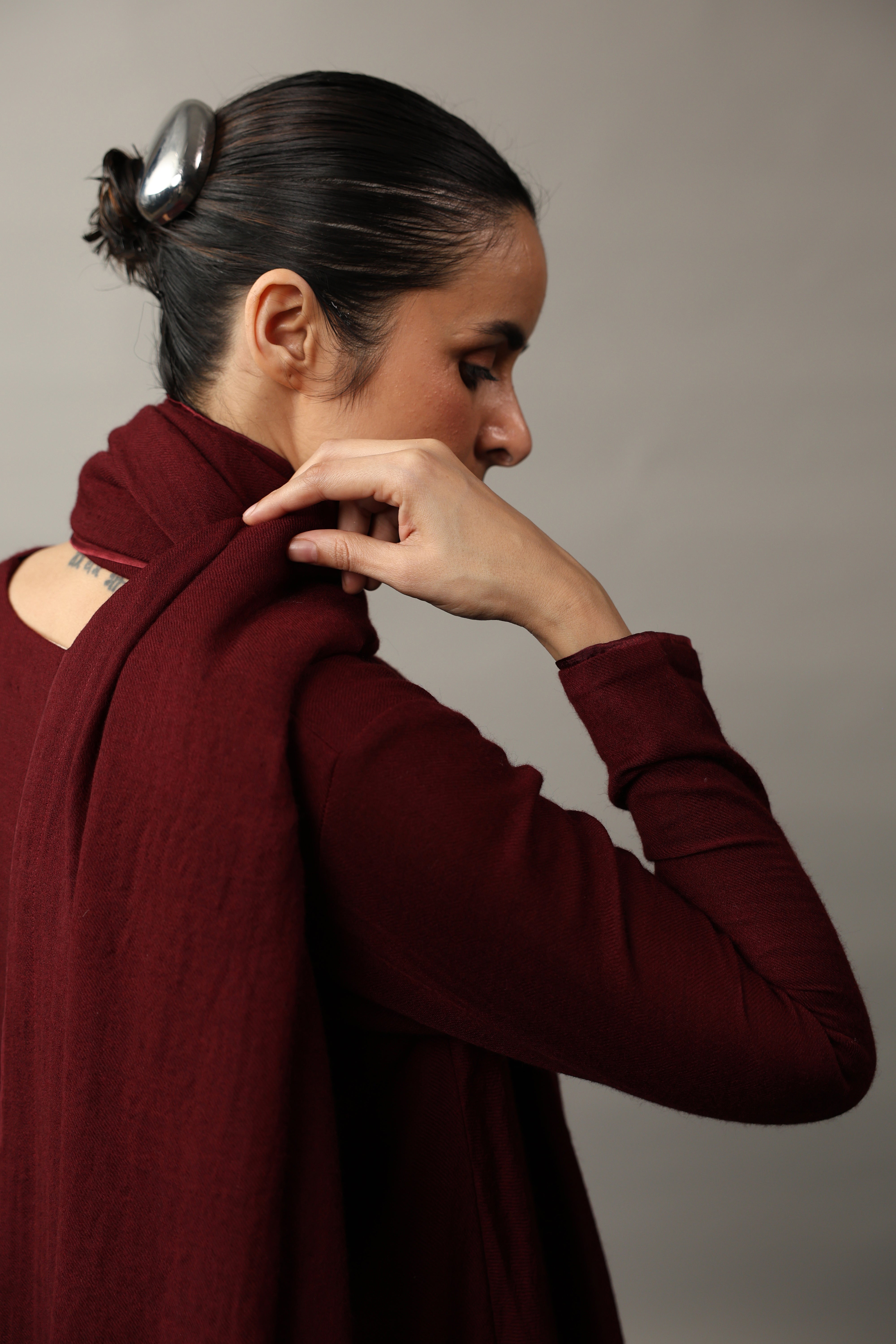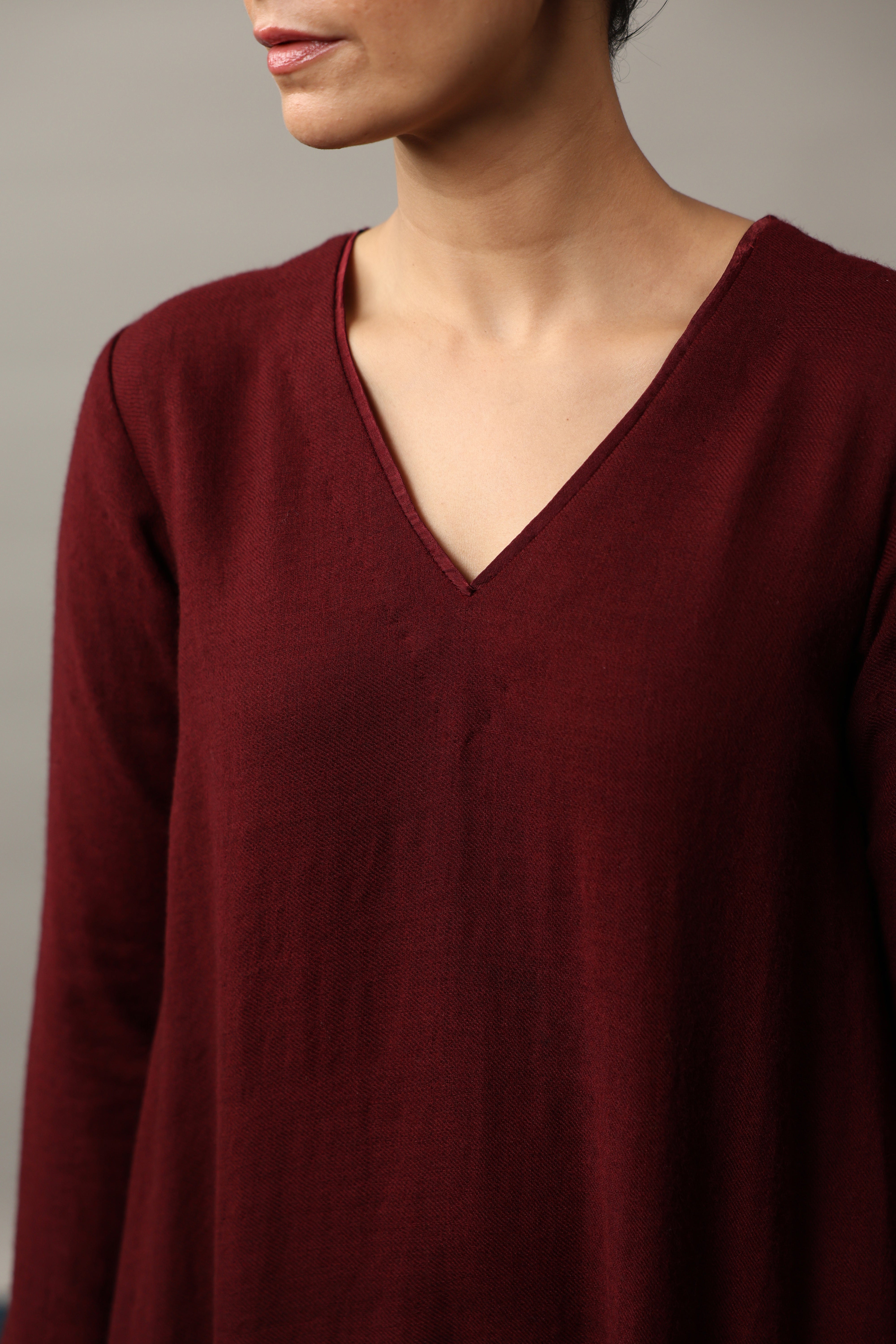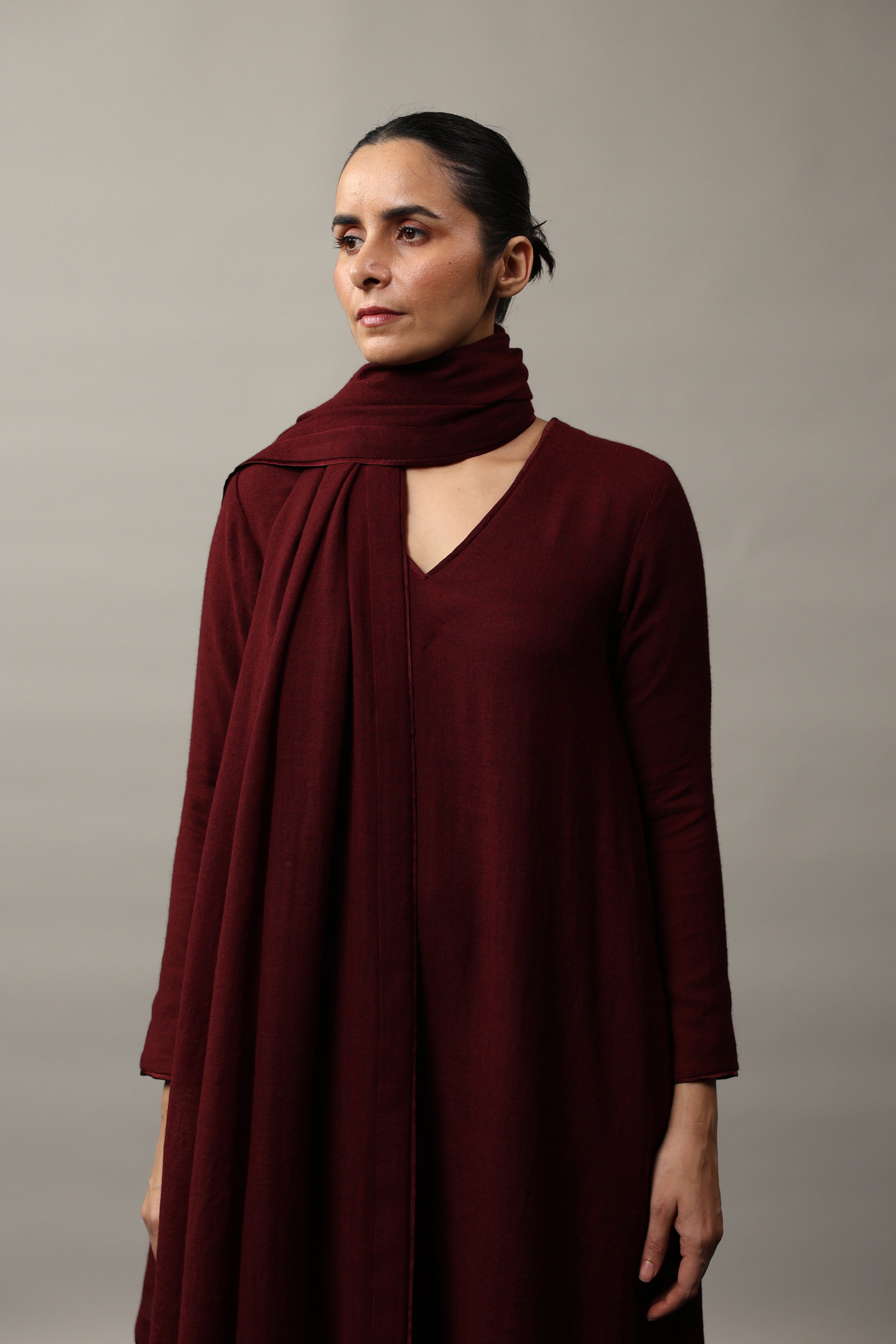 Our muse is wearing size Small and Maroon colour.