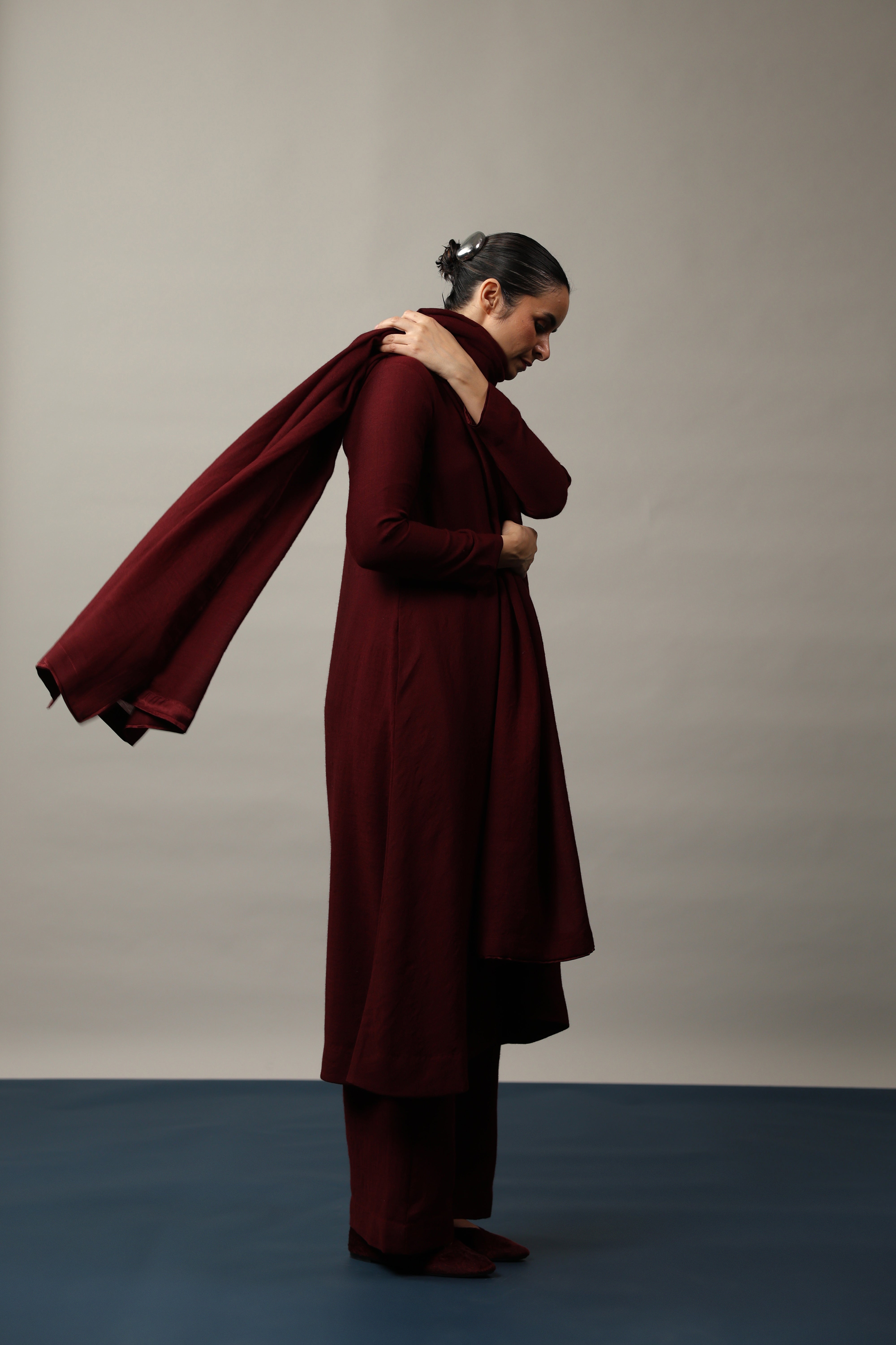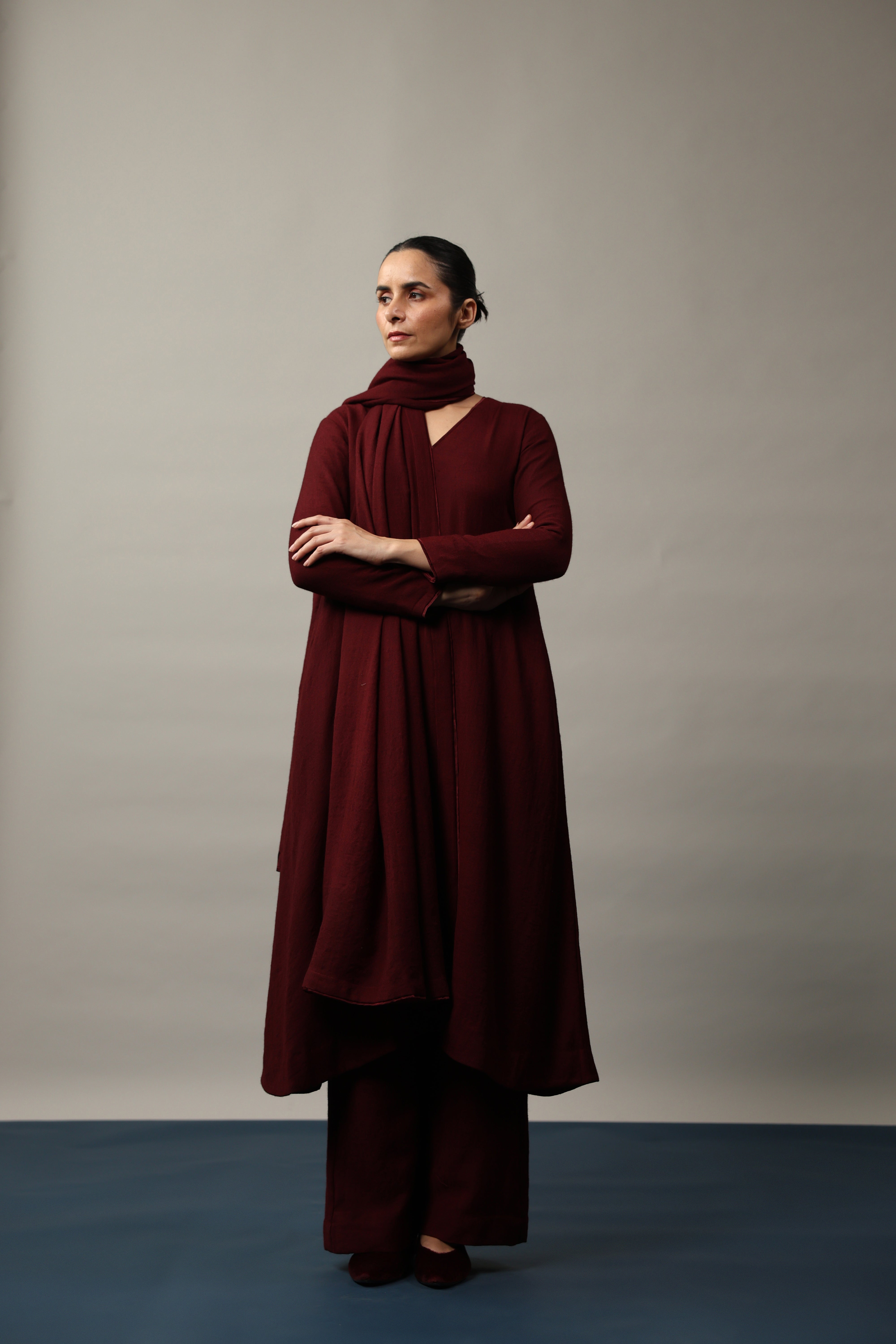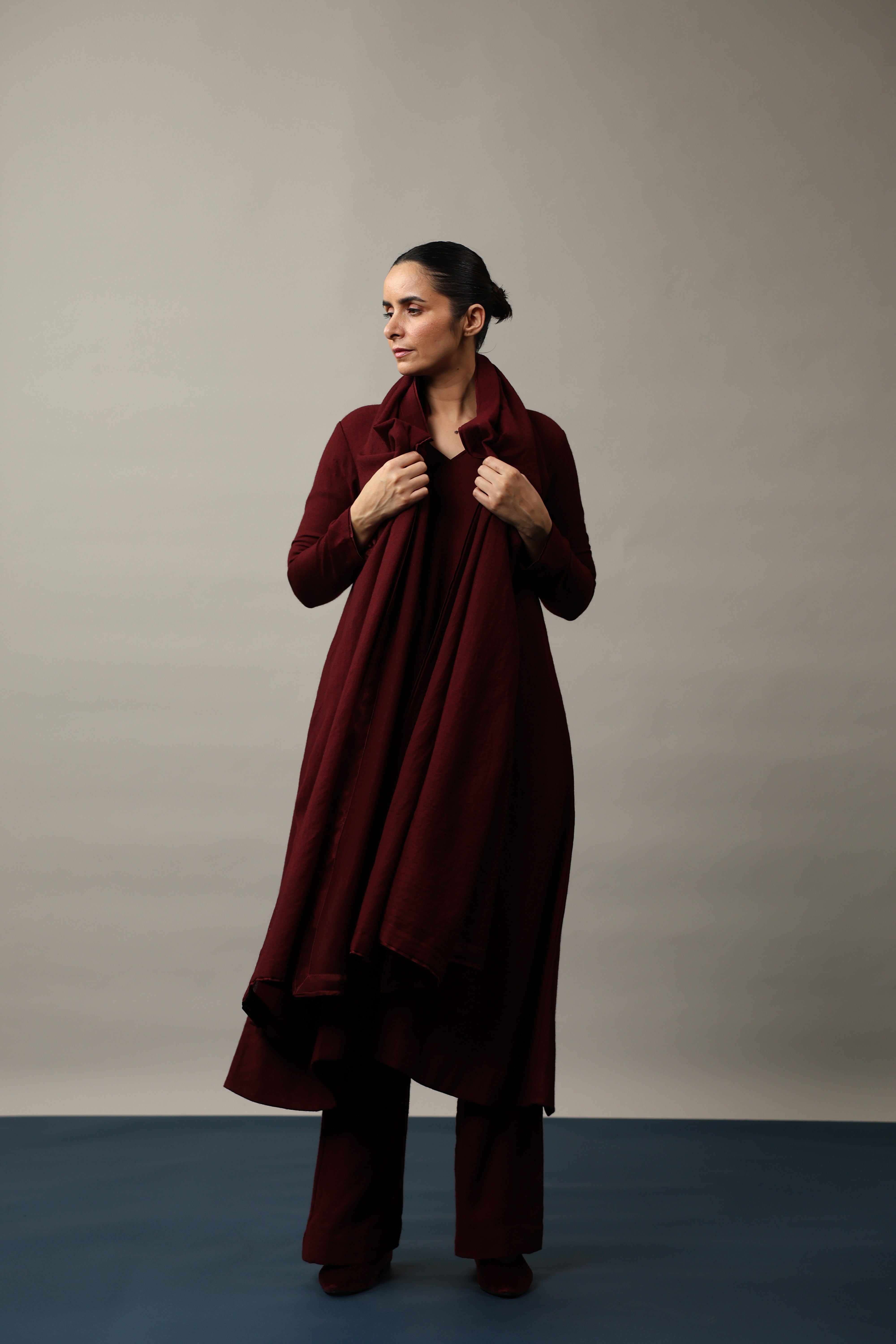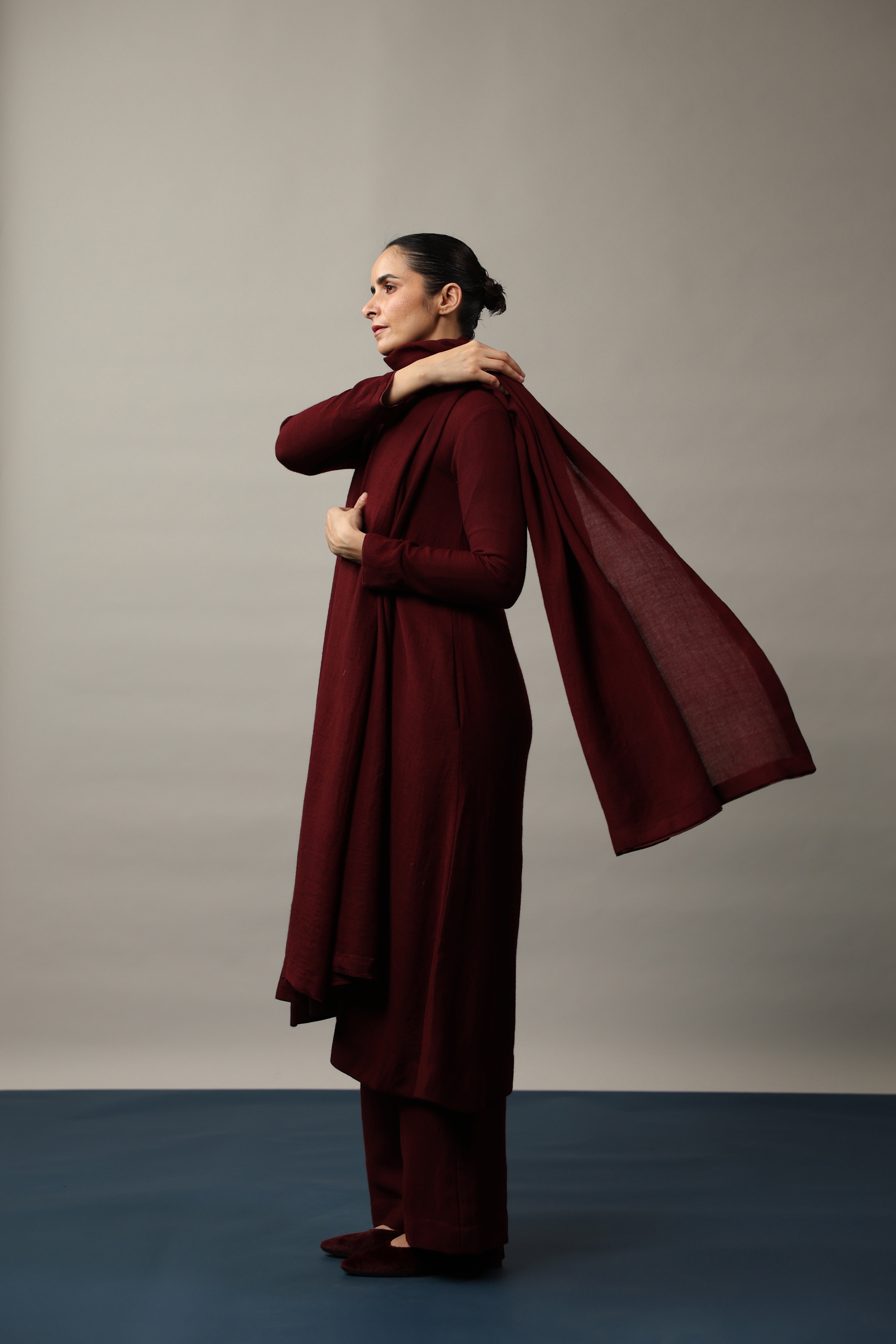Our muse is wearing size Small and Maroon colour.
