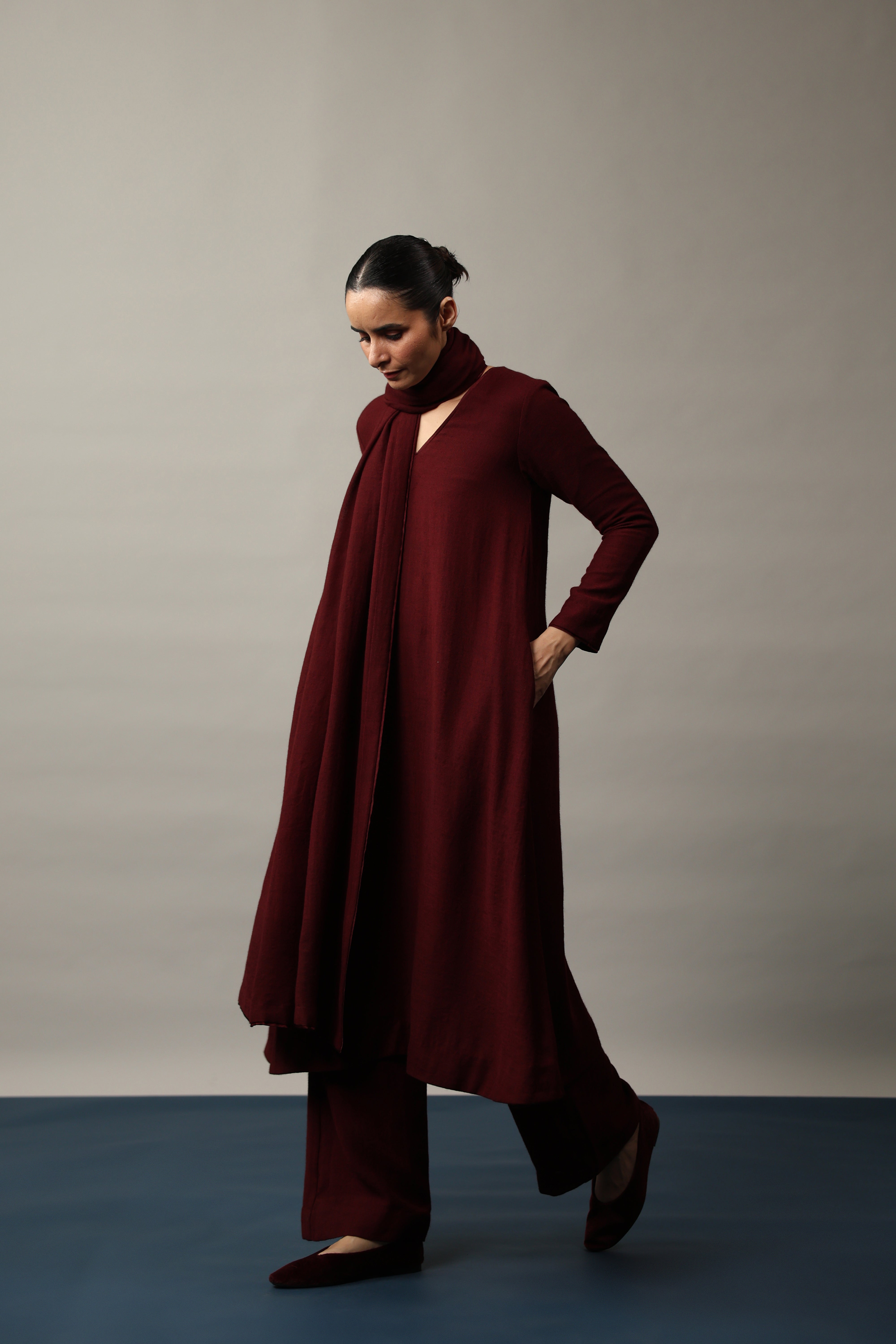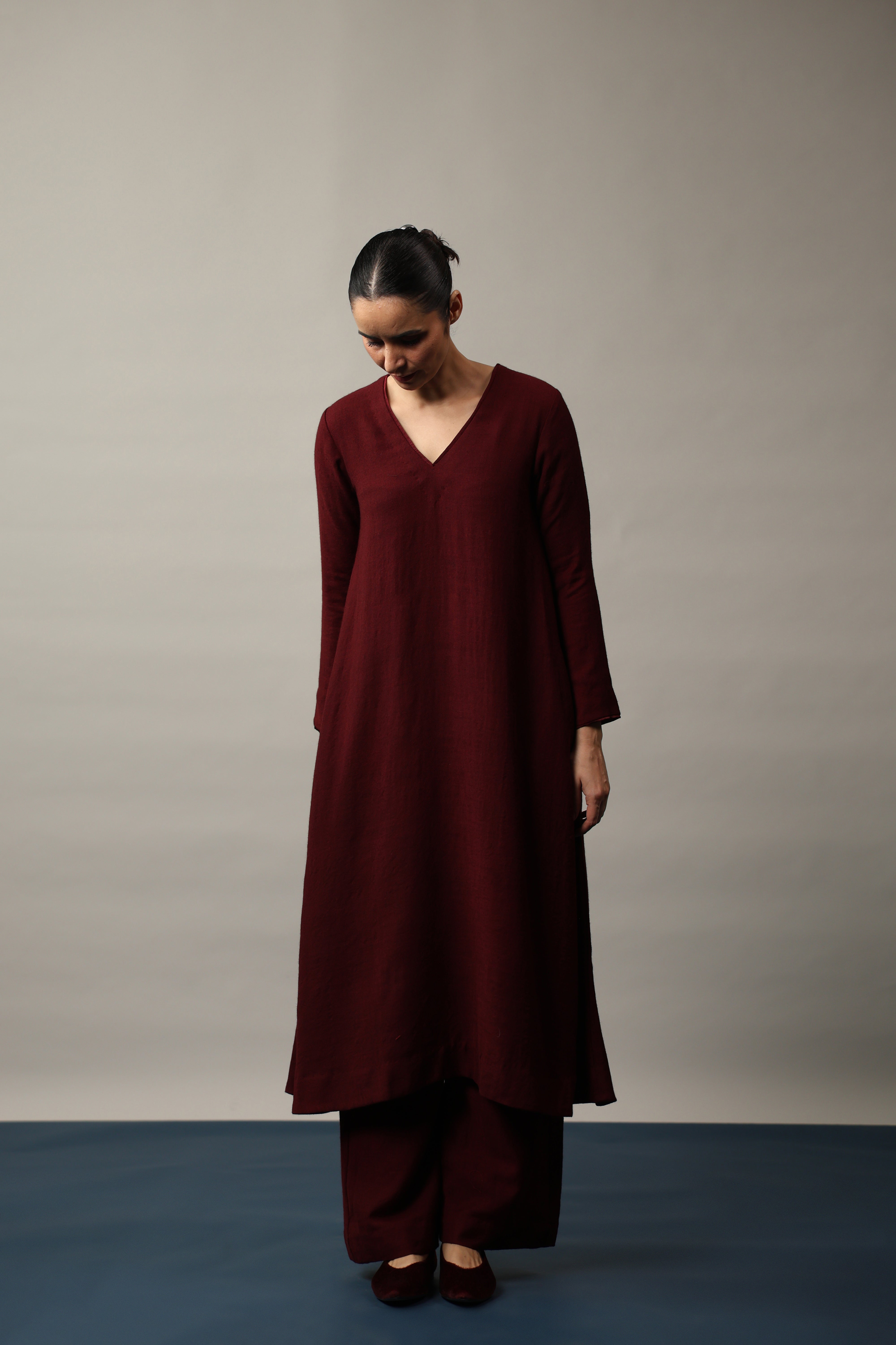 - A Line Kurta featuring V neckline, full length sleeves and pocket on both sides.