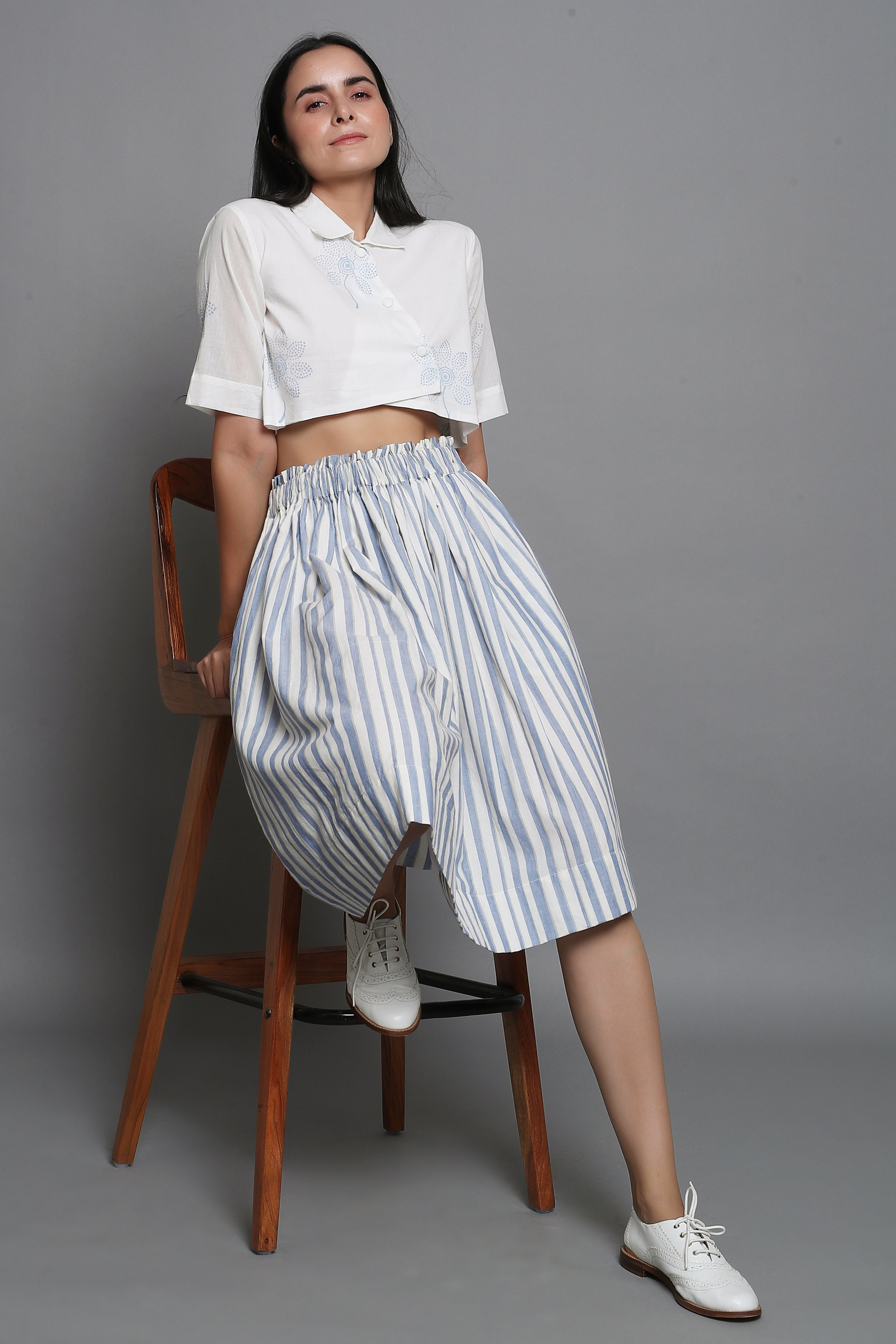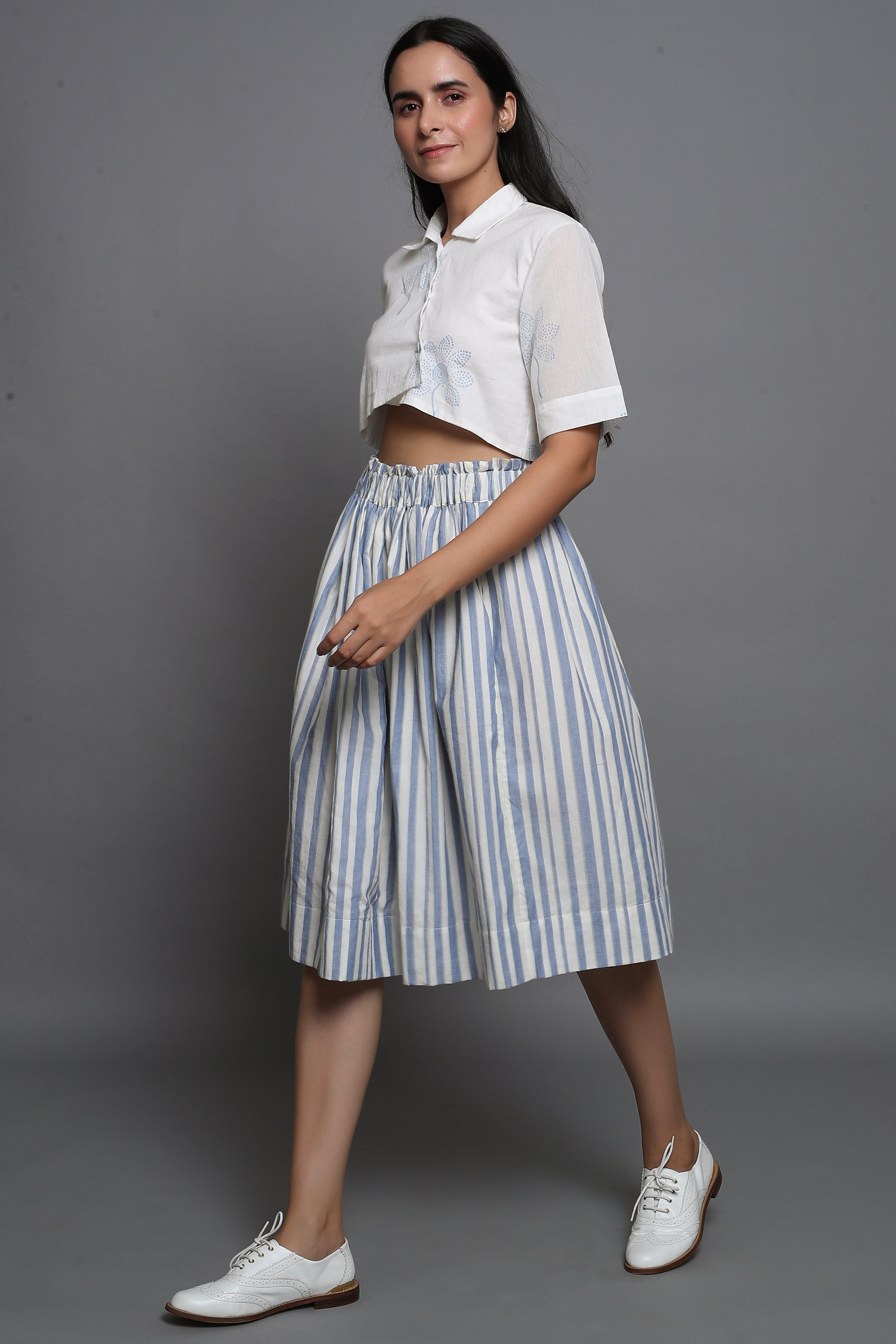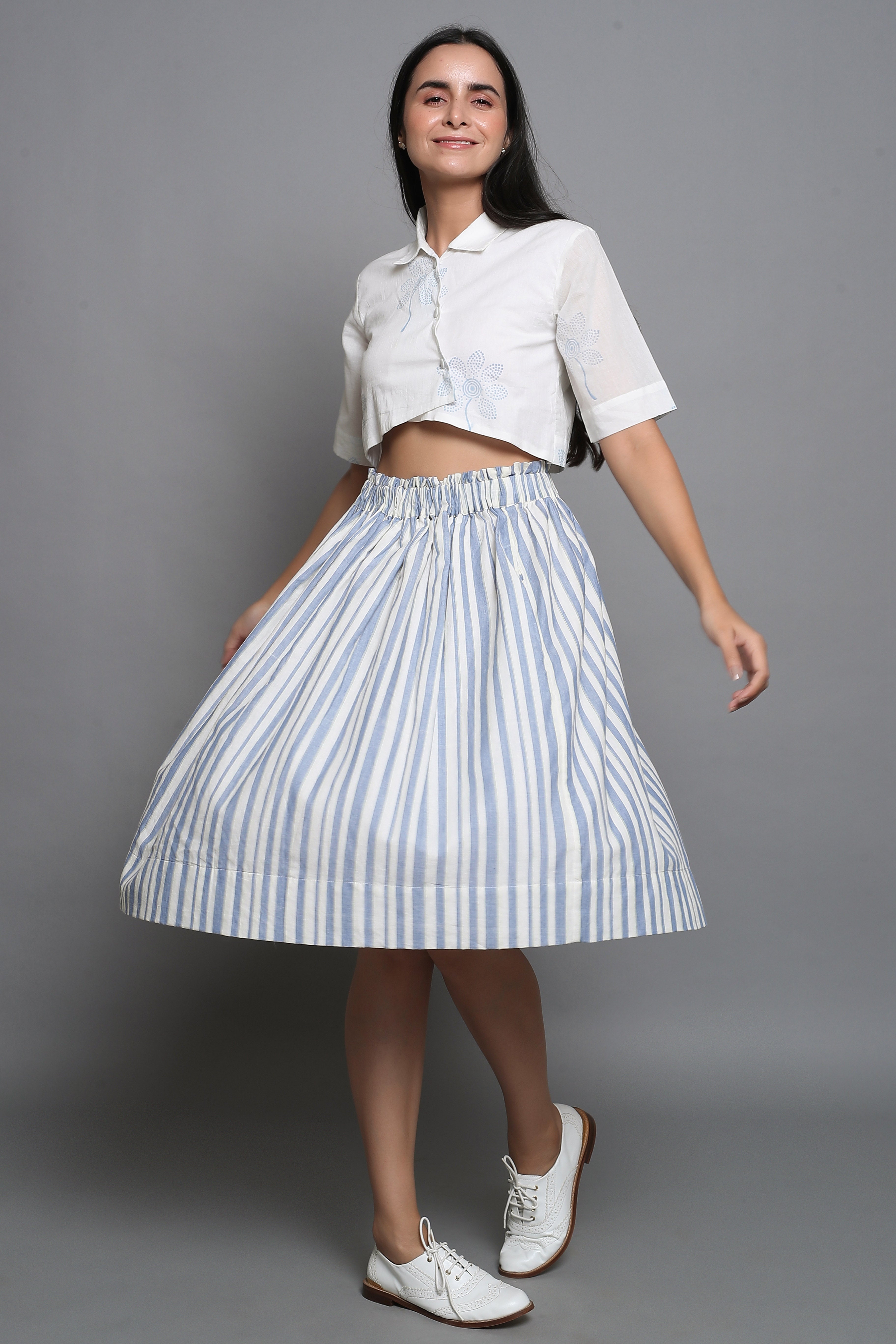 Striped Skirt with Block Printed Cropped Top